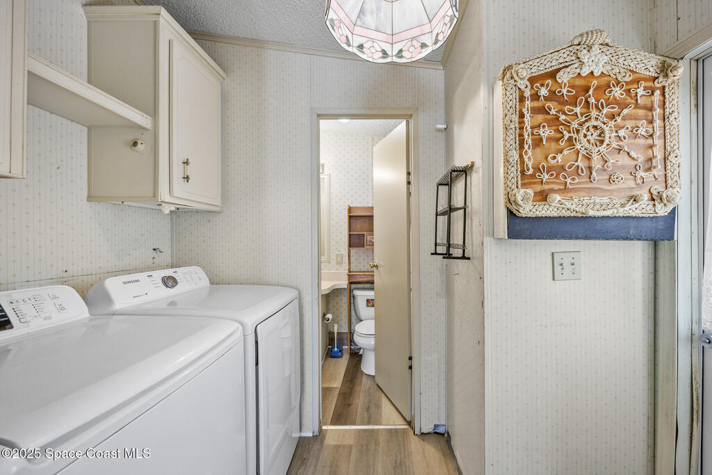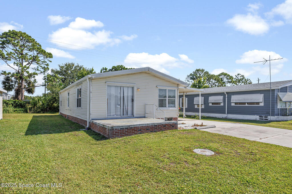You Own the Land, NO Lot rental! Motivated Seller bring us an offer!Great opportunity to put your own finishing touches on this 2-bedroom, 2-bathroom home, and make it your own!!Located in the 55+ community of Palm Bay Colony. Use of a community pool, clubhouse, pickle-ball, and tennis courts are available. Brand new roof installed in October 2024 will provide you with peace of mind. The AC system was refurbished in 2024 and water heater is working great! Spacious living area with a large master bedroom,indoor laundry with included washer/dryer. Large carport with space for 3 additional cars. Attached shed for additional storage. Convenient location close to Publix, restaurants, I95, and only 8-minute drive to multiple public beaches. Motivated seller. Don't miss out on this affordable home!Schedule your showing today!
