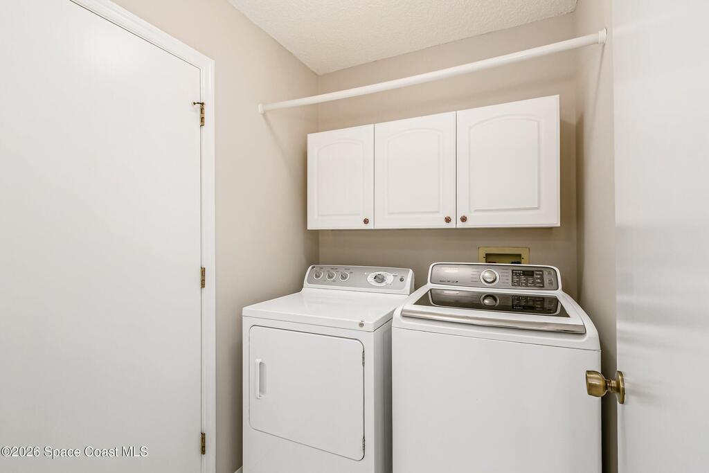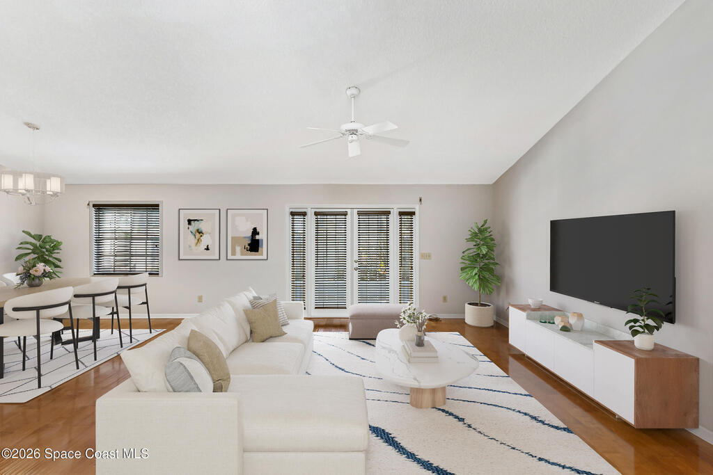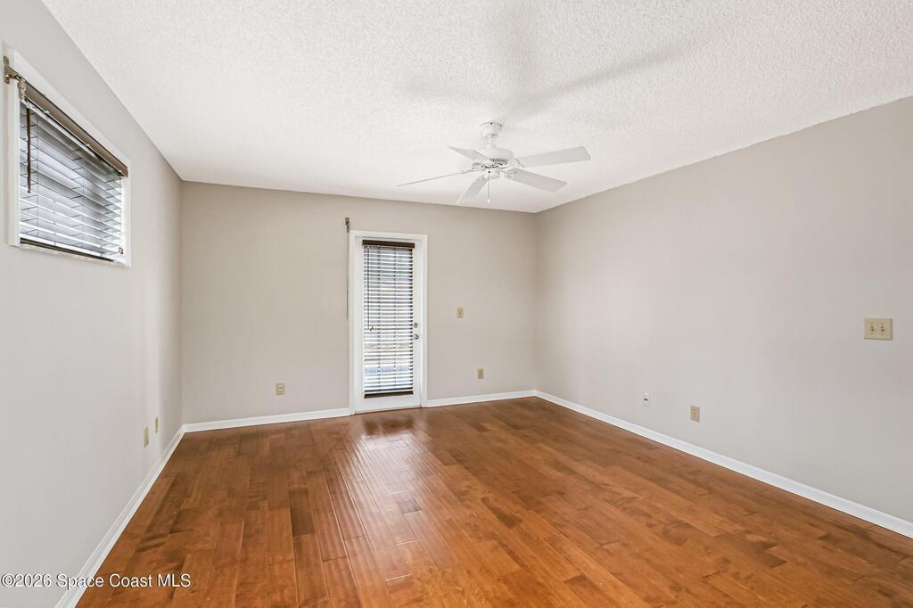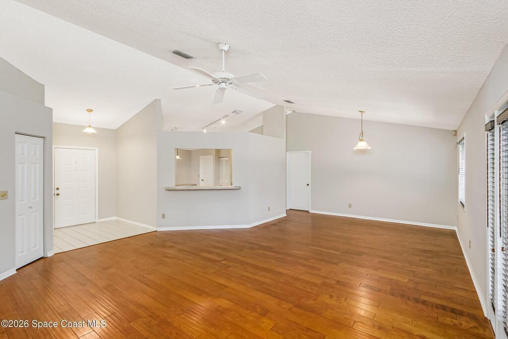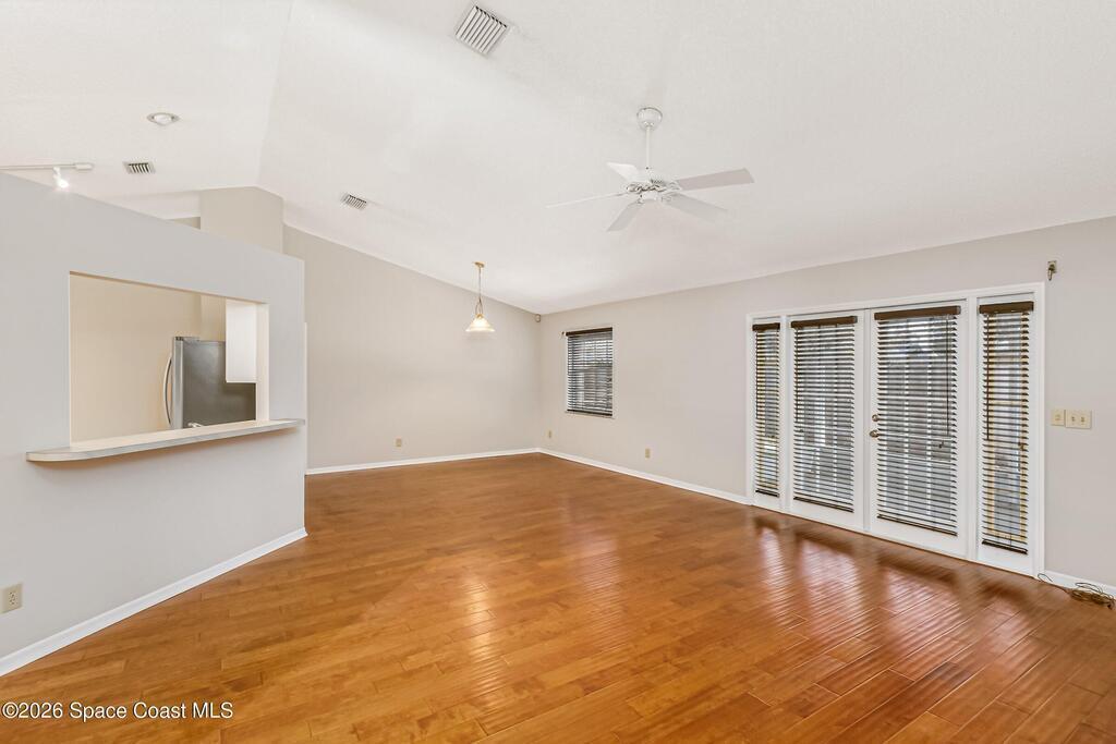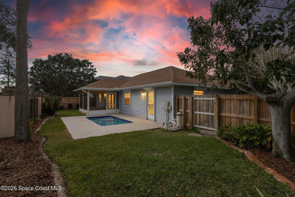 This home is a great place to land on Florida's Space Coast! Welcome to this move-in-ready pool home, where an open floor plan and vaulted ceilings enhance the sense of space. Wood floors run throughout the main living areas and bedrooms-no carpet for easy maintenance! The large eat-in kitchen features a gas stove, stainless appliances, and soft-close cabinet doors. An interior laundry room includes the washer and dryer, so you can settle in right away. Open the brand-new French doors to your private backyard retreat with a newly screened-in lanai and a perfectly sized, easy-care pool designed for relaxation, not endless upkeep. A brand-new exterior door from the primary suite to the pool makes late-night swims extra convenient. There's a NEW ROOF (2025), roll-down storm shutters, a regularly maintained HVAC system with air scrubber & replaced duct work (2017) for cleaner & healthier air, plus a security alarm for added peace of mind. Don't hesitate! Schedule your showing TODAY!