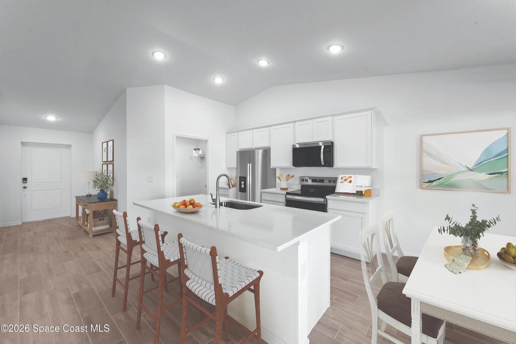 NEW CONSTRUCTION WITH WARRANTY! The Cayo Costa combines open-concept living with a split-bedroom layout, offering 3 bedrooms plus a den & 2 bathrooms. Designed for entertaining, the main living area showcases a vaulted ceiling that connects the kitchen, dining area, & Great Room. A large freestanding island provides the ideal centerpiece for both meals & social gatherings, while sliding glass doors extend the living space to a covered lanai for indoor-outdoor living. The private Primary Suite features 2 spacious walk-in closets and an en-suite bathroom. On the other side of the home, 2 comfortable guest bedrooms share a full bath. A den with French doors offers the perfect space for a home office. Quartz countertops, designer cabinetry, tainless steel kitchen appliance package, upgraded plank tile flooring in main living areas, hurricane-impact windows and doors & more! Pictures, renderings, & virtual tour are of similar home & are used for display purposes only.