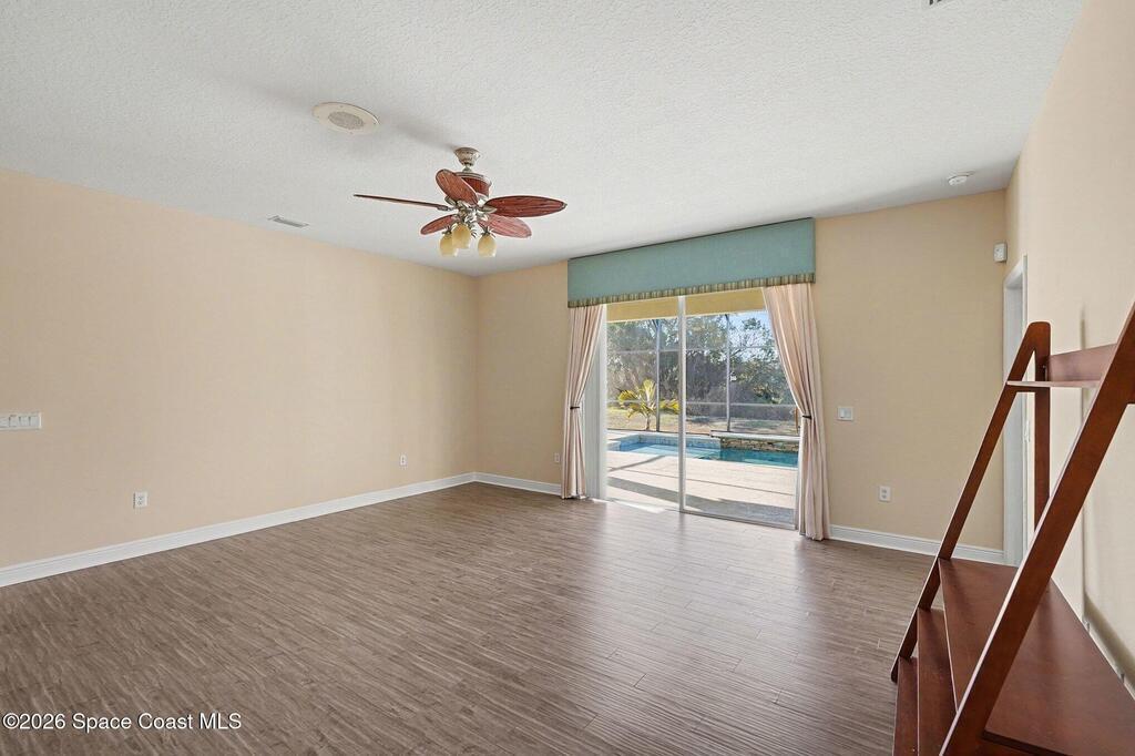 Step into your dream home, a beautifully designed property that offers four spacious bedrooms and two well-appointed baths. This residence boasts a brand new metal roof installed in 2025 and features a versatile flex room ideal for a home office with built-in cabinets. The luxurious primary suite includes his and hers closets, along with double sinks, a garden tub, and a separate shower. Enjoy gatherings in the formal dining room and a modern open kitchen equipped with stainless steel appliances, an island, and a cozy eat-in nook. The inviting living room seamlessly connects to an expansive pool deck, showcasing a stunning pool complete with a sun shelf and waterfall, all overlooking a serene natural preserve. Freshly painted interior (2026)and exterior (2024), this home is ready for you to move in! Neighborhood features a playground for the kids. With close proximity to Space Center and I95 this location makes your morning commute a breeze!