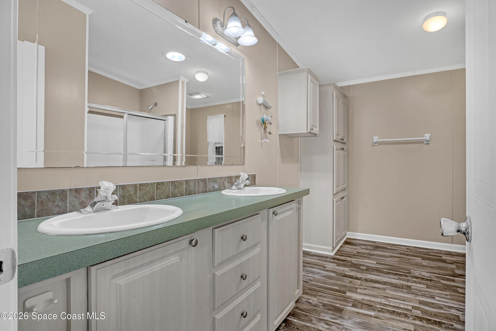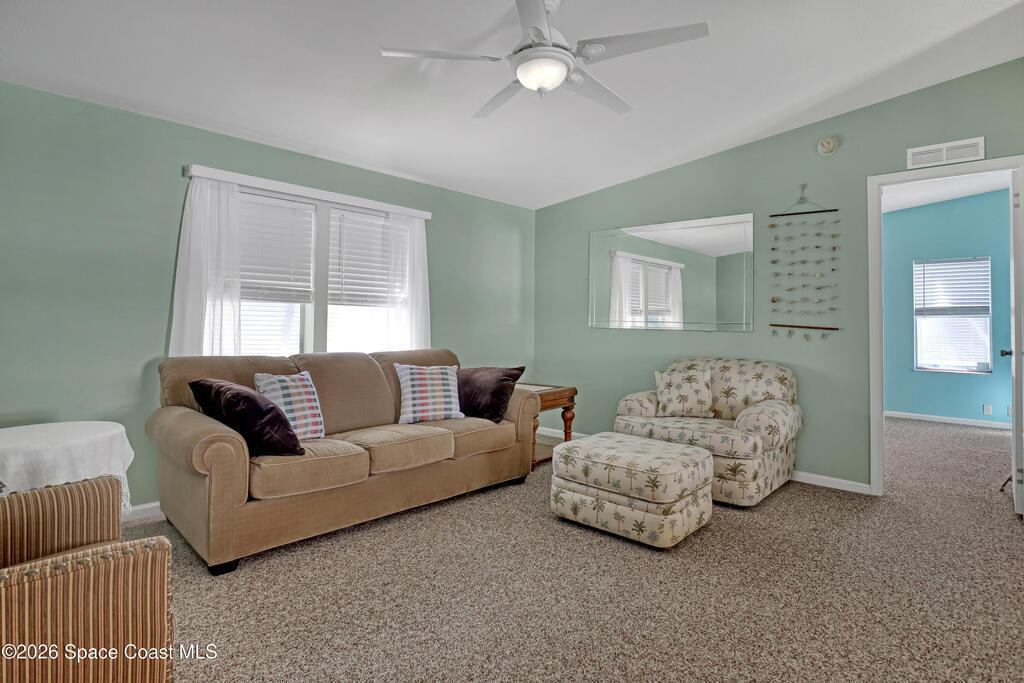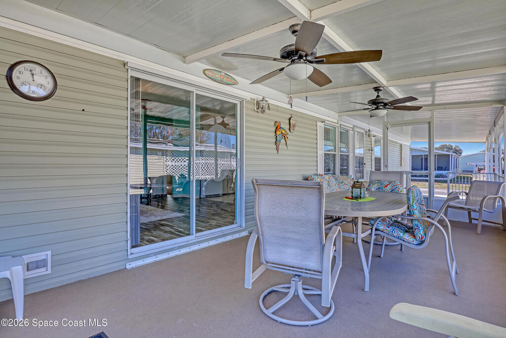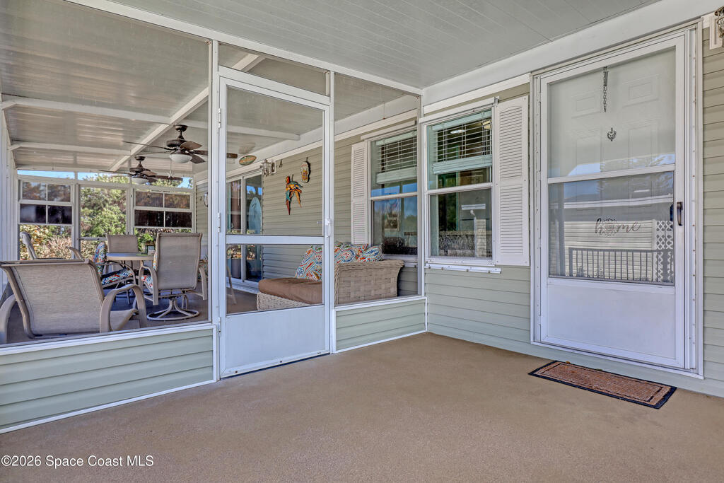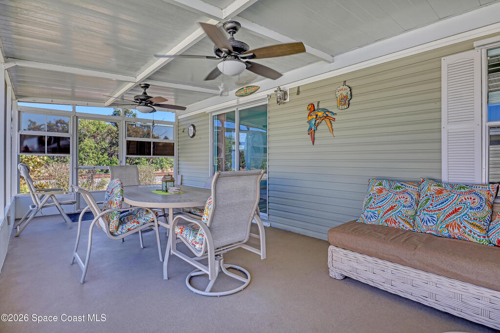 Escape the frozen north! This home is ready for your Florida lifestyle! Enjoy all the wonderful amenities in this vibrant 55+ community conveniently located between Melbourne and Vero Beach. Bright open Kitchen with center island - plenty of room for gatherings! Two living areas and split bedroom plan affords flexibility to meet your needs. No tiny rooms here with over 1500 living square feet! Screened lanai is 11x23; card party anyone? :-) Home built in 2003 with solid frame construction. Updates include metal roof 2019, Bahama shutters, AC & updated electric meter 2025, and leveling done about 10 years ago. Don't forget to check out the workshop/shed out back! Come on! What are you waiting for?