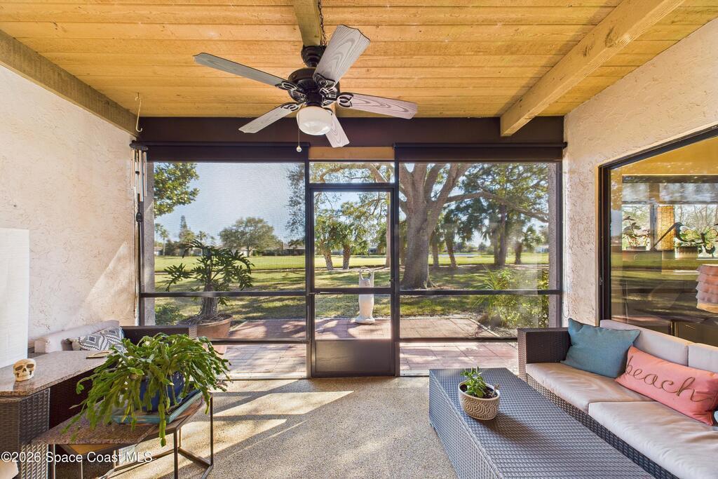 ** 1% buy down rate approved with preferred lender** End-unit townhouse featuring an open floor plan, golf course and water views, low-maintenance single-story living, and a screened-in porch overlooking the lake. A light-filled bonus room with skylights offers flexible space for a home office or den HOA provides lawn care, exterior insurance, driveway maintenance, and access to community pool, making ownership easy and convenient. Well-located close to shopping, dining, medical facilities, I-95 access, and beaches, this home combines lifestyle, comfort, and efficiency. Rare combination of end-unit privacy, scenic views, and low-maintenance living.