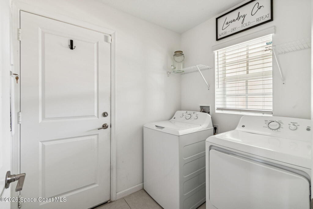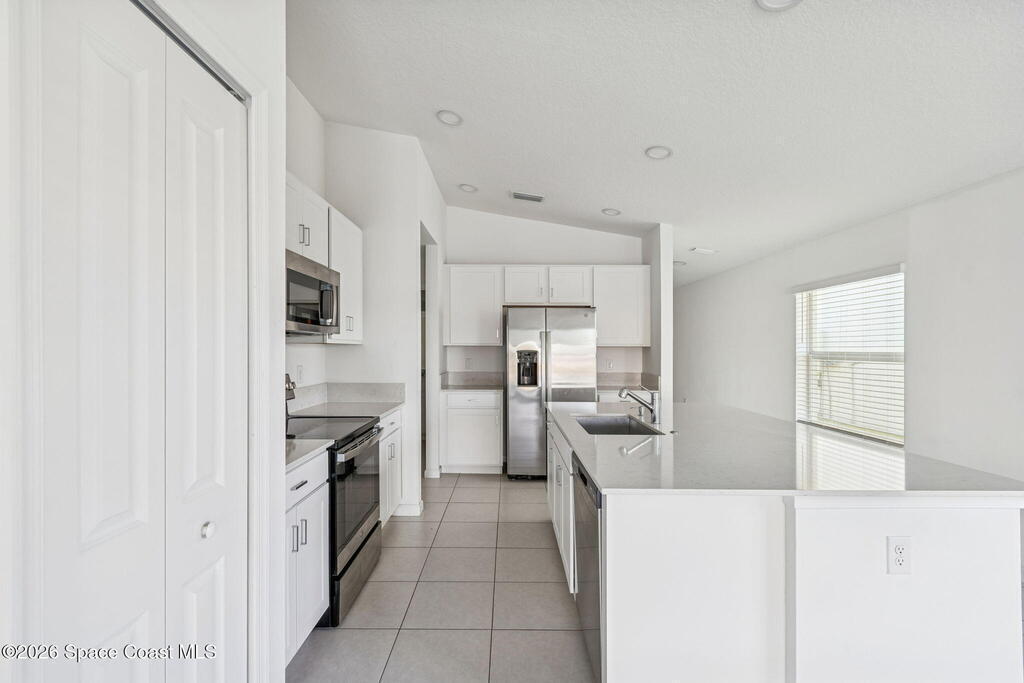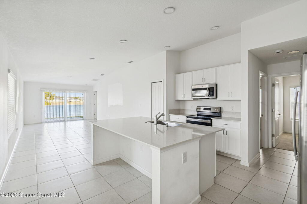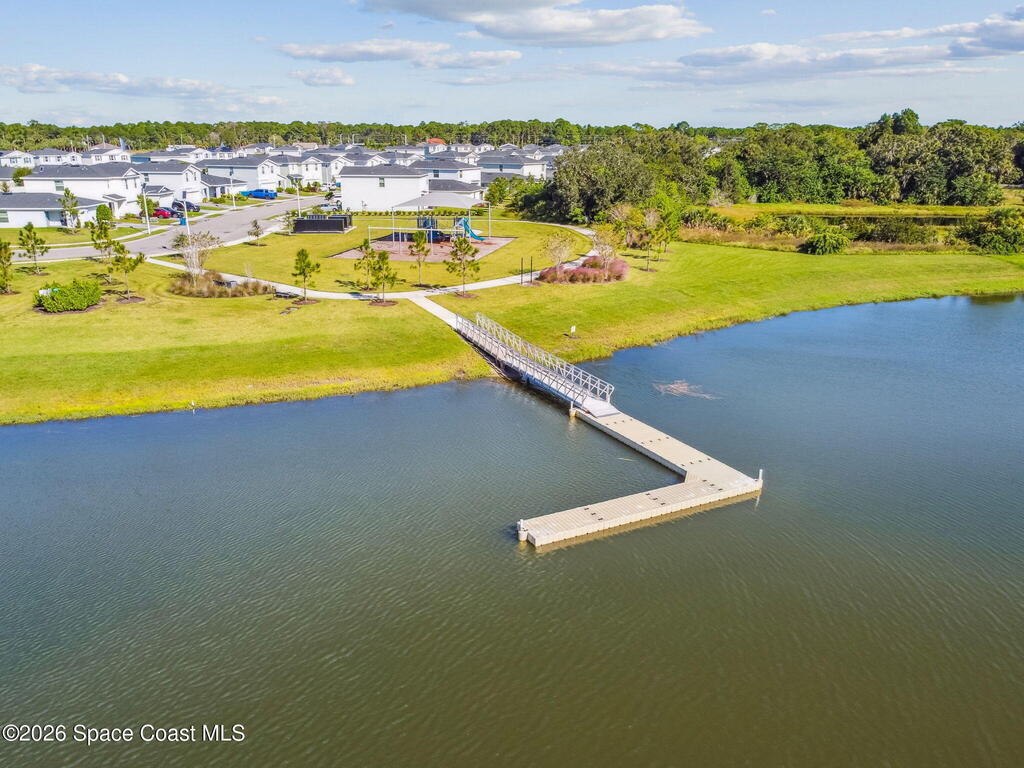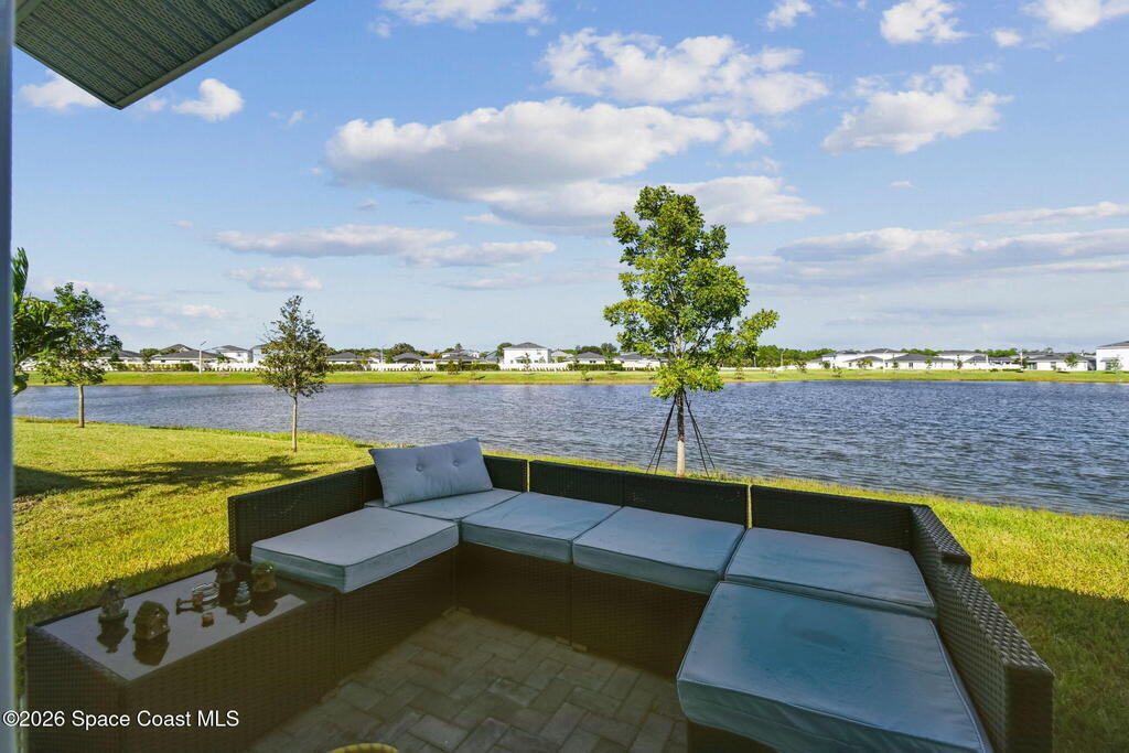 Stunning 2023 Lennar home in Palm Bay featuring 3 bedrooms, 2 bathrooms, and a modern split-floor plan for added privacy. The spacious kitchen boasts a large island, quartz countertops, premium wood cabinetry, and elegant tile flooring throughout. Enjoy impact windows, smart home features, and recessed lighting that enhances the contemporary feel. Outside, relax on the covered front porch, paver driveway, and a serene backyard overlooking a private lake. Located in a low-HOA community offering cable, internet, a dog park, and beautifully maintained common areas. With quick access to St. John's Heritage Parkway and close proximity to shopping and dining, this home offers the perfect blend of comfort, style, and convenience.