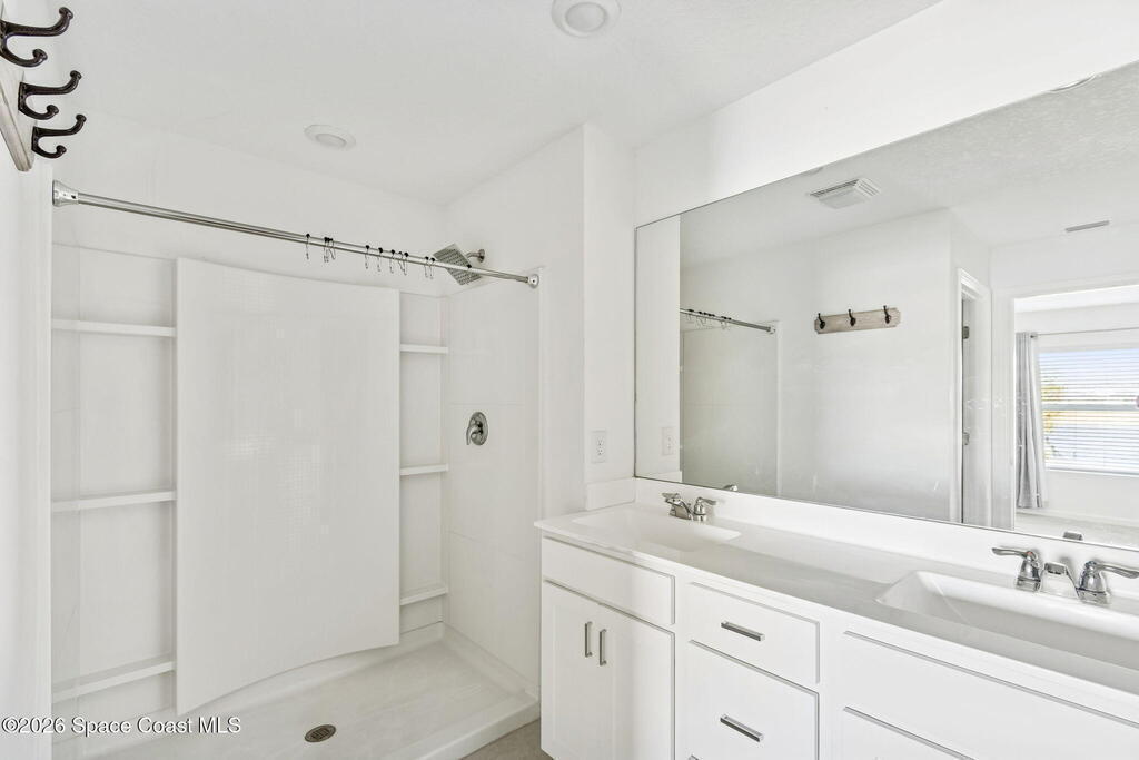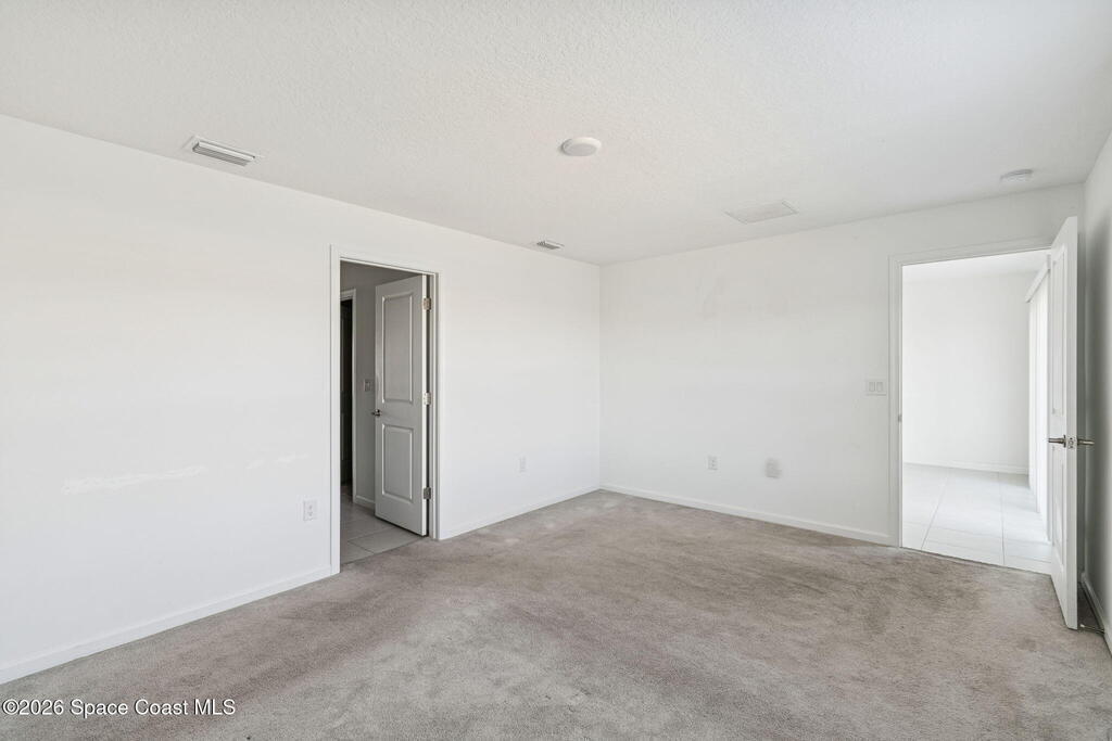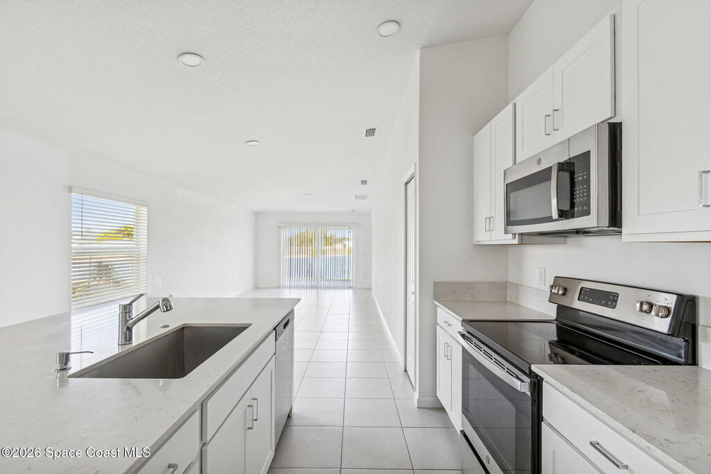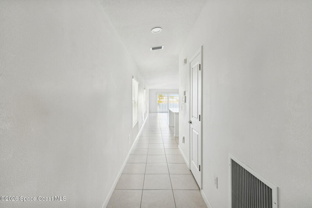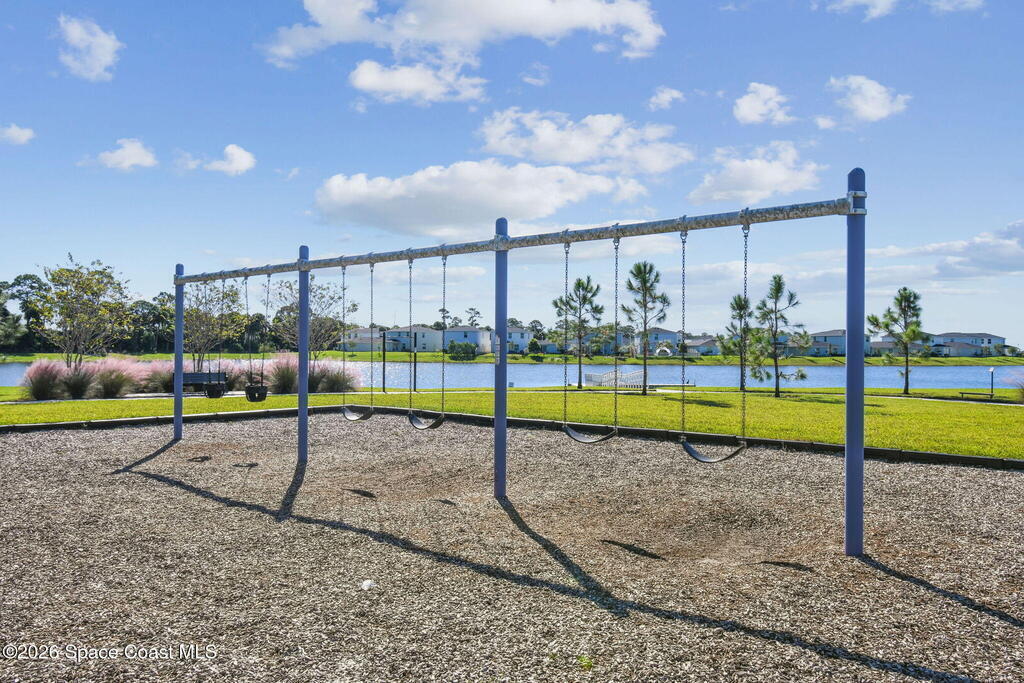 Stunning 2023 Lennar home in Palm Bay featuring 3 bedrooms, 2 bathrooms, and a modern split-floor plan for added privacy. The spacious kitchen boasts a large island, quartz countertops, premium wood cabinetry, and elegant tile flooring throughout. Enjoy impact windows, smart home features, and recessed lighting that enhances the contemporary feel. Outside, relax on the covered front porch, paver driveway, and a serene backyard overlooking a private lake. Located in a low-HOA community offering cable, internet, a dog park, and beautifully maintained common areas. With quick access to St. John's Heritage Parkway and close proximity to shopping and dining, this home offers the perfect blend of comfort, style, and convenience.