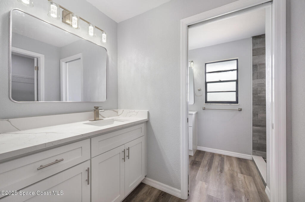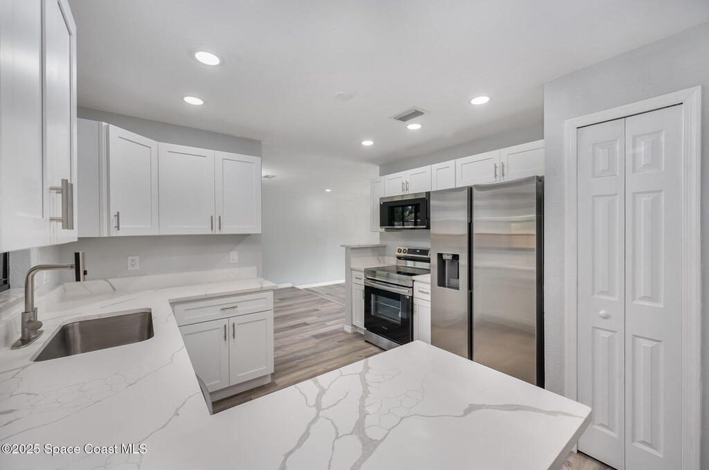 This move-in ready CBS construction home has been completely updated and offers prime location in the middle of Palm Bay near our beautiful beaches, highways and local businesses like Northop Grumman, L3 Harris, Colins Aerospace . This beautiful home is on City water and is a great place to raise your family.Upgrades include:New Roof 2025HVAC/AC 2025Brand New LVP throughoutUpdated Bathrooms with tiled showers, Vanities & Fixtures.Brand New GuttersPainted Interior/ExteriorNew Fence with PermitGorgeous Modern Kitchen and Quartz Counters, Soft Close real wood shaker Cabinets & Stainless Steel Appliances.