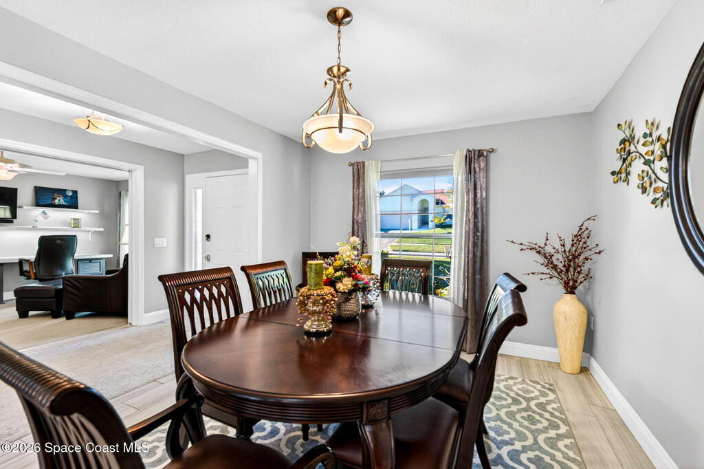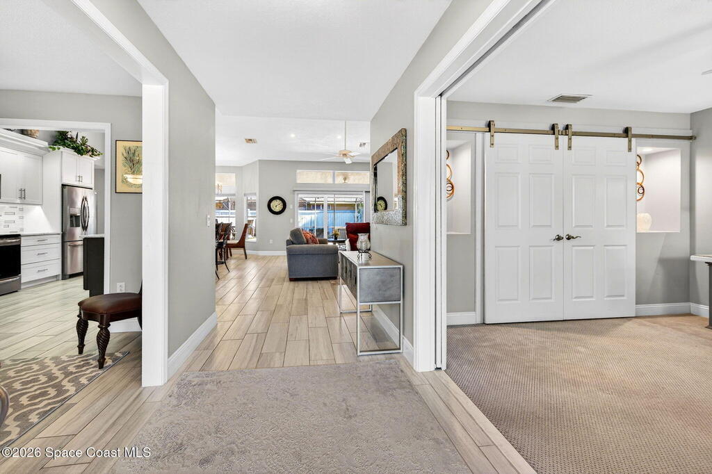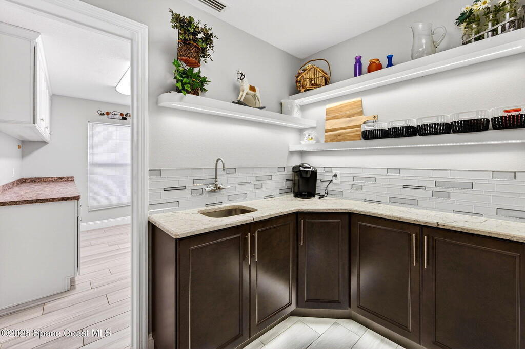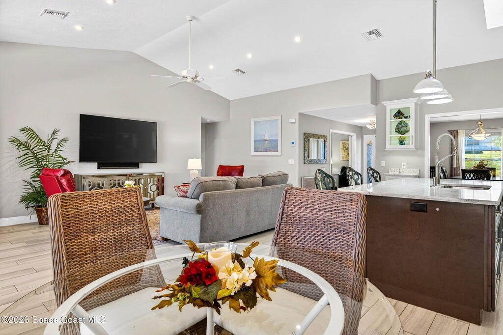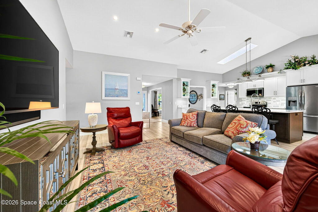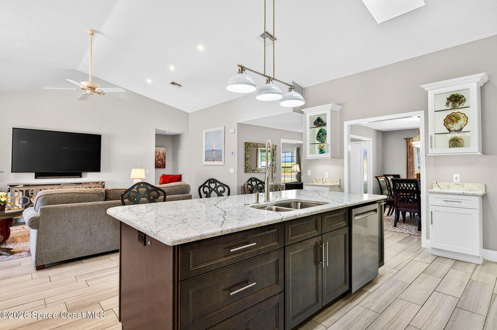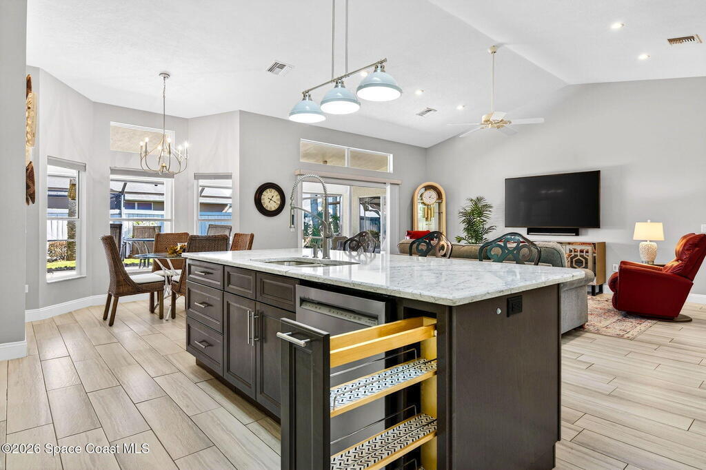 72 Hour Kick-Out Clause. This truly splendid split bdrm home has been beautifully updated, impeccably maintained & ready to impress! Step into the foyer w/a office/den to you R & a large formal Dining Rm to your L & straight ahead to a large open Great rm w/ vaulted ceilings that enhance the open airy feeling while tile flooring that beautifully resembles wood creates durability. At the heart of the home is the open kitchen w/ ample white cabinets, stainless pulls, stainless appliances, quartz counters, center island w/ bar seating, under cabinet lighting & a walk-in pantry. A stunning butler's pantry has a wine rack, wine cooler, sink, under counter lighting, cabinets & quartz tops. The Lg inside laundry rm has a sink & more storage cabinets. Relax & unwind on the screen porch w/ a hurricane curtain & beyond to a screen patio & privacy fenced back yard perfect for outdoor living. MANY IMPACT WINDOWS , HURRICANE PANELS, MINI-SPLIT, GENERATOR HOOK-UP, & ROOF 2023. STRIKING HOME