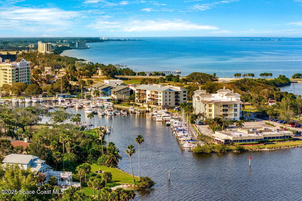 Views, views, views! This coveted top-floor, end unit in Melbourne Harbor delivers sweeping panoramas of Front Street Park, the Intracoastal Waterway, Melbourne Marina, Crane Creek, glowing sunrises, and unforgettable sunsets with manatees, dolphins, seabirds, and an incredible boat show as your daily backdrop. The open floor plan features a modern kitchen overlooking a spacious living area with fireplace, wet bar, and west-facing balcony. 2 covered balconies capture south and west exposures & provide a peaceful outdoor perspective on the ever changing nature show. The primary suite offers a fully renovated bath, walk-in shower, custom vanity, and sitting area. Hurricane shutters throughout, secure garage parking, extra guest parking, and a quiet shared pool complete the package. Just a short stroll to the Chart House and a variety of other downtown dining and nightlife & the beach is just minutes away. All SIRS requirements met and no assessments needed. A must see !