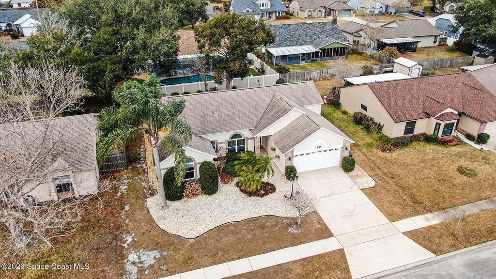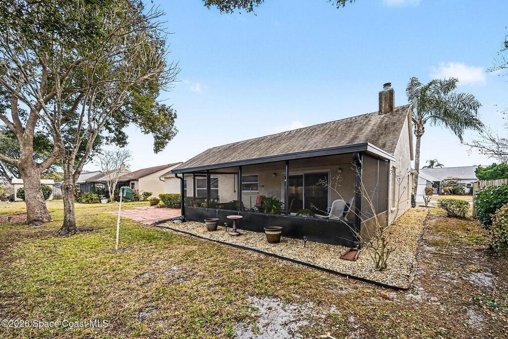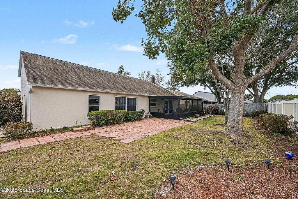 Spacious three bedroom 2 bath home located in a quiet neighborhood with no HOA. This move in ready home features many upgrades and a large family room with the kitchen overlooking the living space. Ideal for both everyday living and entertaining. Impact windows and impact rated garage door provide added peace of mind. The fenced backyard offers privacy and a 300 sq ft screened porch, while beautiful landscaping enhances the home's curb appeal. Conveniently located near parks, beaches, shopping, dining, I95, and everything Viera has to offer, with Orlando International Airport less than an hour away. A short distance to Patrick Space Force Base. A perfect combination of comfort, location and lifestyle. Truly move in ready!