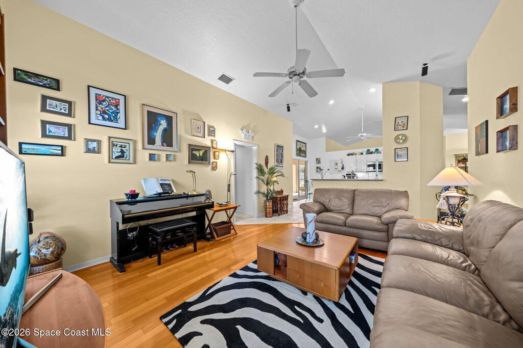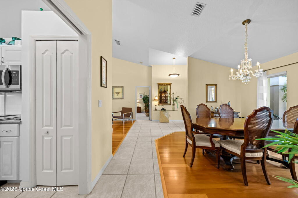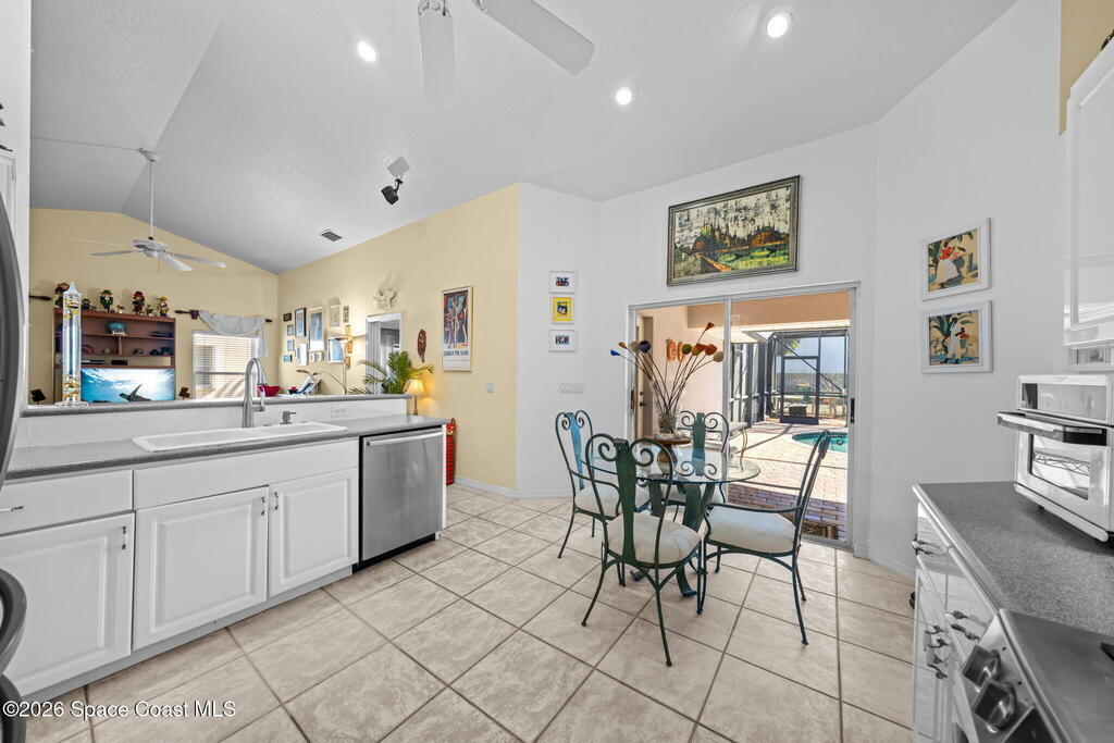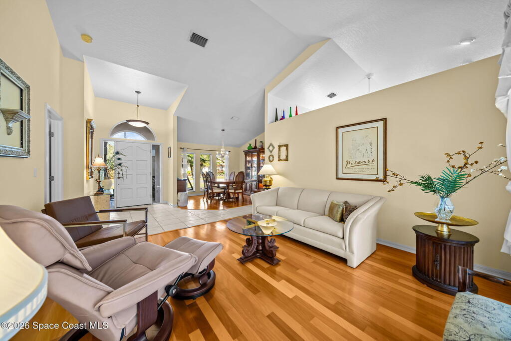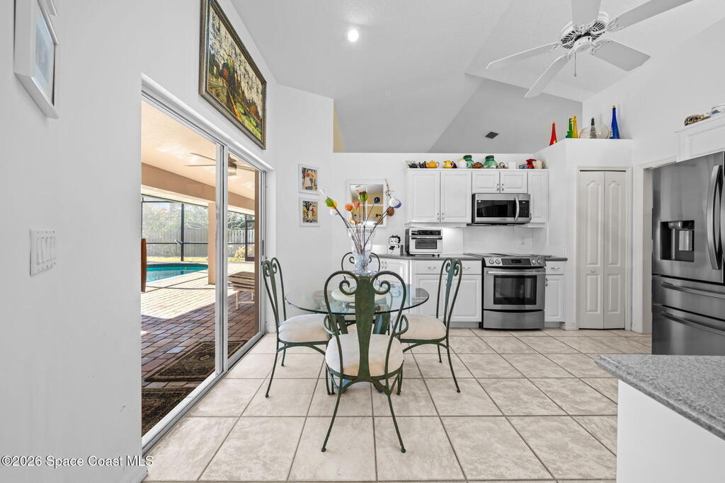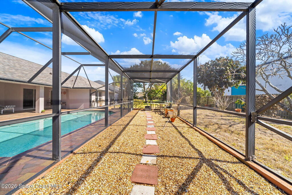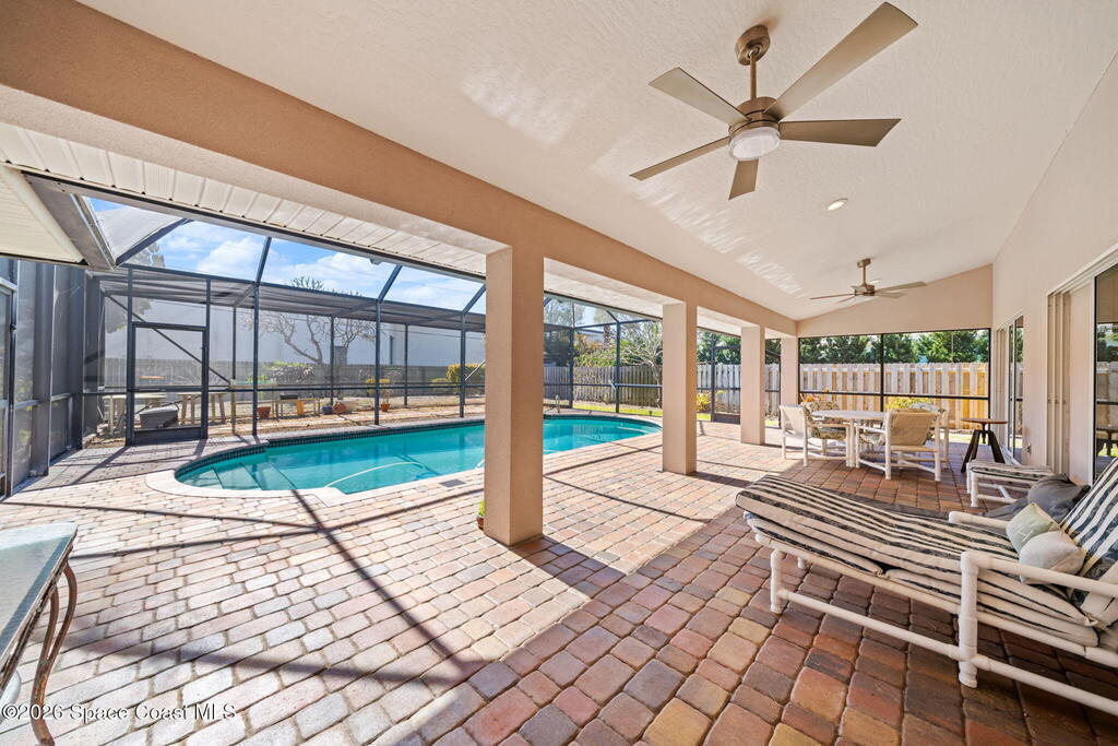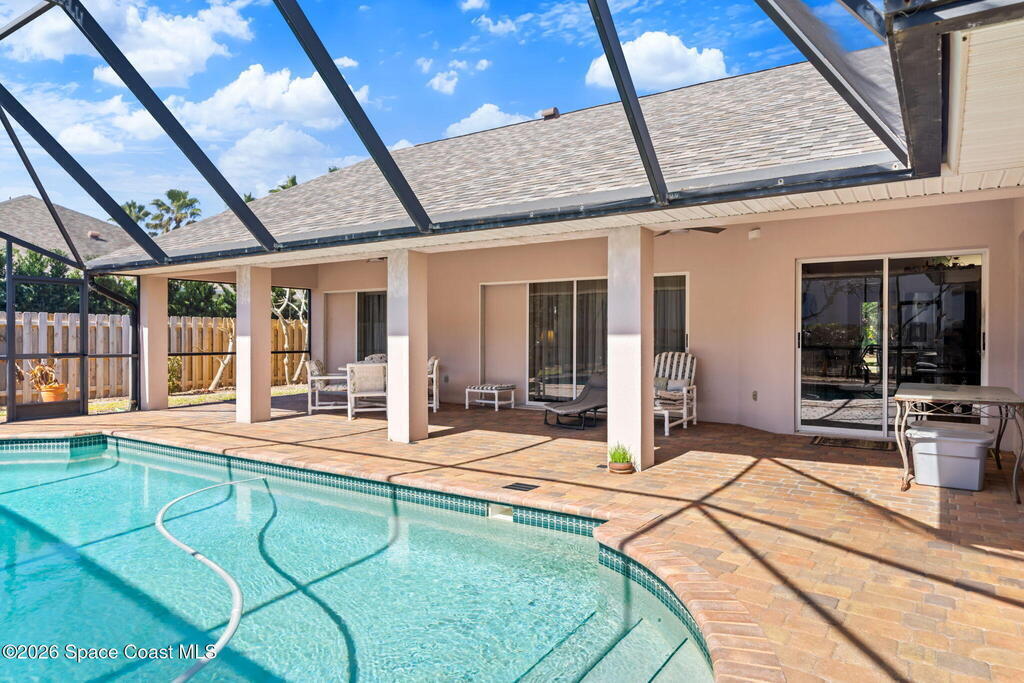 Welcome to beachside living at its best! This beautifully maintained 3-bedroom, 2-bath pool home is located just one block from the beach in desirable Indian Harbour Beach. Featuring an open floor plan with vaulted ceilings, tile and wood flooring throughout the main living areas and baths. The kitchen is equipped with stainless steel appliances and opens seamlessly to the living and dining spaces, ideal for everyday living and entertaining.Enjoy Florida outdoor living with a covered patio overlooking a screened pool with a connected screened area with a double layer sun- filtering screening to help minimize sun exposure for your garden or play area. The backyard is fully fenced with mature landscaping for added privacy. Located in the sought-after Martesia neighborhood with tennis courts, playground, jogging path, and quiet, beautifully maintained streets. Close to shopping, schools, dining, and all the best of beachside living.