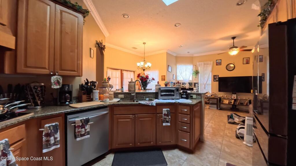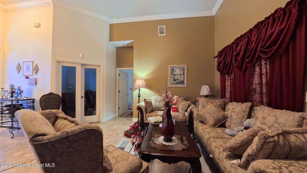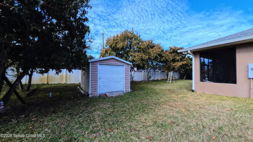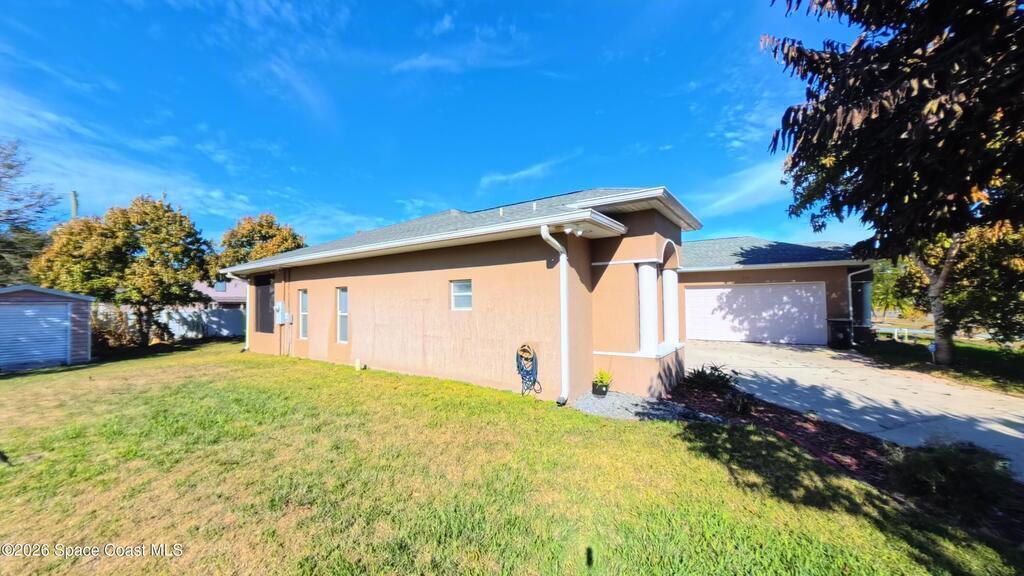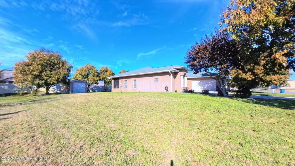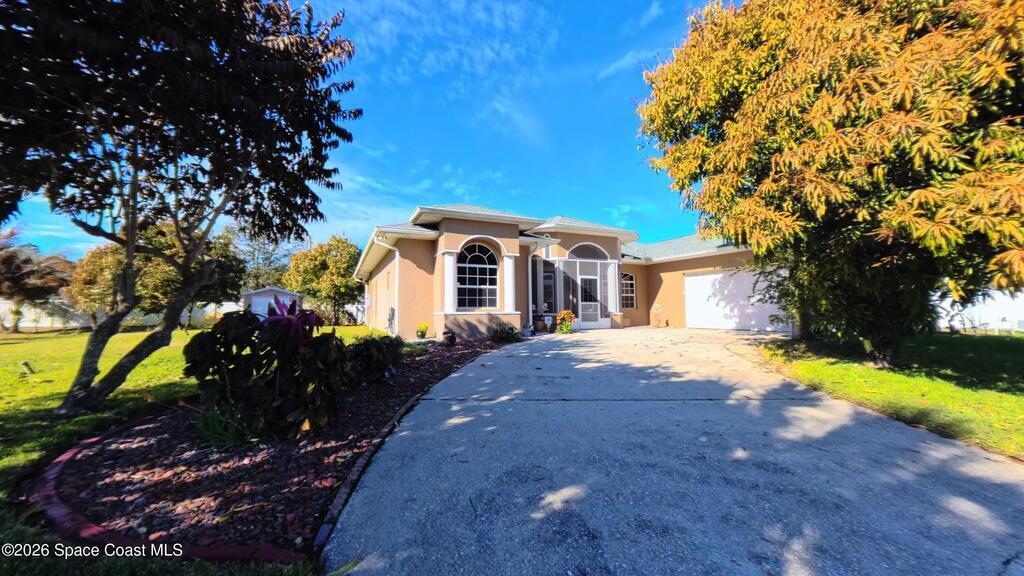 Set on a rare double lot in a quiet pocket of Palm Bay, 2674 SE Peralta Street offers space, flexibility, and freedom that's getting harder to find. This custom-built home was designed with thoughtful upgrades throughout, including a fireplace that anchors the main living space, extensive tile flooring, and multiple French doors that bring in natural light and create easy flow between indoor and outdoor living.The kitchen features granite countertops, abundant cabinetry, and generous prep space--practical for everyday use and effortless when hosting. A dedicated den or study with laminate flooring provides separation from the main living areas, ideal for a home office, hobby space, or quiet retreat. The primary suite includes a double shower and ample storage, continuing the home's emphasis on comfort and function.Outside, the oversized lot offers room to expand, garden, park recreational vehicles, or simply enjoy breathing room--plus a storage shed for tools and equipment.