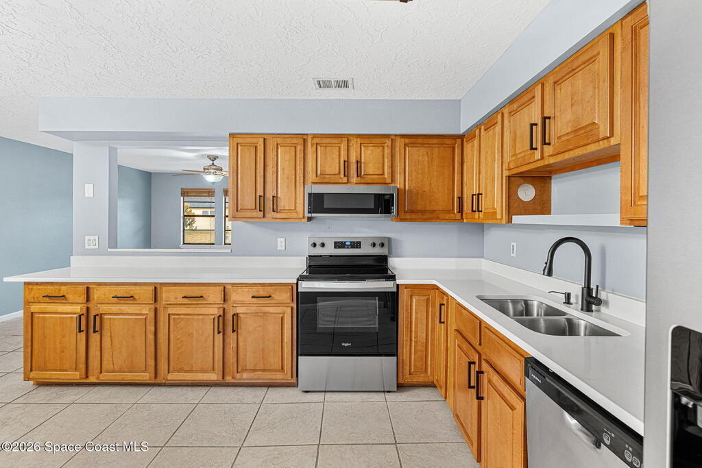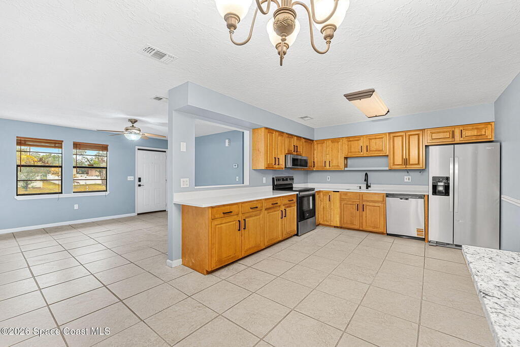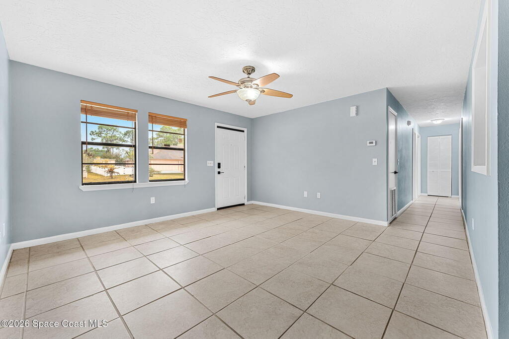 Welcome to this beautifully updated home in the heart of Palm Bay, where comfort meets convenience. Featuring a new roof (2025), new HVAC, new appliances, new quartz countertops, and a new water heater, this home offers peace of mind and modern style from top to bottom. Enjoy the clean, contemporary feel of no carpet throughout, perfect for easy maintenance and a fresh look. Step outside to a large, private backyard--ideal for entertaining, pets, or simply relaxing in your own outdoor retreat. Located just minutes from shopping, restaurants, and top-rated schools, this home delivers both lifestyle and location. Don't miss your chance to own a truly move-in ready property in one of Palm Bay's most convenient areas!
