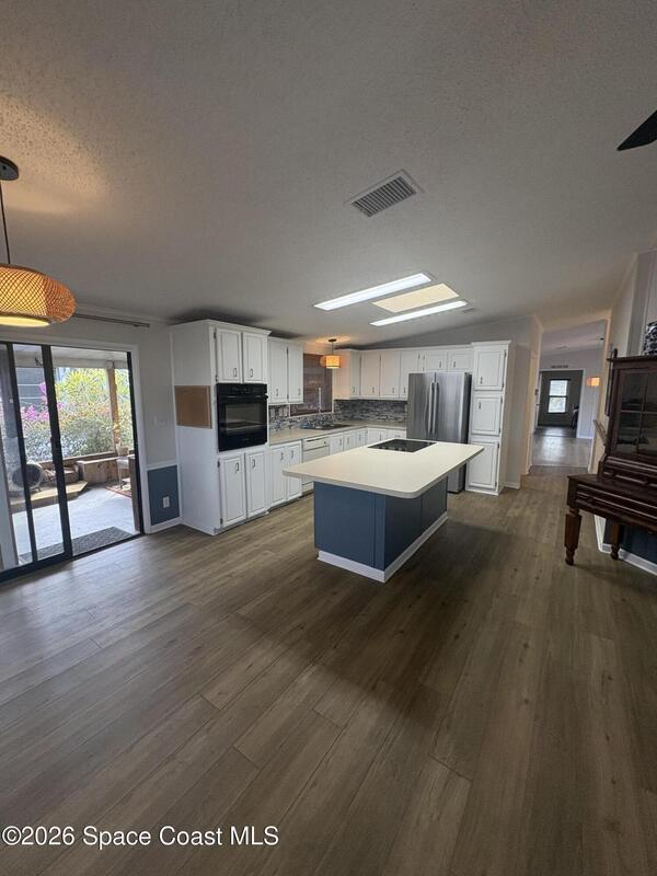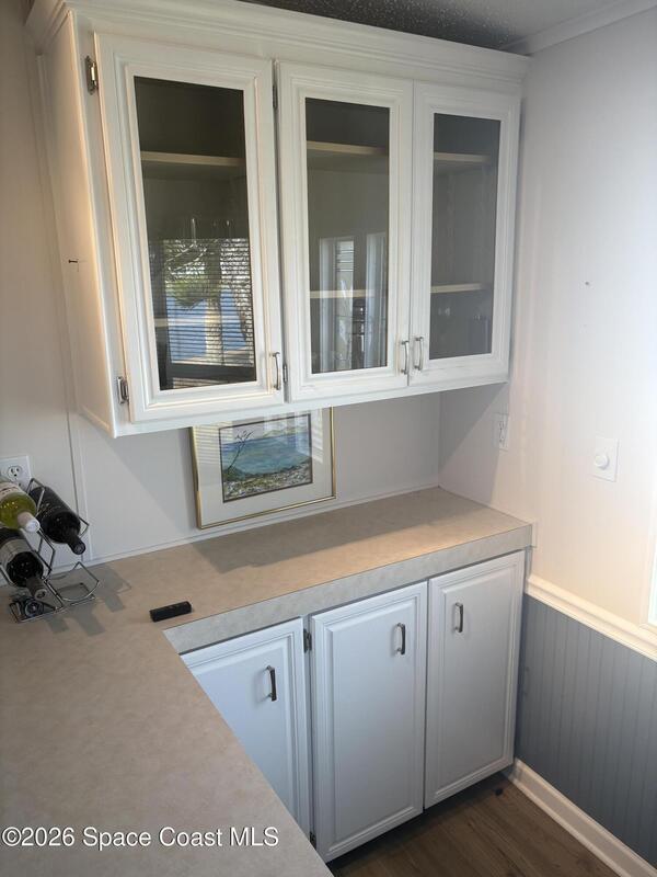 Welcome to this beautifully maintained 2-bedroom, 2-bath split floor plan home offering breathtaking, expansive lake views and effortless indoor-outdoor living. Designed with an open concept layout, this residence is perfect for entertaining and everyday comfort.The gorgeous remodeled kitchen is truly the heart of the home, featuring a large island, abundant cabinetry, and a spacious eat-in dining area and all overlooking the tranquil water. A wet bar adds an extra touch of charm, making gatherings with friends and family even more enjoyable.The primary suite is a peaceful retreat with elegant double doors, a huge walk-in closet accented with stylish barn doors, and an upgraded en-suite bath complete with double vanities and a handicap-accessible walk-in shower. The guest room is graced with a walk-in closet, window view of the lake and the cedar guest bath is right next door adding charm and style.