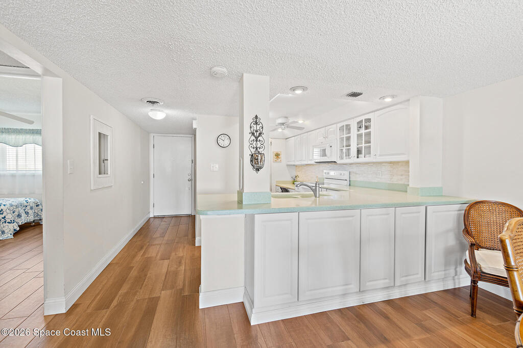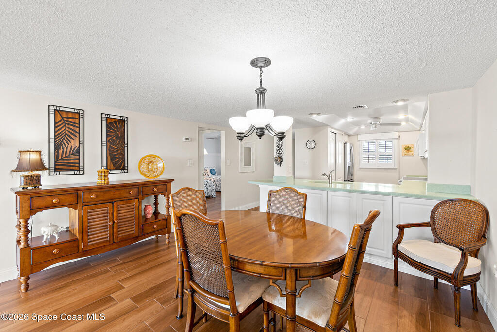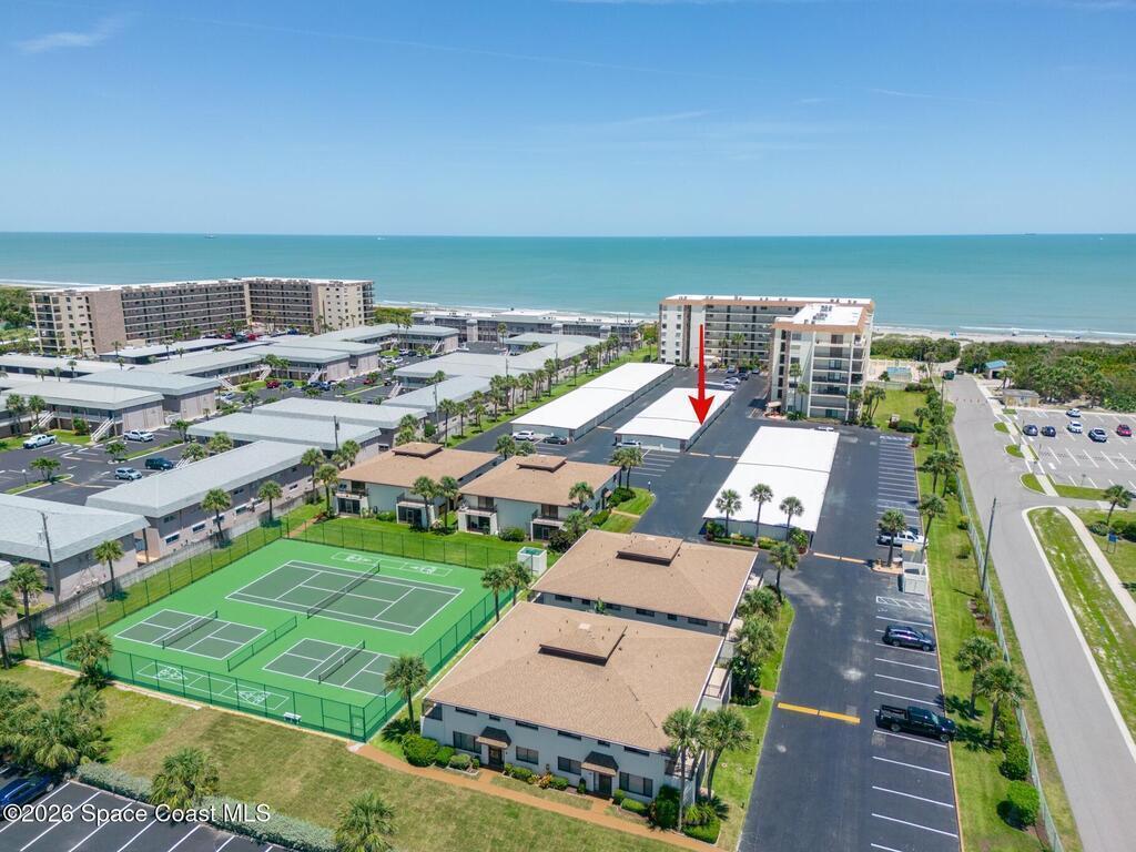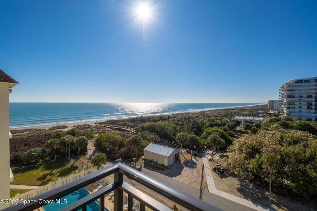 Wake up to endless ocean views from this incredible 7th floor end unit condo that is VA loan approved! Balcony delivers a rare combination of ocean, beach, greenspace & unforgettable sunsets. Inside, the kitchen features Corian counters, generous cabinets/storage space, pantry & built in desk area perfect for working from paradise. The primary suite includes 2 closets, updated double sink vanity & nonstop ocean views. Extra living room window brings in natural light & more coastal scenery. Tile floors & storm shutters throughout, washer/dryer, 2022 HVAC & one car garage round out the essentials. Sold fully furnished, this turn-key condo is ready for immediate enjoyment as your beach retreat or a smart rental opportunity. Community amenities include heated pool, sauna, tennis/pickleball, fitness room, clubhouse & private beach access. Close to shopping, dining, parks & just minutes to vibrant downtown Cocoa Beach. Ocean views, sunset skies & easy coastal living-this one delivers!