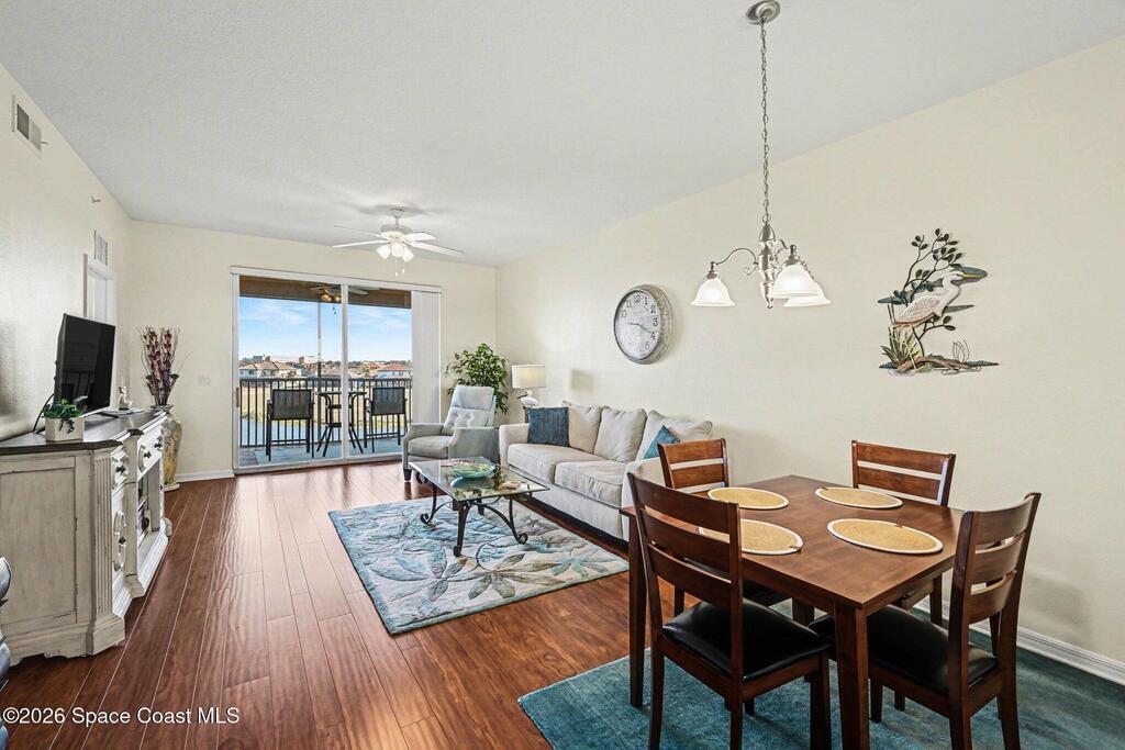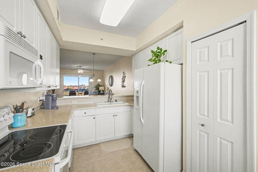This top-floor residence is defined by its uninterrupted panoramic view stretching across water, fairways, and open sky. Nearly every room has a wide and cinematic view that only a 4th floor vantage can deliver!The two-bedroom, two-bath layout is designed for both privacy and connection. Living and dining area make the home feel versatile-- suited for quiet mornings or gatherings with guests. Natural light moves throughout the day, shifting the mood from bright and energizing to warm and serene.Practical comforts include covered parking, a dedicated storage area, water, cable, high speed internet and a floor plan that lives larger than its footprint.The main living space remains the heart of the home--open, airy, and framed by ever-changing views! This penthouse offers a lifestyle that feels effortlessly enjoyable!