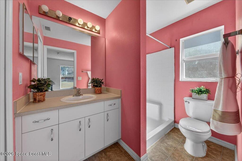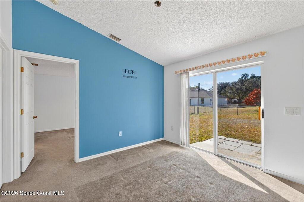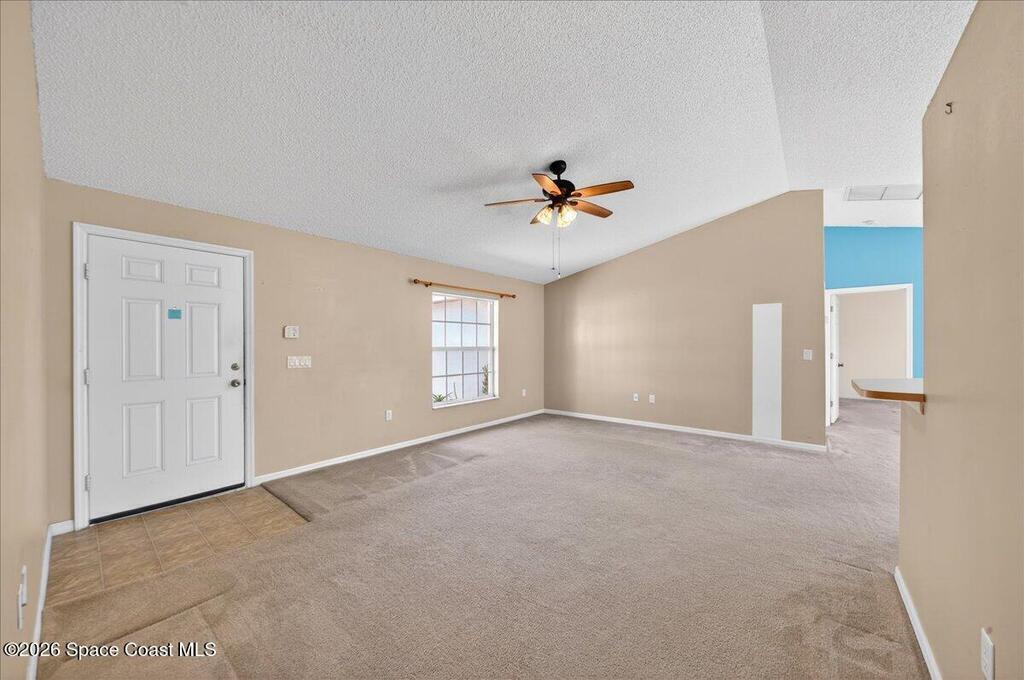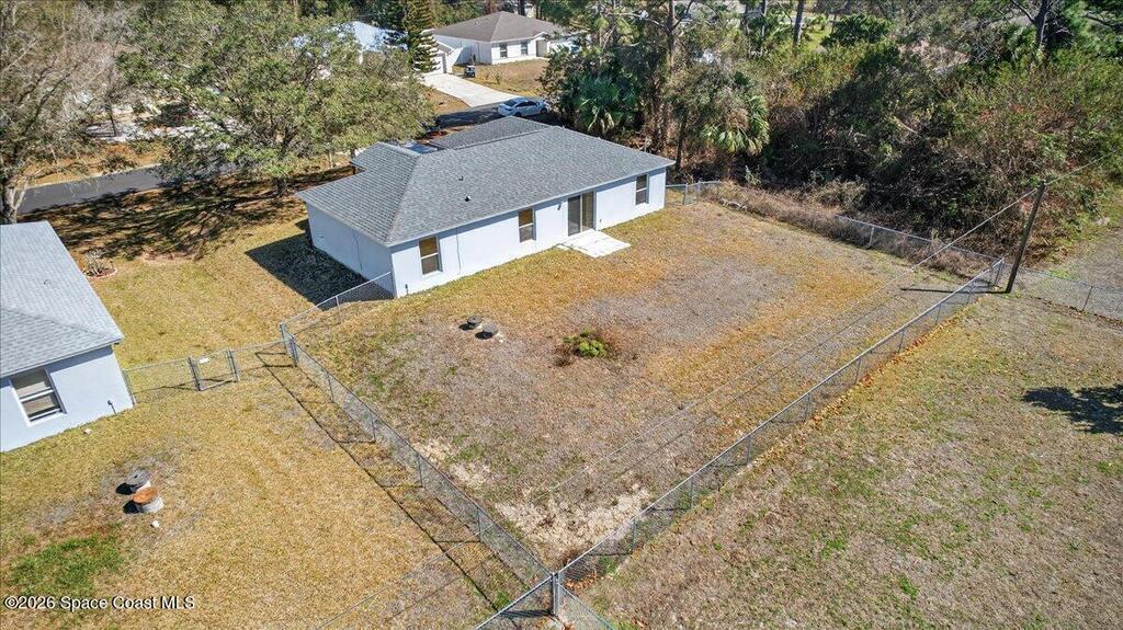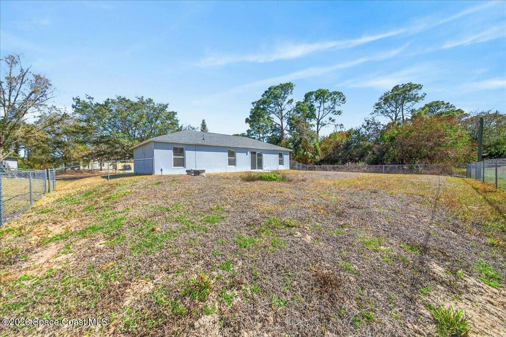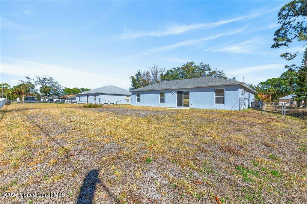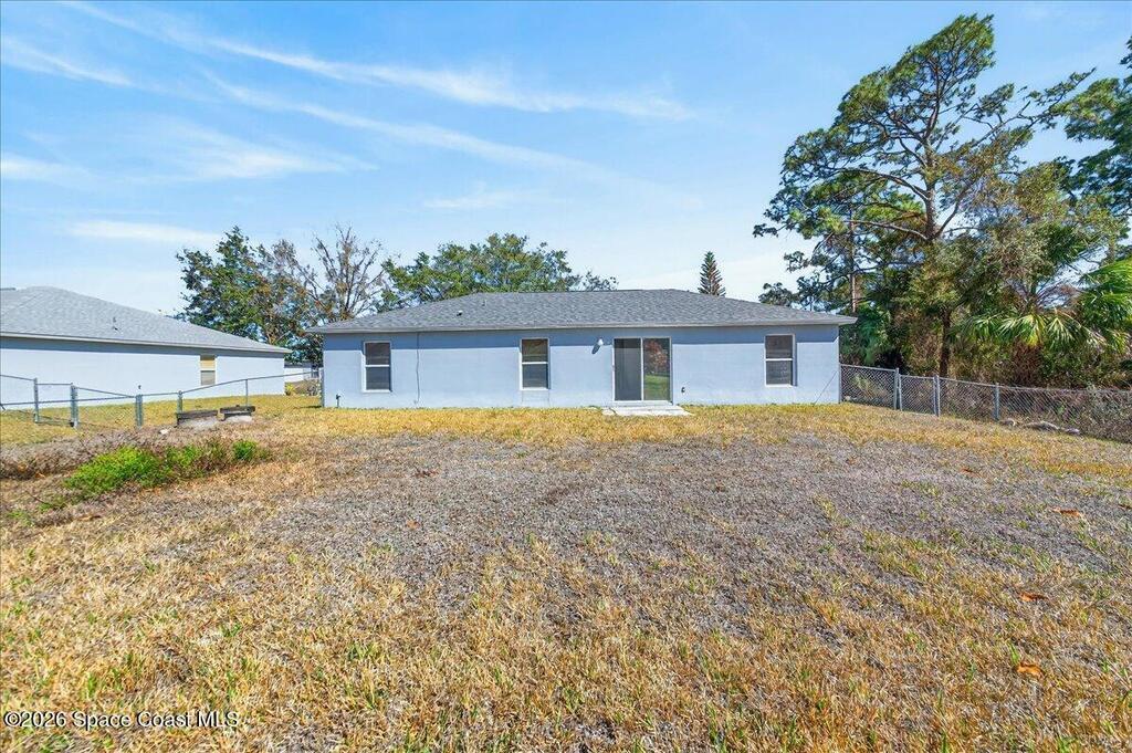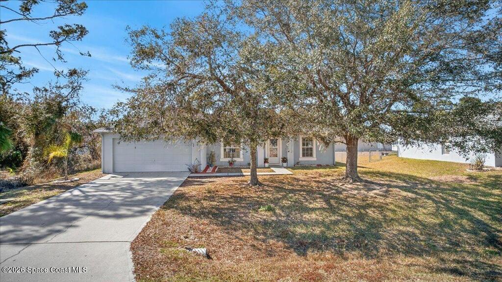 Concrete block home with a 2022 roof and 2022 AC give this Palm Bay home a strong foundation, paired with a 3-bedroom, 2-bath split floorplan that offers a functional layout. The living, dining, and kitchen areas share an open concept with vaulted ceilings, creating a central space that feels open and easy to use. The primary bedroom includes a walk-in closet, and the additional bedrooms are comfortably sized.The property sits on .24 acres with a fenced backyard and mature trees in the front yard that add natural shade. Built in 2005 and maintained by the original owner, it provides a solid base that is move in ready with room for someone to make updates over time.