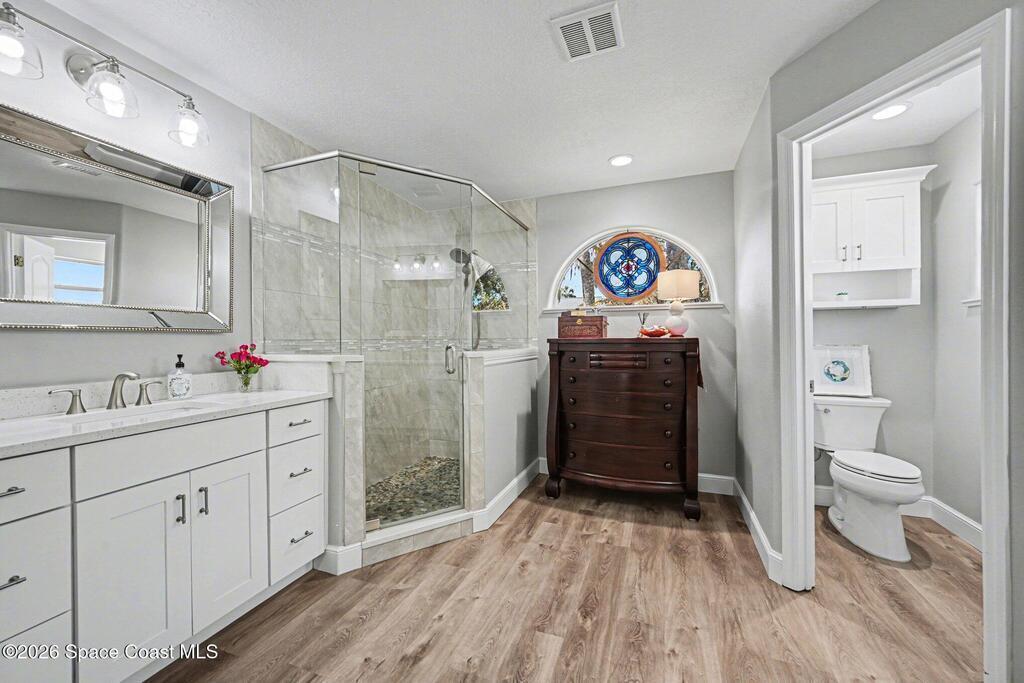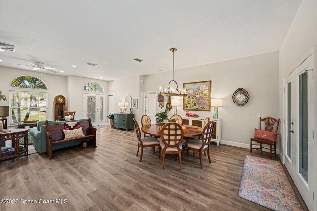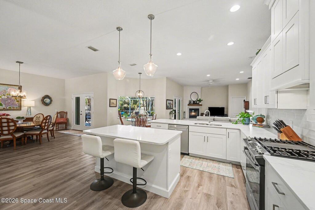 Look no further if you are wanting to live in a golfing community on the 15th Hole with a low HOA fee, surrounded by nature and Florida's wildlife. This home was COMPLETELY and lovingly renovated and updated from 2021 - 2025, including some outdoor features- brand new exterior paint, pool screen area and pool pump, resurfaced pool deck, and aluminum fence. Tastefully remodeled to include a gourmet style kitchen with ample room for all of your cooking and kitchenware supplies, appliances, all three bathrooms, interior paint and ceilings, flooring, fireplace mantel with quartz facing, quartz countertops throughout, & French doors. Whole house Generac Guardian 16kW generator with 200 amp transfer switch. The Space Coast Golf Club is close by offering 18 holes of golf, a bar and grille and golf shop - also open to the public. This community is close to international airports, Kennedy Space Center, numerous parks including Kars Park, Mitchell Ellington Park and Brevard beaches.
