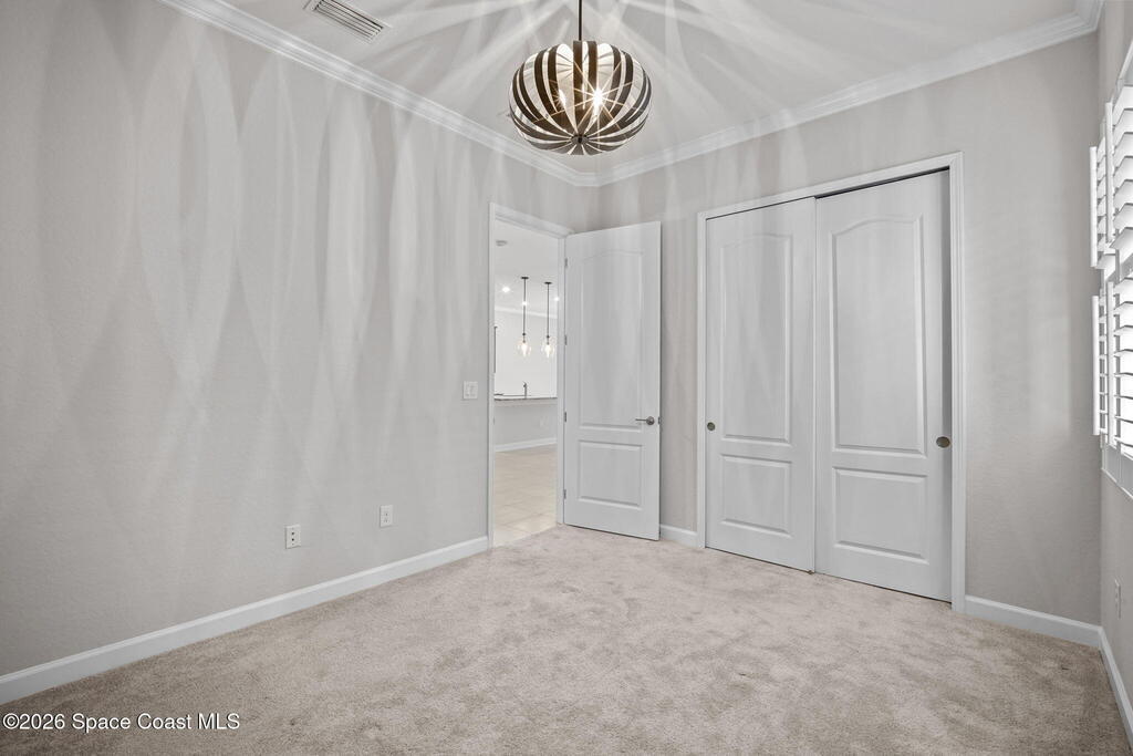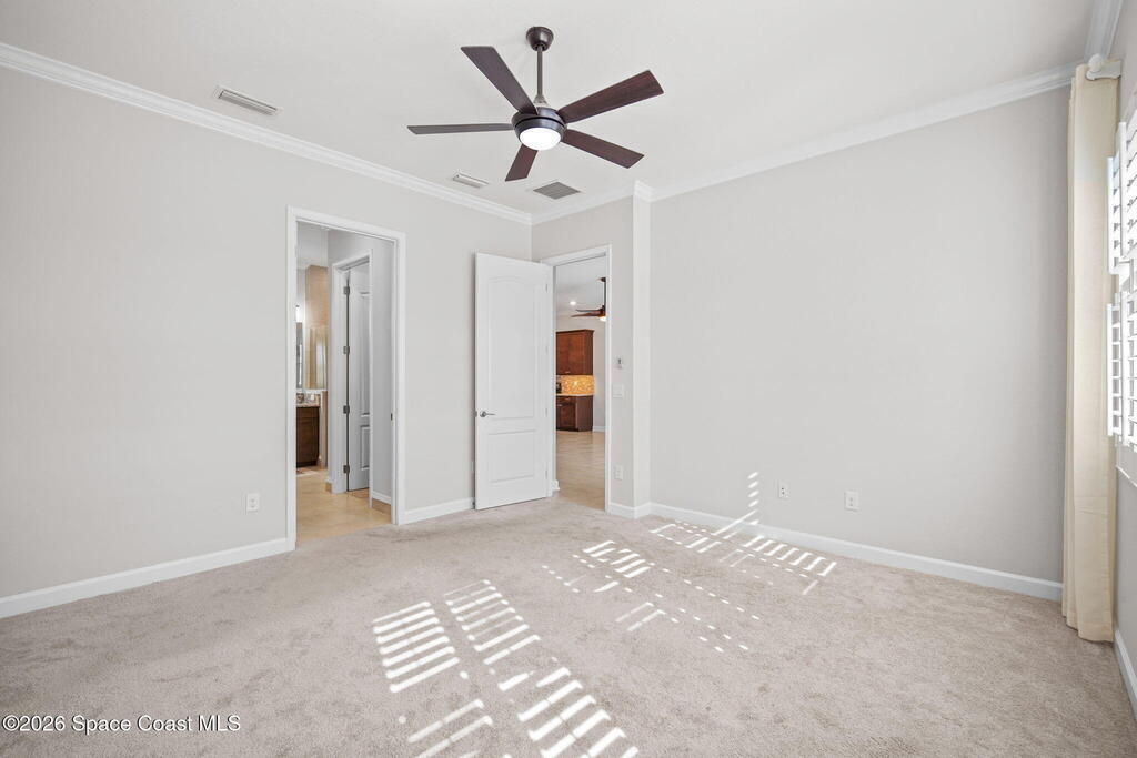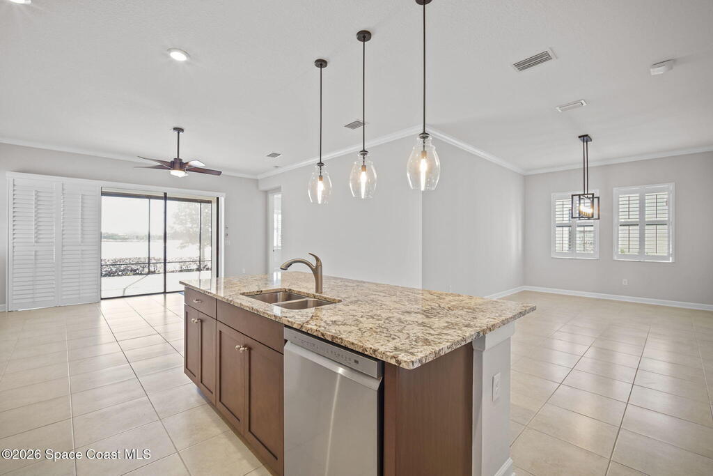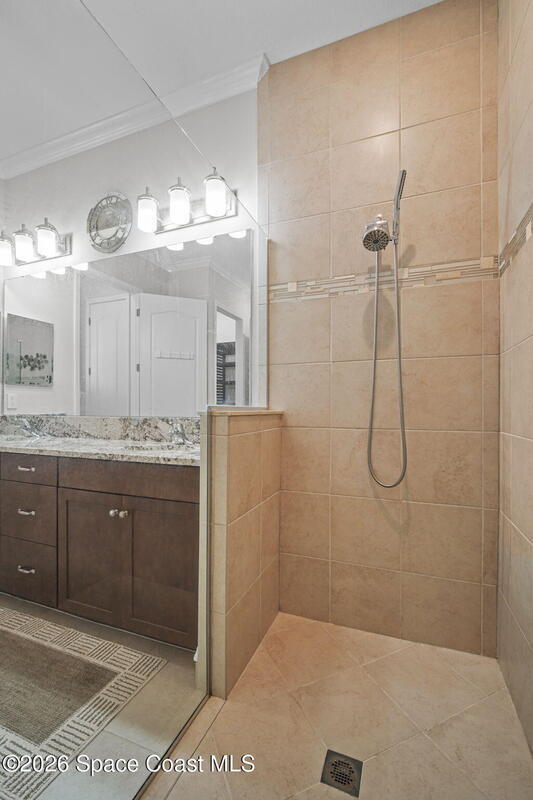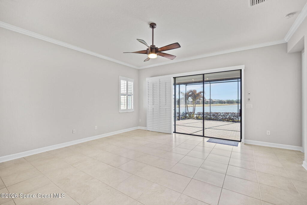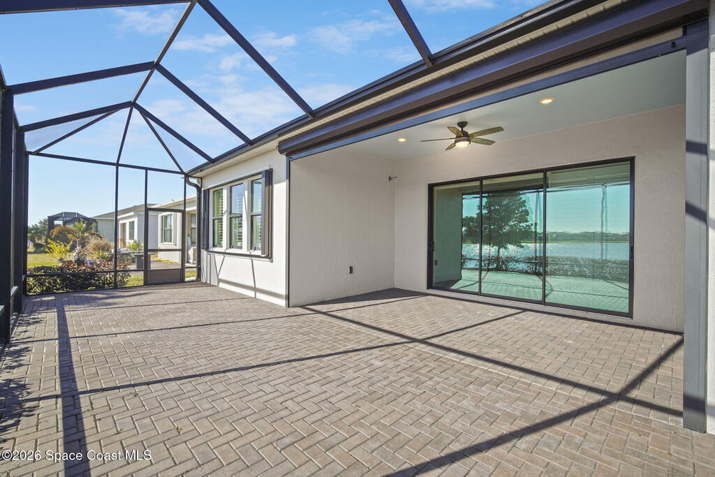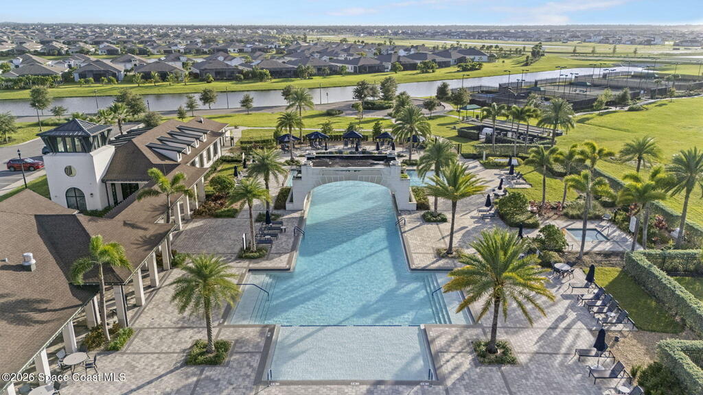 Welcome to Bridgewater at Viera, a premier 55+ gated community! This upgraded one-story home offers maintenance-free living with long pond views and an extended screened lanai.Inside features include fresh interior paint, epoxy floors in garage, 10-ft ceilings, 8-ft doors, crown molding, plantation shutters, and pendant lighting. The kitchen boasts granite countertops, a large island, new stainless steel appliances, and a walk-in pantry.The primary suite offers dual sinks, a walk-in tile shower, and His & Hers walk-in closets. Additional upgrades include a whole-home water filtration system, built-in accordion shutters, and electric roll-down hurricane screens for lanai.Enjoy resort-style amenities including a pool, fitness center, aerobic room, movie theater, pickleball, tennis, library, art & craft room, cafe, ballroom, shuffleboard courts, and walking paths--all in a golf-cart-friendly community.Come see why Bridgewater is the perfect place for 55+ living!