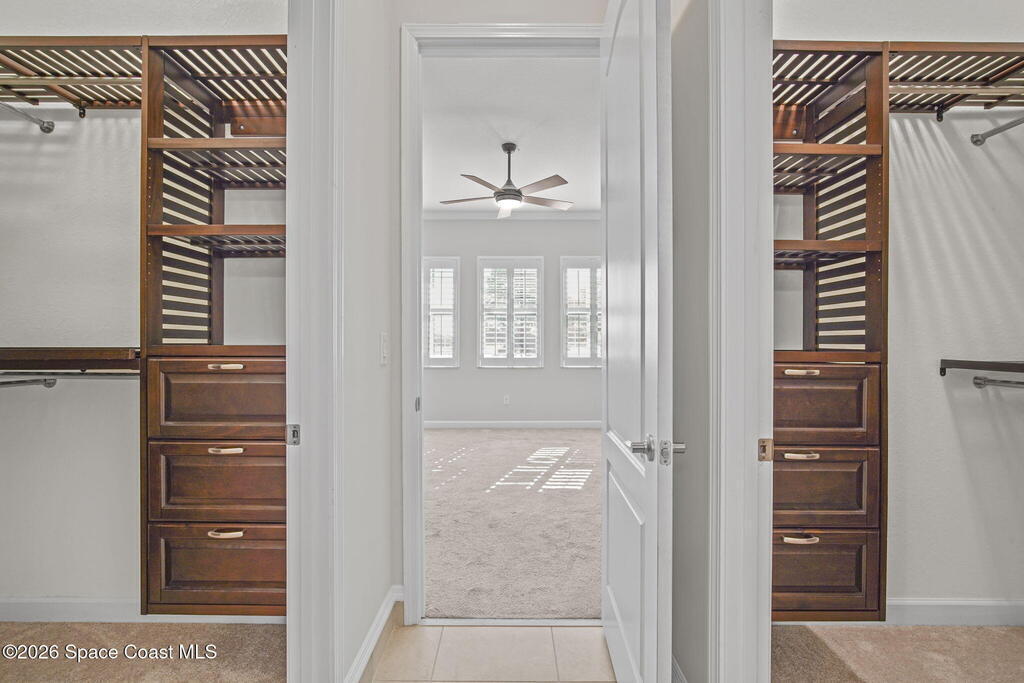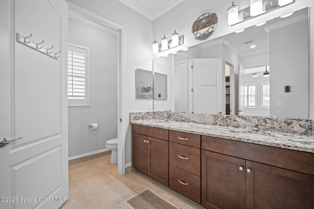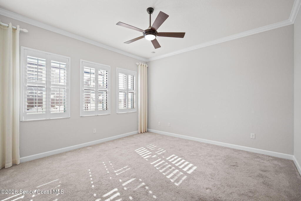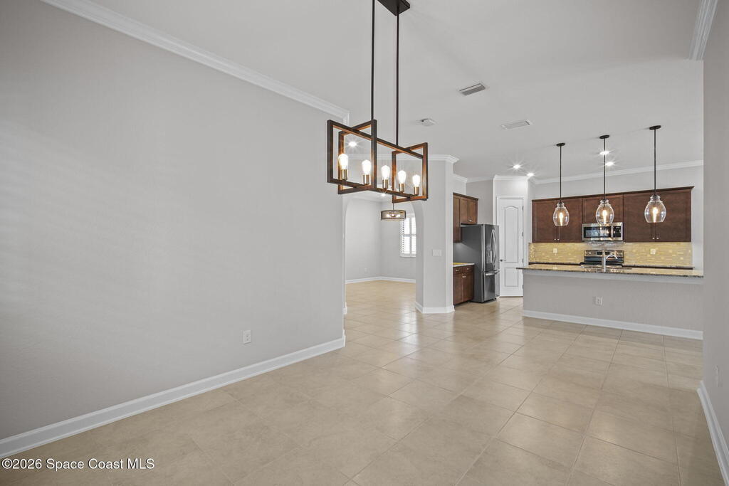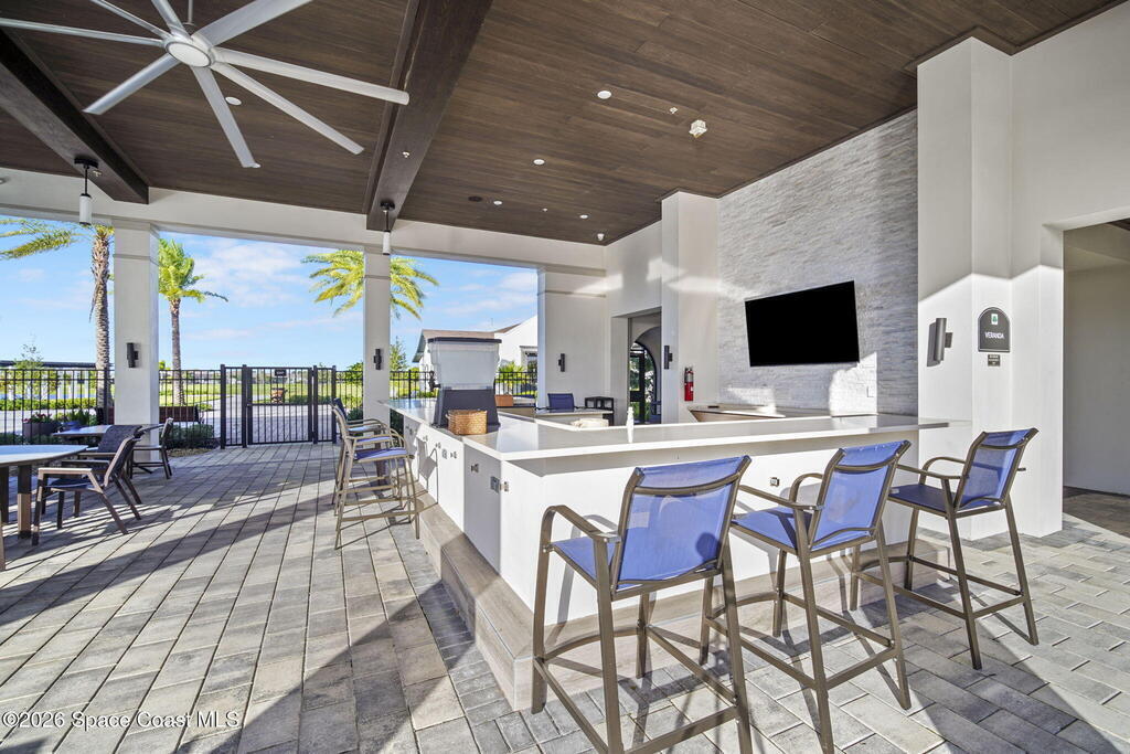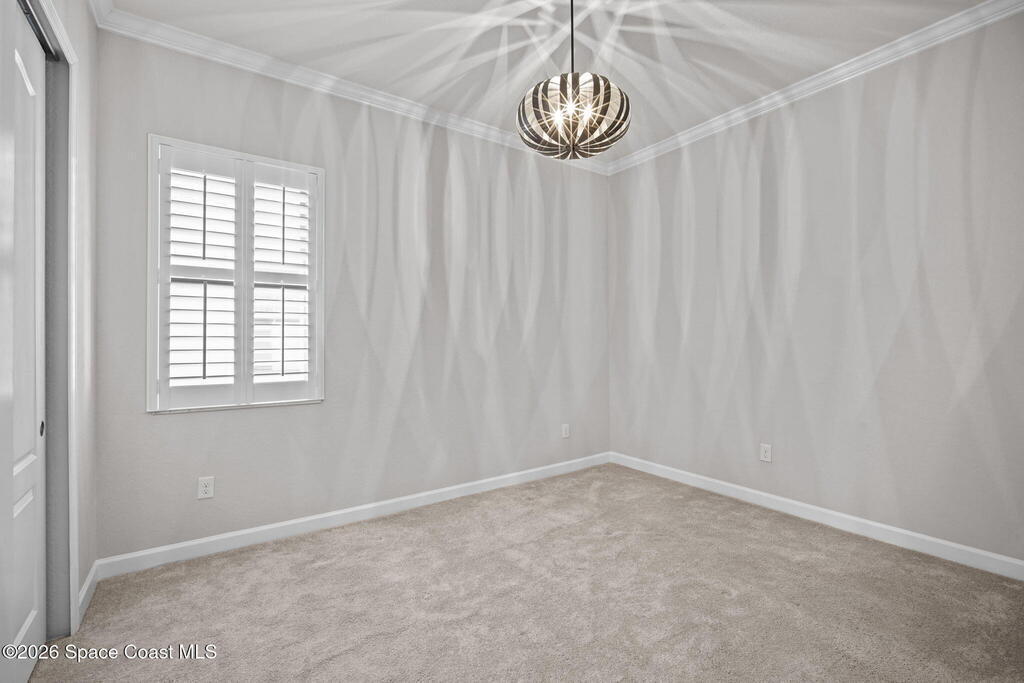 Welcome to Bridgewater at Viera, a premier 55+ gated community! This upgraded one-story home offers maintenance-free living with long pond views and an extended screened lanai.Inside features include fresh interior paint, epoxy floors in garage, 10-ft ceilings, 8-ft doors, crown molding, plantation shutters, and pendant lighting. The kitchen boasts granite countertops, a large island, new stainless steel appliances, and a walk-in pantry.The primary suite offers dual sinks, a walk-in tile shower, and His & Hers walk-in closets. Additional upgrades include a whole-home water filtration system, built-in accordion shutters, and electric roll-down hurricane screens for lanai.Enjoy resort-style amenities including a pool, fitness center, aerobic room, movie theater, pickleball, tennis, library, art & craft room, cafe, ballroom, shuffleboard courts, and walking paths--all in a golf-cart-friendly community.Come see why Bridgewater is the perfect place for 55+ living!