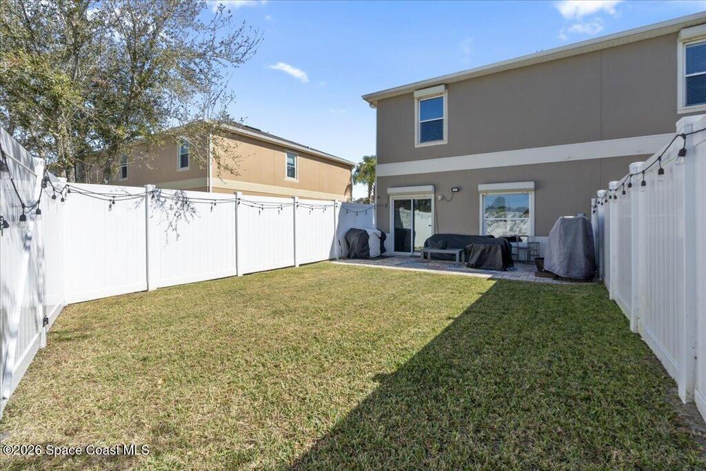 Welcome to easy Florida living in this beautifully maintained 3-bedroom, 2.5-bath end-unit townhome that truly lives like a single-family home. From the moment you step inside, you'll notice the attention to detail and upgrades throughout. The spacious kitchen is the heart of the home, featuring upgraded cabinetry, granite countertops, stainless steel appliances, and a generous breakfast bar perfect for casual dining or entertaining. Upstairs and along the staircase, engineered hardwood flooring adds warmth and durability, creating a polished, cohesive look. Natural light pours in thanks to the end-unit location, giving the home an open and airy feel you don't often find in townhome living. Step outside to enjoy your own private fenced yard -- ideal for pets, grilling, or simply relaxing after a long day. For added peace of mind, the property is equipped with accordion roll-down hurricane shutters, a rare and valuable feature in the community. Combining style, function, and privacy,