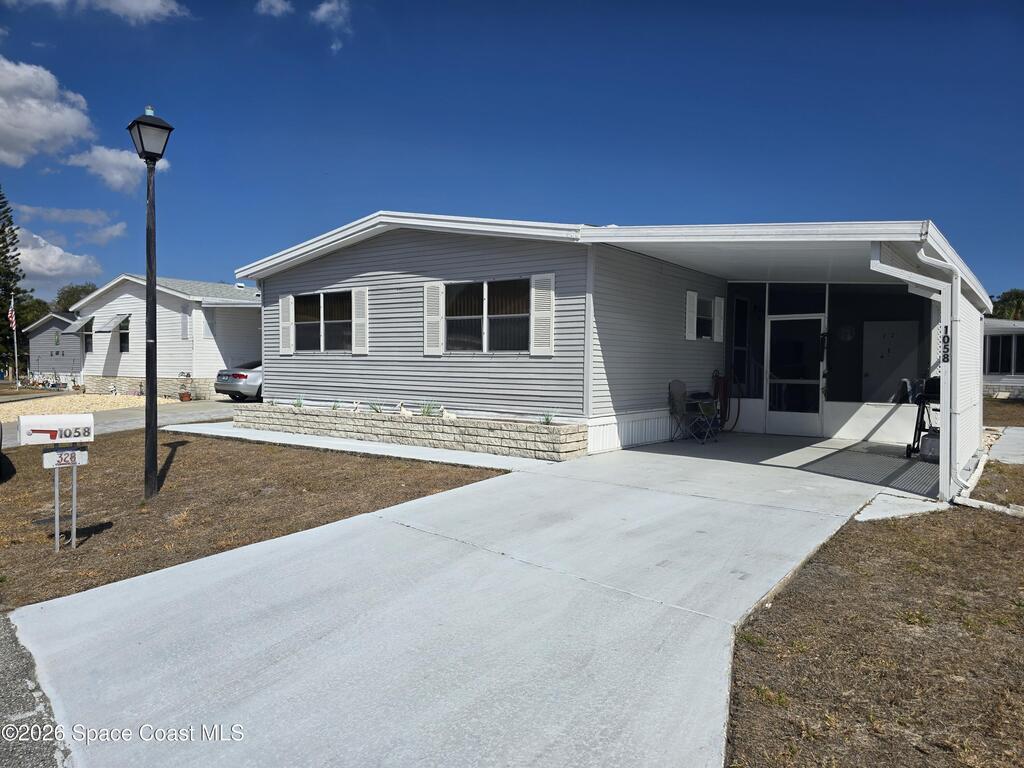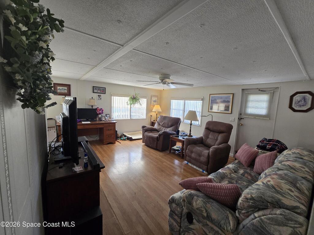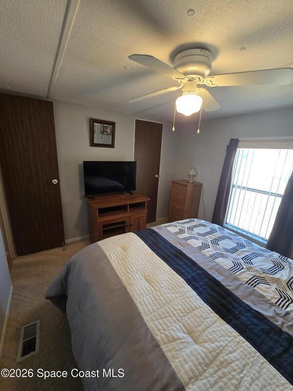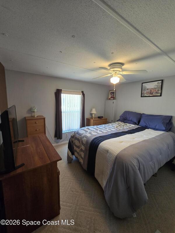 Welcome to this delightful 2-bedroom, 2-bathroom manufactured home located in the highly sought-after gated Holiday Park community in Palm Bay, Florida. This home offers a comfortable and inviting atmosphere with a spacious living area, galley-style kitchen, and a cozy primary suite. The community offers two sparkling heated pools, a clubhouse, a billiards hall, shuffleboard/pickleball and bocce ball courts. The association fees also include lawn maintenance, cable/internet, and gated security. Visit holidayparkfl.com.