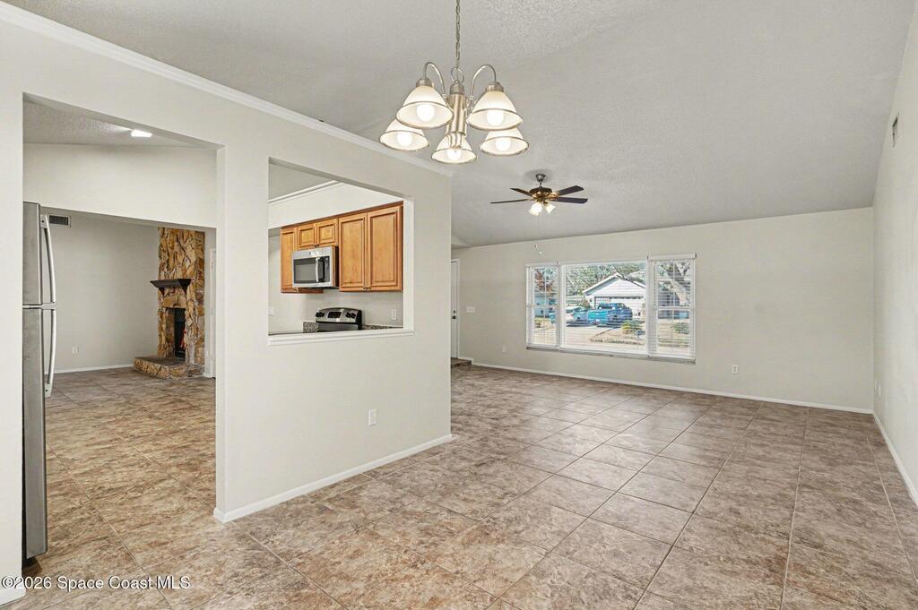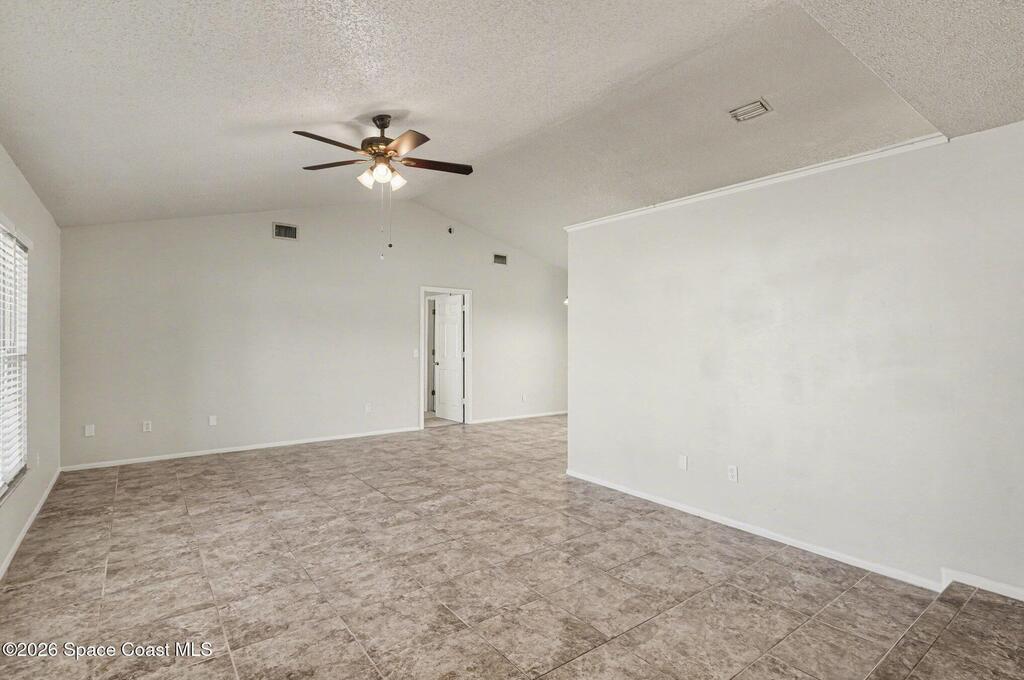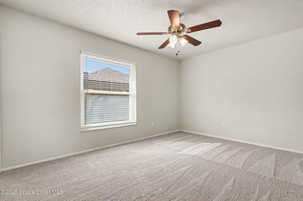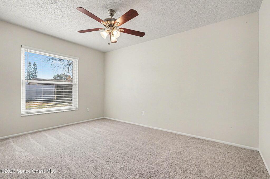 This 4-bedroom, 2-bath home with 2025 ROOF offers a functional split floor plan with multiple living and gathering spaces. Tile entry opens to a formal living area with a coat closet and flows into a formal dining room. The kitchen features granite countertops, stainless steel appliances, pantry storage, and opens to the family room with a stone-accent fireplace and mantle. Sliding doors and French doors lead to a screened lanai and fenced backyard, providing indoor/outdoor flow. The primary suite includes a walk-in closet and en-suite bath with walk-in shower and linen storage, while the guest bath offers a tub/shower combo with exterior lanai access. Additional features include a 2-car garage with opener, laundry hookups in the garage, Carrier HVAC , and water heater (2023). Conveniently located just minutes from I-95 and Hammock Landing Shopping Center for easy commuting and everyday essentials.
