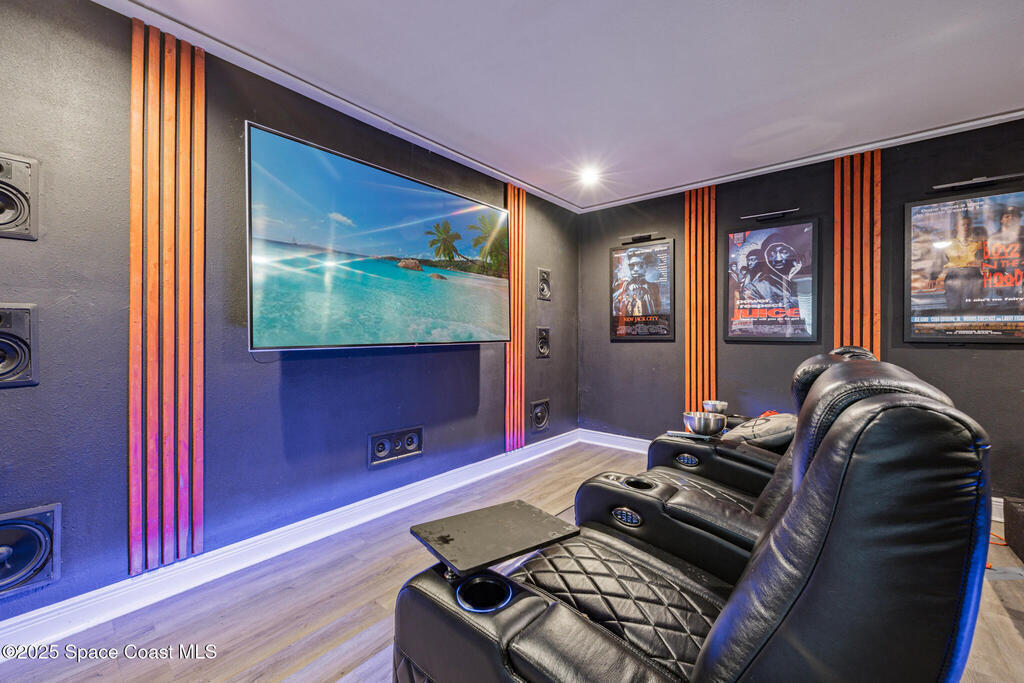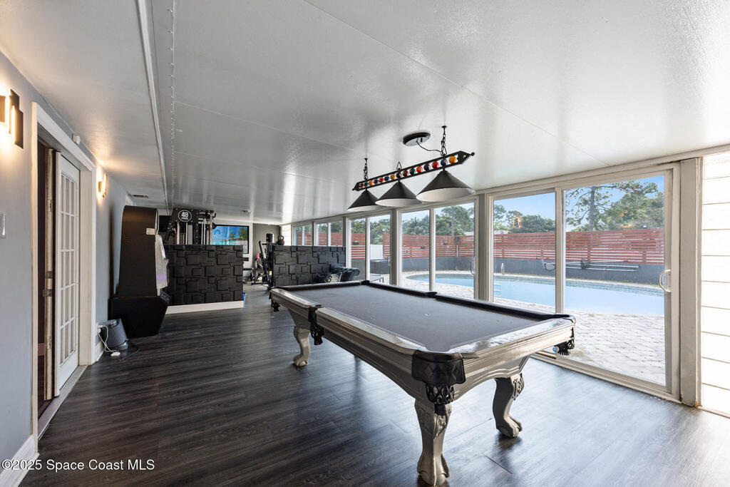 Spacious 3 Bedroom 2 Bath Centrally Located Palm Bay POOL Home on a Corner Lot! Vaulted Ceilings and Beautifully Updated Master Bedroom and Master Bath with Granite counter tops. Garage has been converted to a home theater and game room. Fenced back yard. Large Screened-in Pool and Entertaining Area with Outdoor Fireplace makes this the Perfect Home for Summertime Family Fun! Fine Florida Living Awaits!!
