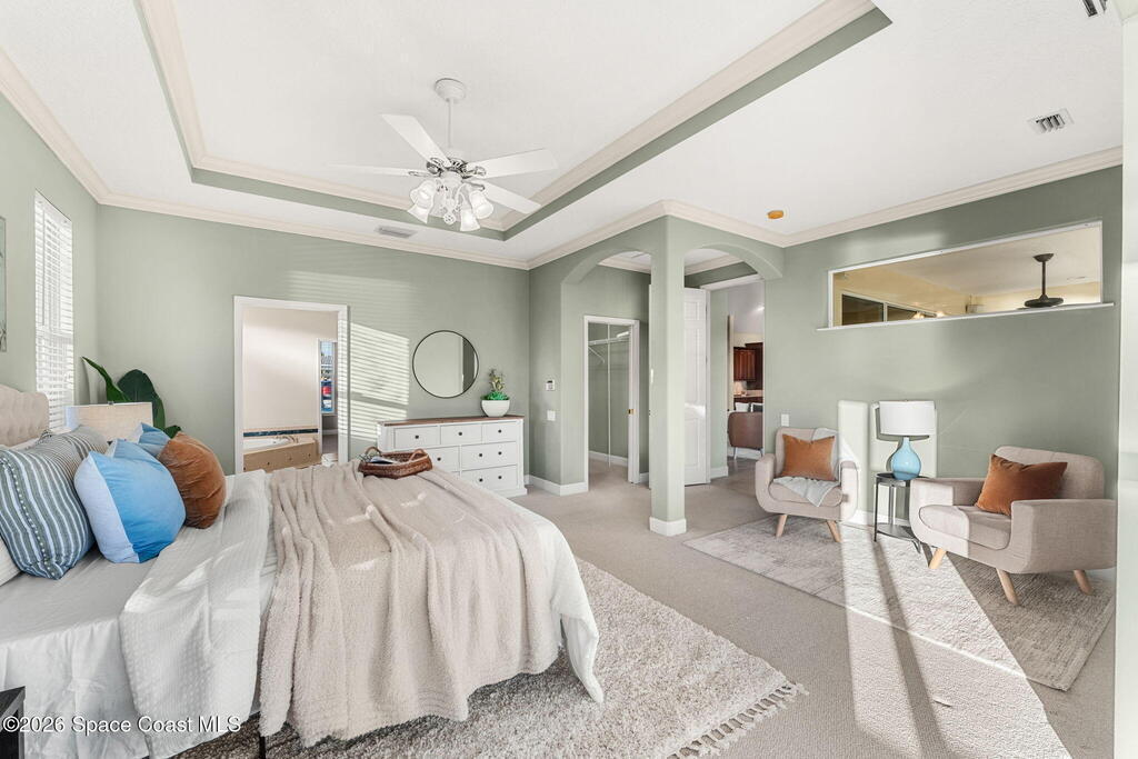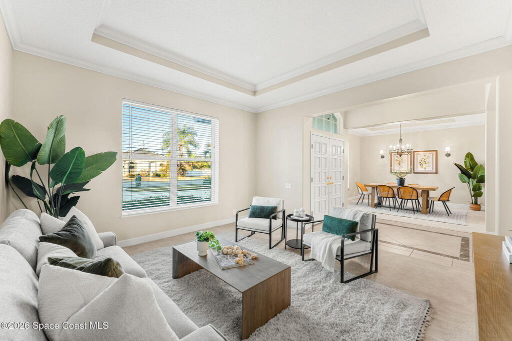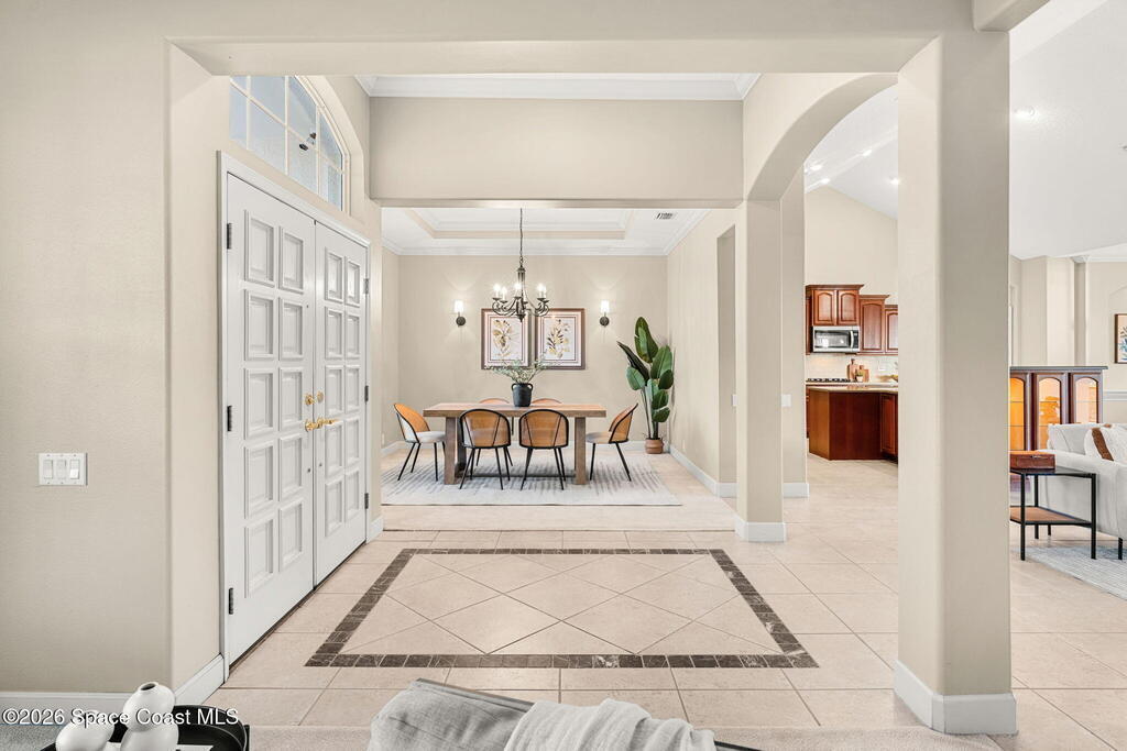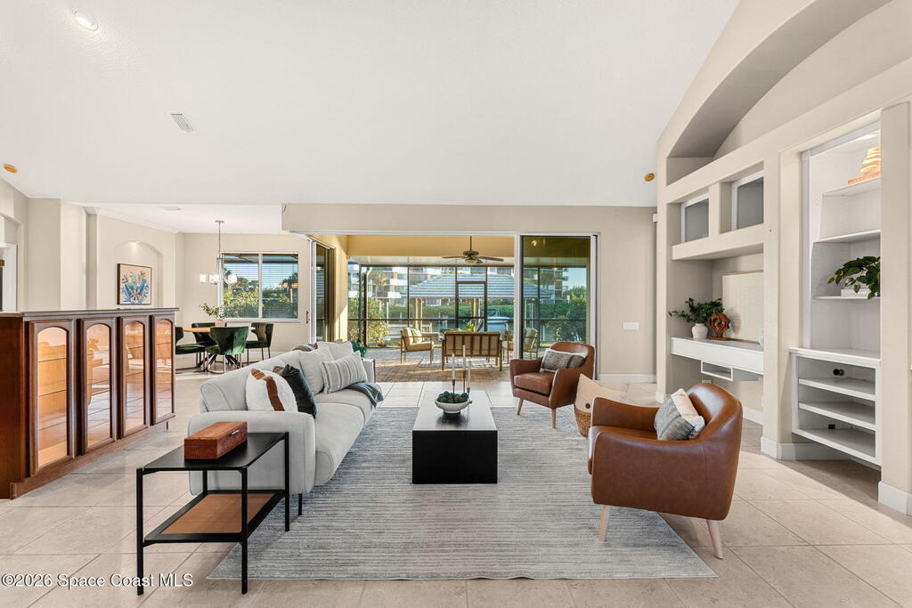 Coastal Living at its finest-where every day is a getaway! The FL Dream begins right in your backyard.. Step outside, hop on your boat or kayak, and enjoy effortless access to some of Florida's most sought after waterways. This Arthur Rutenberg architectural inspired design features open living spaces , vaulted ceilings, and indoor-outdoor flow. 1 of only 23 homes in exclusive Discovery Bay, you can enjoy the best rocket launch views right from your outdoor lanai, or hop in your boat or kayak and hit the Banana River..Jetty Park, Cocoa Beach Pier, Beaches, Dining and Drinking, and Shopping all within minutes.The chef's kitchen is a statement in refinement, featuring double ovens, custom cabinetry, and island perfect for prep and entertaining. The generous owners retreat features tray ceilings, en-suite bath with split vanities, spa tub, separate shower, Flex room and walk-in closet.Walk out your bedroom door, into the screened lanai for and watch the dolphins and manatees!