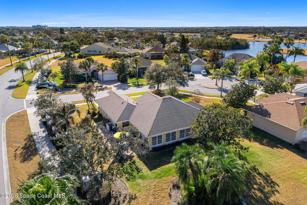 Beautiful 3BR/2BA home on a premium corner lot with water views in sought-after Viera East. Light and bright with abundant windows and tall ceilings. Spacious living and dining room combo opens to a large enclosed lanai with stunning lake and golf course views. Kitchen features a breakfast bar and a breakfast nook. Tile flooring throughout the main living areas. Generous primary suite with shower, tub, and 2 walk-in closets. Indoor laundry. Oversized garage has a separate golf cart entrance! Charming patio area perfect for outdoor dining and entertaining, complete with a gas outlet for a grill. Community amenities include a pool, a clubhouse, a fitness room, and a yummy on-site restaurant. Enjoy relaxed Florida living in this beautiful golf course setting!