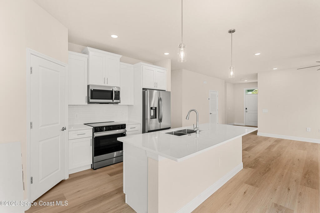 Ask us about our incentives, builder paid closing costs, & no down payment options when financing through the builder's preferred lender. This stunning new construction home exemplifies exceptional craftsmanship with soaring ceilings, a spacious open-concept great room, and a chef-inspired kitchen featuring all-wood shaker cabinets with crown molding, dovetail soft-close drawers and doors, quartz countertops, and a premium Samsung stainless-steel appliance package. Natural light fills the home through large windows and sliders leading to the covered lanai, complemented by luxury vinyl flooring throughout, tile in wet areas (no carpet!), and bathrooms with quartz-top vanities and fully tiled showers--no inserts. If you're searching for superior quality, thoughtful design, and unbeatable value, this is the home for you!