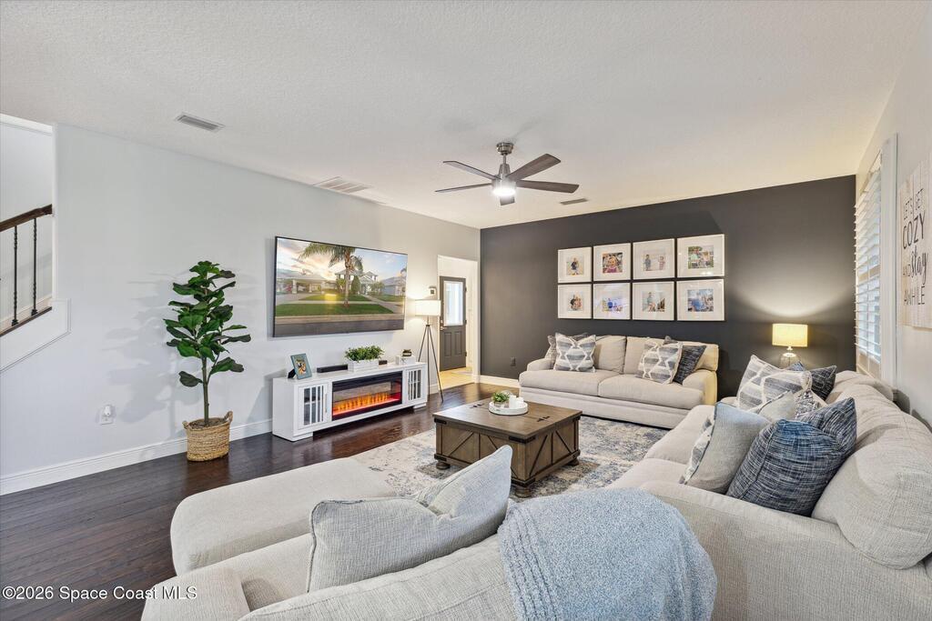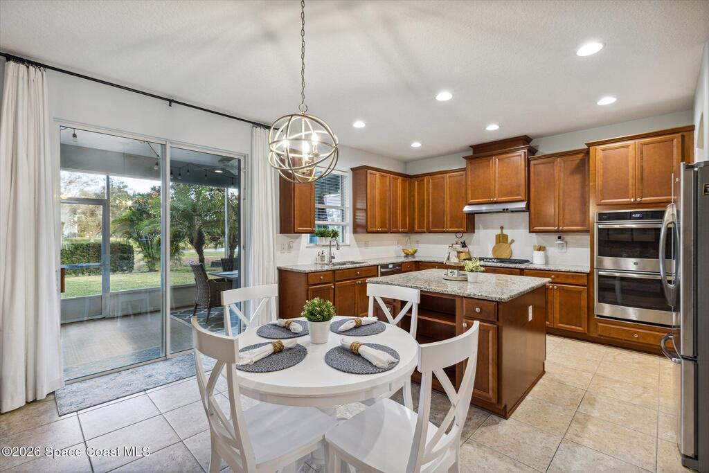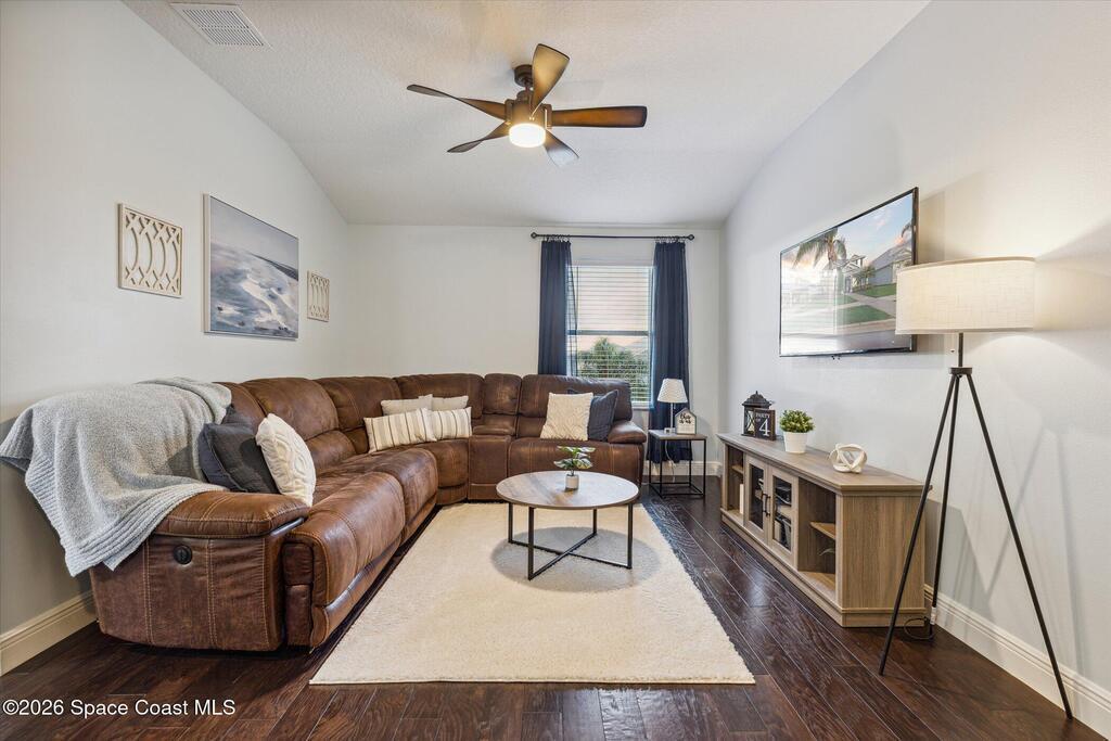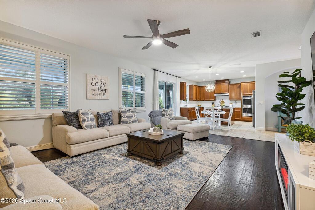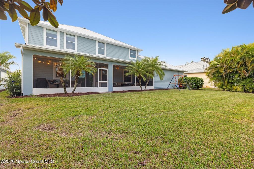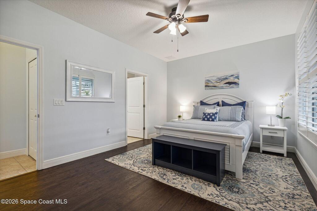 Welcome to luxury living in the gated Sawgrass Key community of Suntree/Viera. This move-in ready 4-bedroom, 5-bath home features a spacious open floor plan perfect for everyday living and entertaining. The gourmet kitchen includes double wall ovens, gas cooktop, 42-inch cabinetry, granite countertops, a butler's pantry, and a large walk-in pantry. Hand-scraped hardwood floors and fresh 2023 interior paint add warmth and modern appeal. Upstairs offers a generous bonus room and a luxurious primary suite with soaking tub, dual vanities, and separate shower. Each bedroom features its own full bath. Enjoy a 10x40 trussed lanai with no rear neighbors, a 40-year metal roof, oversized 2-car garage, porte cochere, paver driveway, and maintenance-free HOA living. Tenant occupied until June 15,2026.