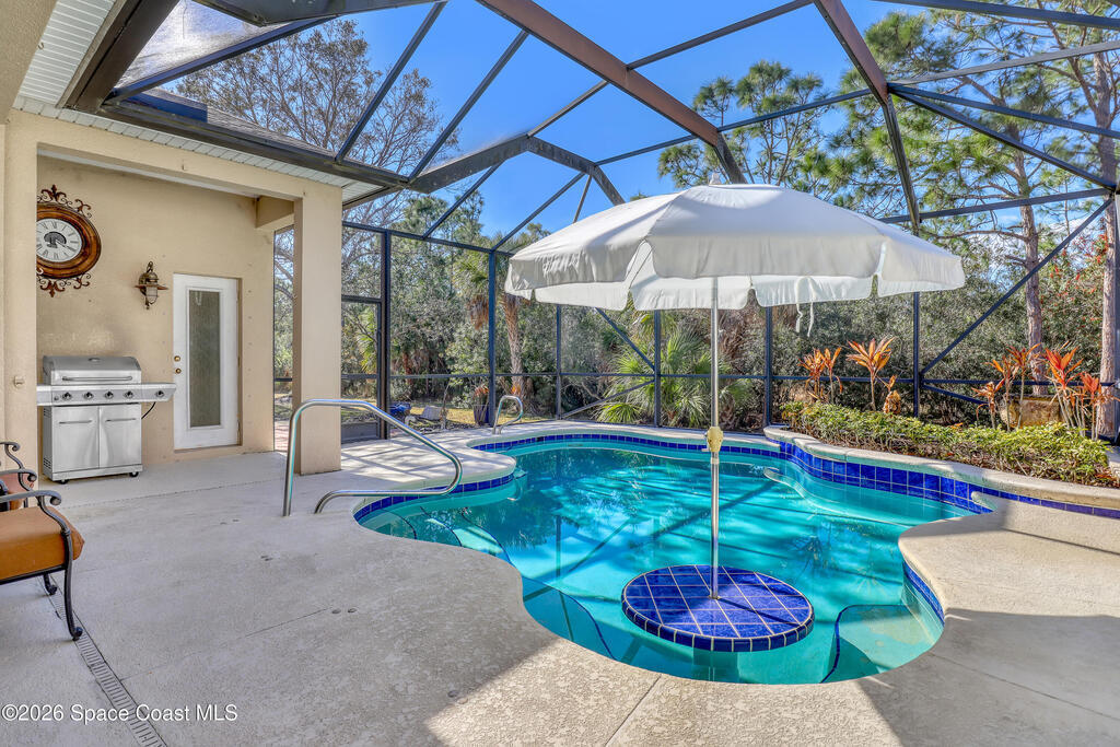 Beautiful 4/3/3 located in GATED Forest Glen community. Screened heated pool w/waterfall & bench/table combo. Very private back yard with nobody behind you ever! Amazing gourmet island kitchen w/42in custom cabinets, tumbled marble backsplash, quality stainless appliances, & solid surface countertops. Brand new roof in 2023. Great floor plan w/10ft ceilings throughout. Primary bedroom has double walk-in closets, jacuzzi tub/separate shower, & double vanities. Reverse osmosis water treatment system. Hurricane shutters. Brick paver driveway. All furniture is negotiable. Pride of ownership everywhere you look. Endless amenities in this neighborhood! This home is barely lived in. Won't last at this price!