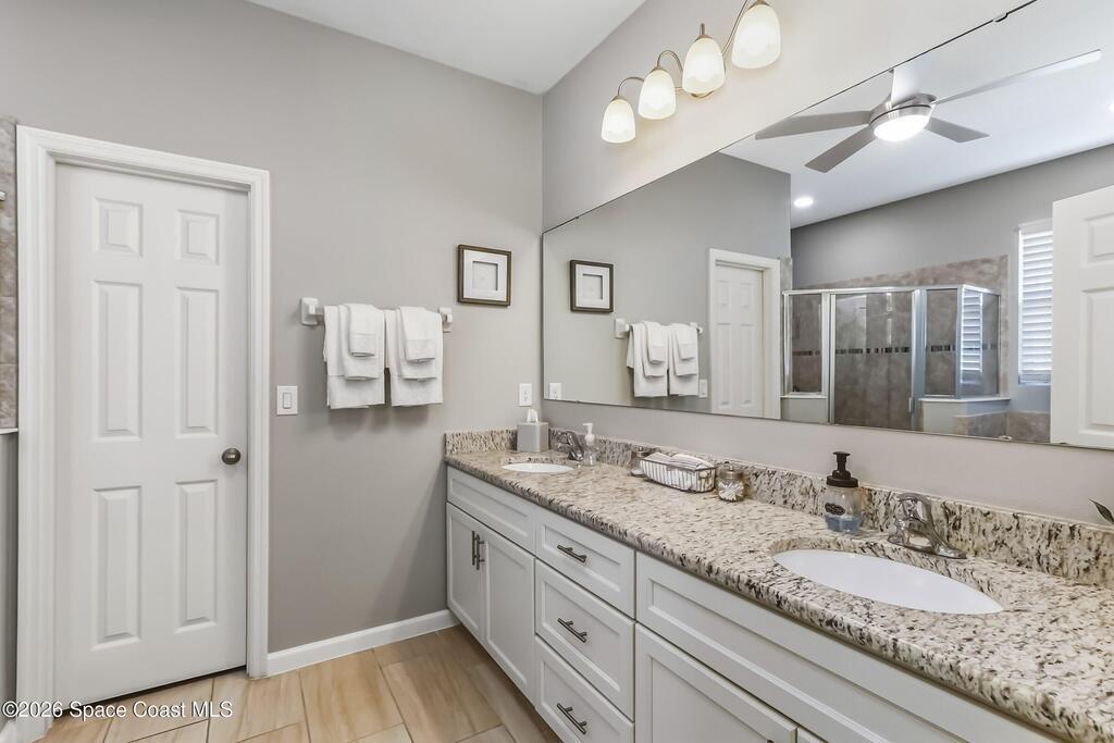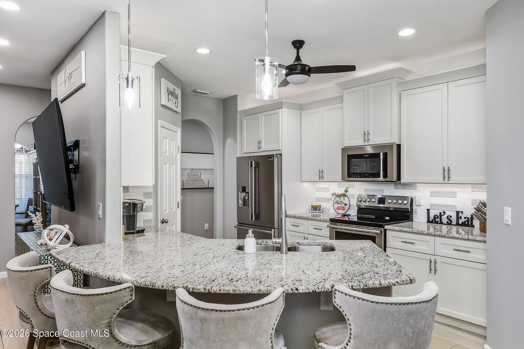 - Interior FeaturesBreakfast Bar, Ceiling Fan(s), His and Hers Closets, Open Floorplan, Pantry, Primary Bathroom -Tub with Separate Shower, Split Bedrooms and Walk-In Closet(s)
