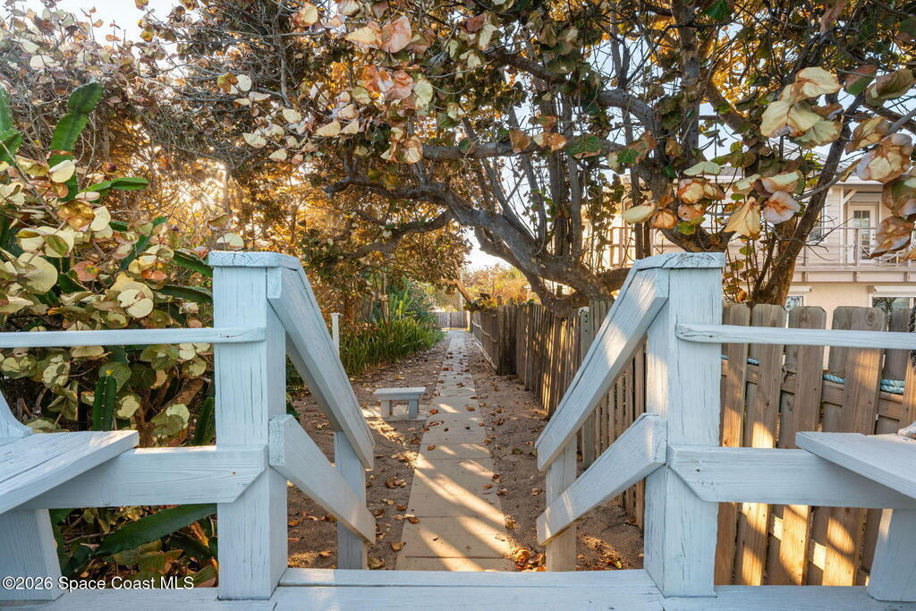 Morning light pours through vaulted ceilings into a soaring great room that spills effortlessly into a private courtyard entry--the seller's favorite place to unwind after salty beach walks and sunset bike rides. Just moments from deeded ocean access, every day begins and ends with the rhythm of the waves. Granite countertops anchor an open kitchen designed for easy gatherings, while new luxury vinyl plank and tile flooring keep life carefree and sand-friendly, while closet built ins keep things organized. A statement wall primary suite with an updated en-suite with stone shower flooring and oversized vanity round out the home. Tucked on a quiet cul-de-sac in Melbourne Beach, this half-duplex townhome delivers the best of coastal living without the fuss--updated with a 2022 A/C, 2023 water heater, second refrigerator in the garage and generator for peace of mind--so you can spend less time maintaining and more time embracing everything that makes beach life unforgettable.