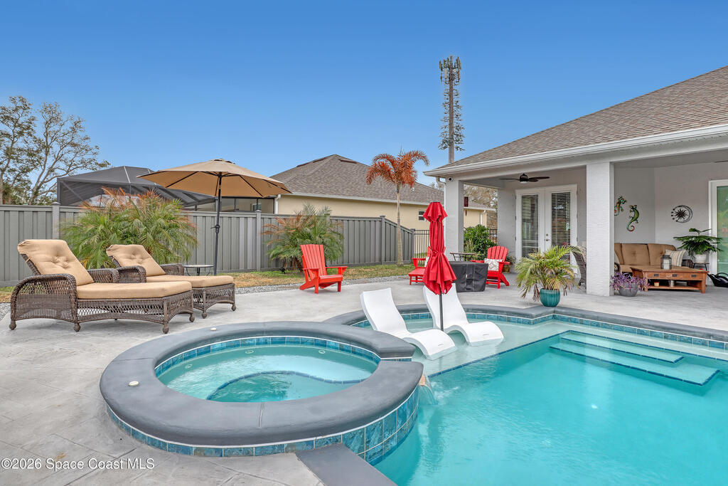 What a unique opportunity to own a nearly BRAND NEW pool on almost an acre with city water & sewer! No expensed spared in this custom built masterpiece. $120,000 pool package! Tropical heated pool w/built-in hot tub spa & waterfall. Also has nice beach area & umbrella & chairs stay! Stamped concrete decking everywhere. 20x10 man cave building behind pool & it's all completely fenced w/Trek fencing! The property is huge beyond the pool w/nobody behind you. One of a kind backyard setting. Must see. Incredible island kitchen w/42' shaker cabinets w/crown, stone tile backsplash, high quality appliances & quartz countertops. Perfect floor plan w/10ft ceilings throughout. Luxurious primary suite w/huge walk-in shower w/dual heads, double walk-in closets & dual vanities. 8ft doors throughout. Security system w/3 cameras. The list of extras goes on and on. Super convenient location close to everything. Special home, pool & property that you won't find anywhere else at this price! Don't wait.