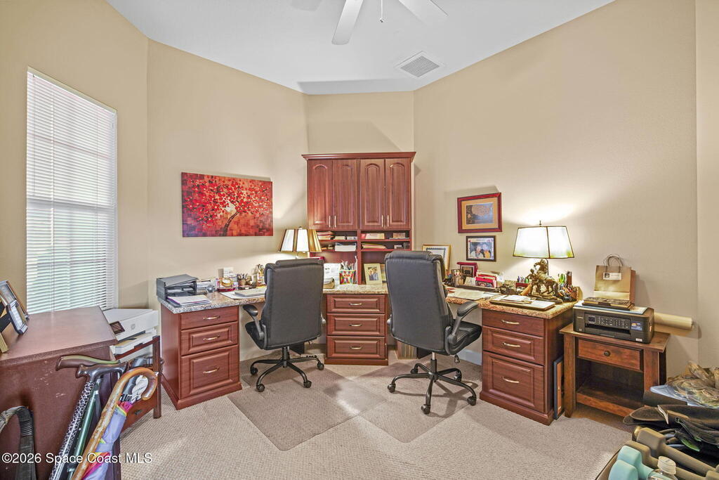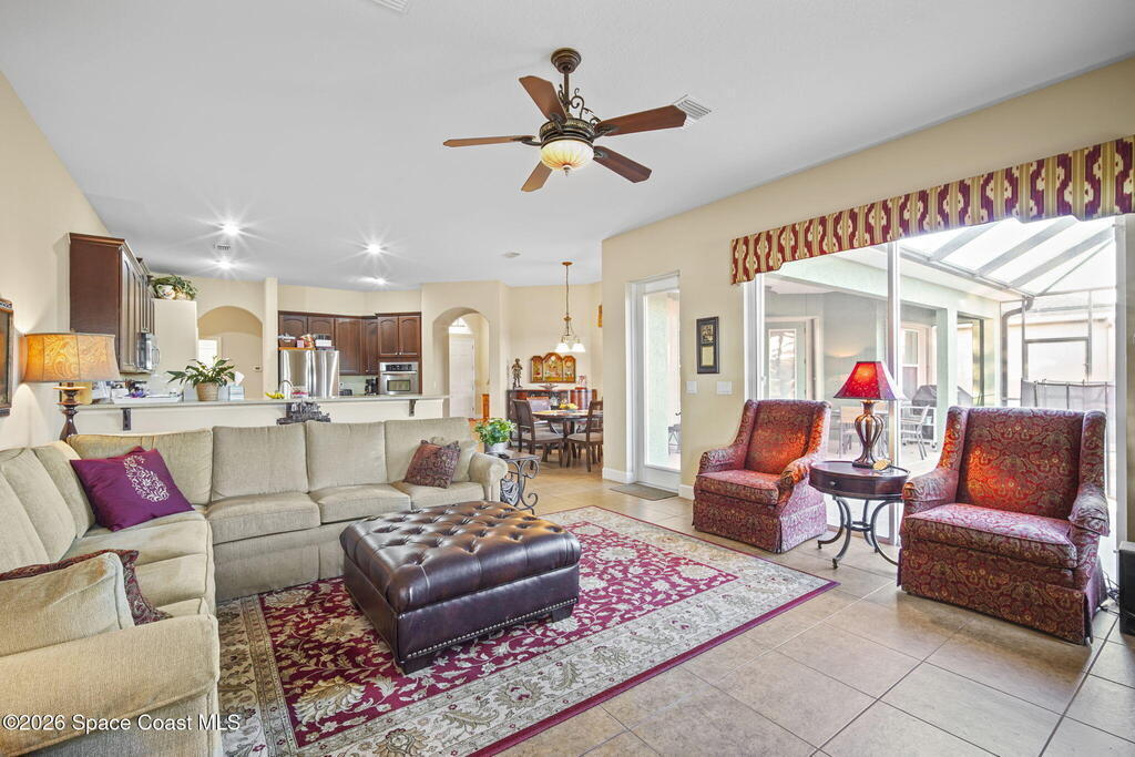 Located in desirable Viera West, just around the corner from shopping and dining and minutes to Kennedy Space Center, the beaches, and Orlando.Upgrades and Features Include: New Roof installed in 2026-Home expanded with an additional 2 feet added to the rear-Tile flooring throughout the home except bedrooms-Custom built-ins-Wood-burning fireplace with new firebox-Kitchen equipped with double oven-All appliances included-Glass block accents in primary bathroom-french doors in master leading to pool-New duct work-Radiant barrier in attic for energy efficiency-Private pool area with new pool fence-New heater for hot tub-Accordion storm shutters-Garage fully outfitted for added function and storage-One television included-Window treatments included.Well-maintained home offering energy-efficient updates, and move-in ready convenience in one of Brevard County's most sought-after communities.