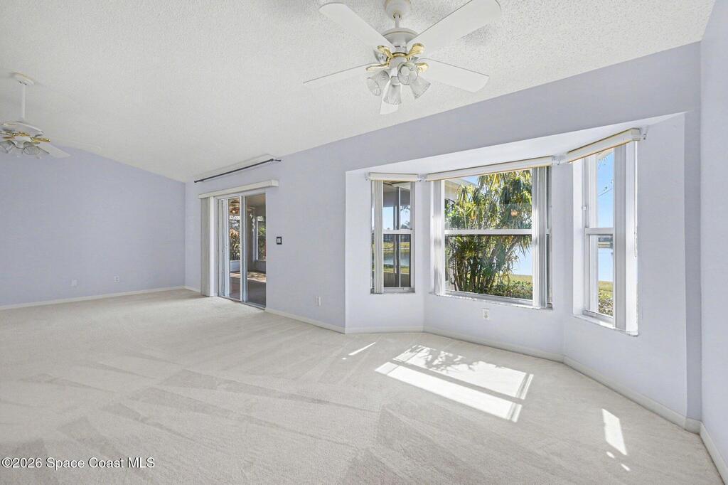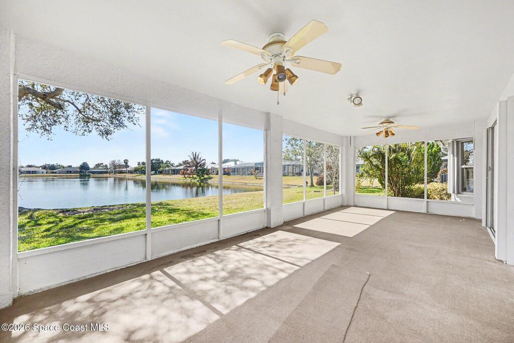 This immaculate lakefront 3-bedroom, 2-bathroom home in central West Melbourne features an open-concept layout with soaring cathedral ceilings and abundant natural light. The property includes durable accordion hurricane shutters for security and a new roof installed in 2023, offering a blend of comfort, style, and peace of mind.