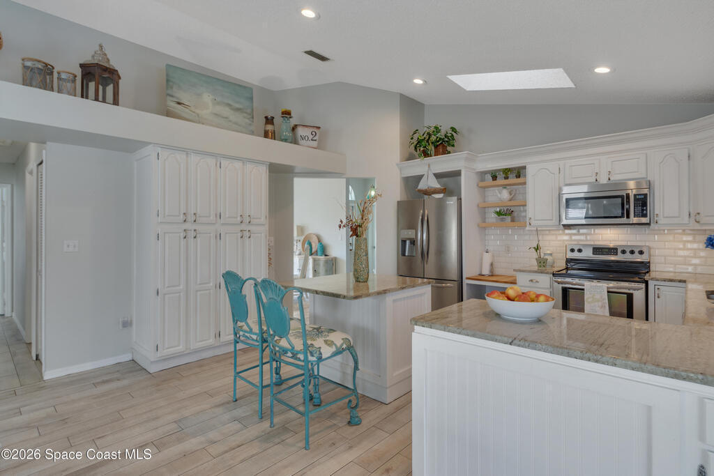 - Interior FeaturesCeiling Fan(s), Kitchen Island, Pantry, Skylight(s), Split Bedrooms, Vaulted Ceiling(s) and Walk-In Closet(s)