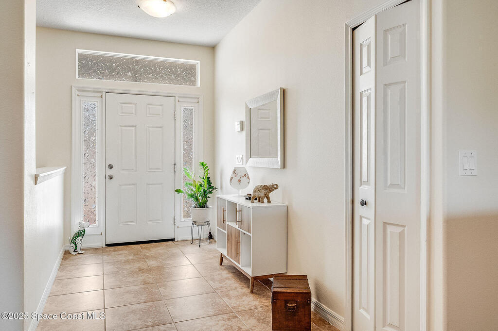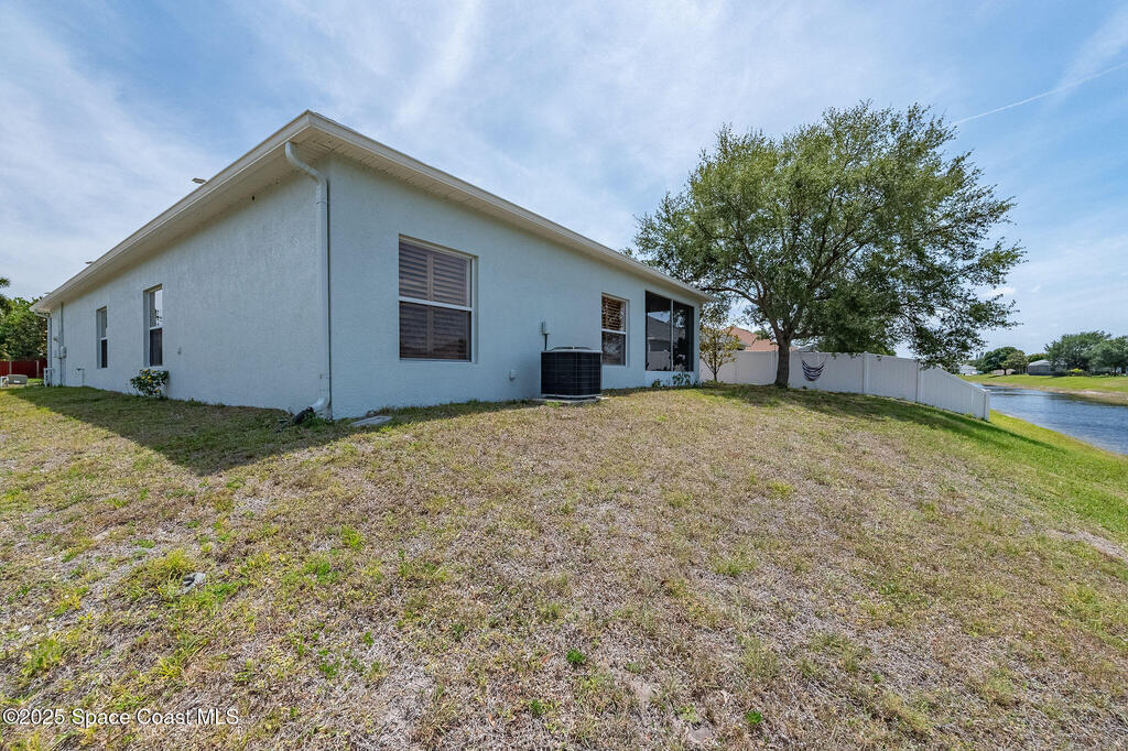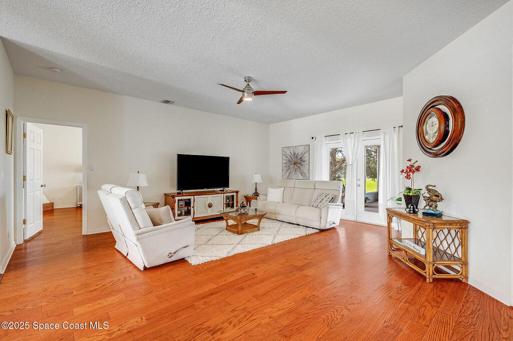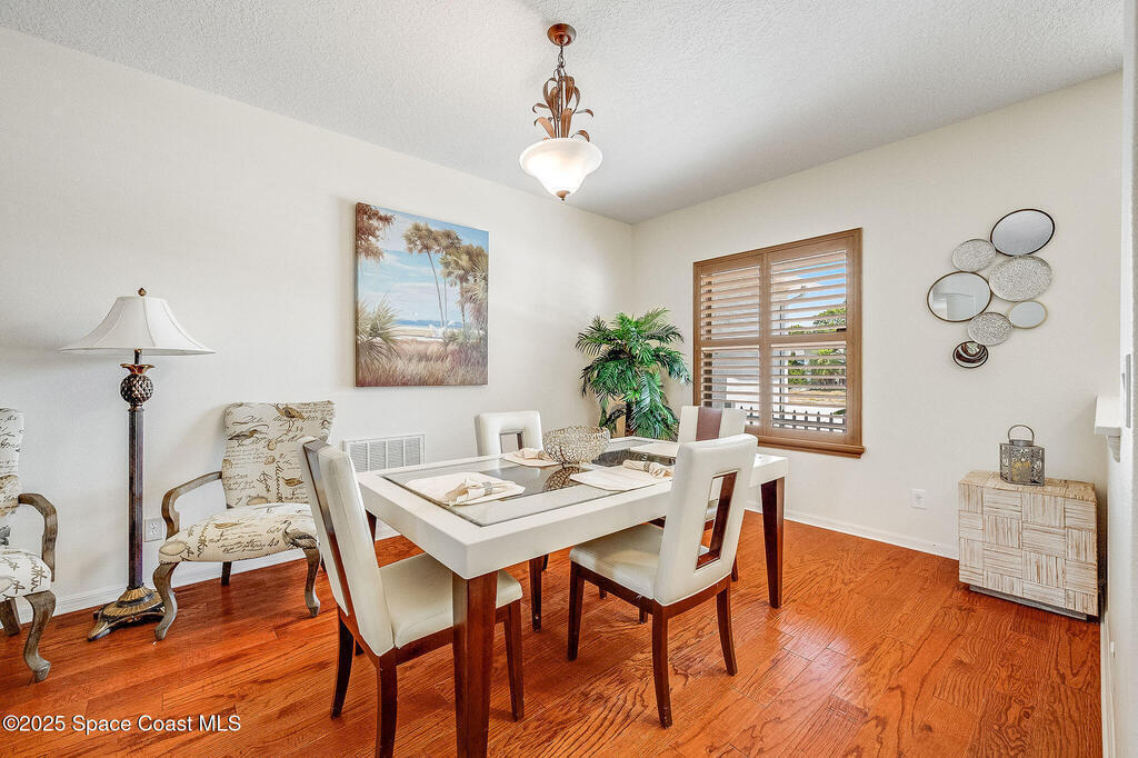 Fall in love with this impeccably clean and spacious corner-lot home offering over 2,300 sq ft, city water/sewer, and serene water view and just minutes from I-95, shopping, and dining. Inside, you'll find hardwood floors, oversized tile, and elegant plantation shutters throughout. The thoughtful floor plan includes a massive primary suite with double sinks, a soaking tub, walk-in shower, and large walk-in closet. Enjoy two living areas, a formal dining space, kitchen nook, and a generously sized kitchen--perfect for entertaining or everyday life. Step outside to an oversized screened porch ideal for relaxing or gatherings. Feel secure with concrete block construction, a brand-new 2024 roof, Exterior Paint 2024, new 2024 HVAC system, storm panels, and a newer water heater. Comfort, style, and space--all in one! Furnishings Negotiable! Minutes from I-95, shopping, groceries, beaches and major employers!!