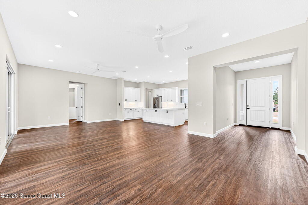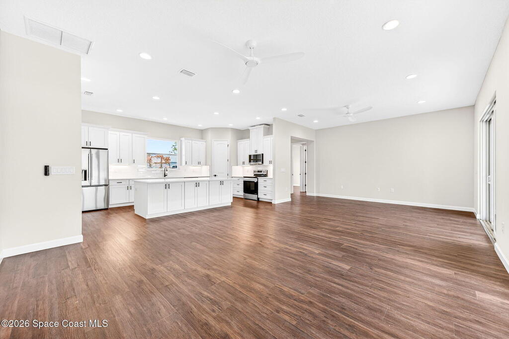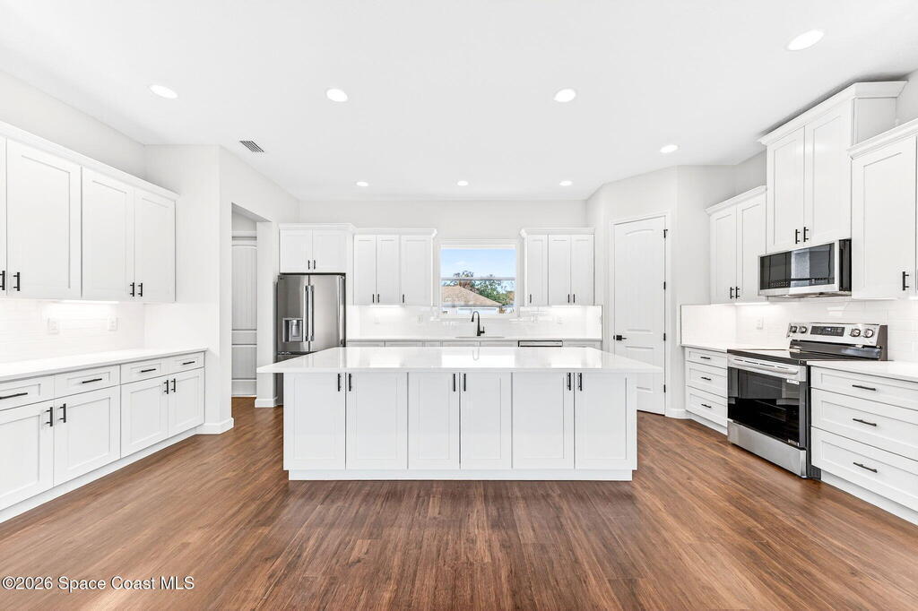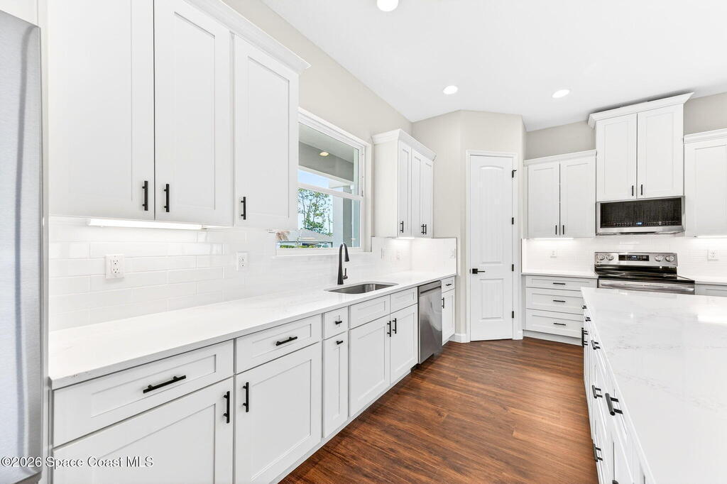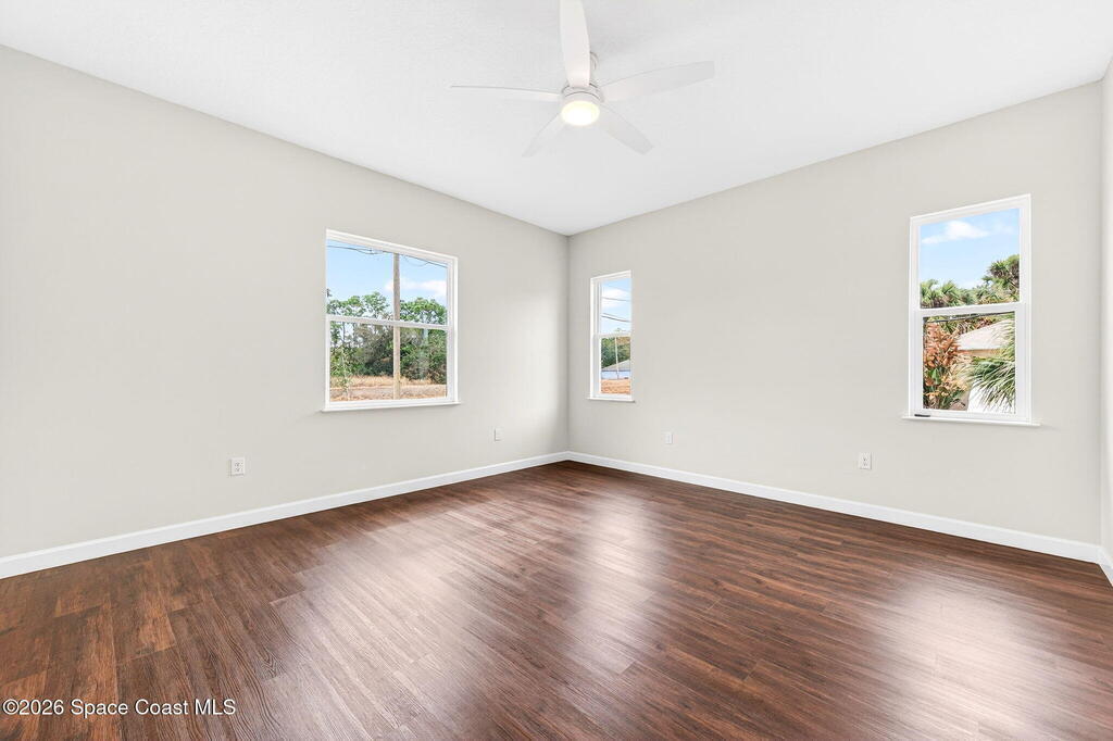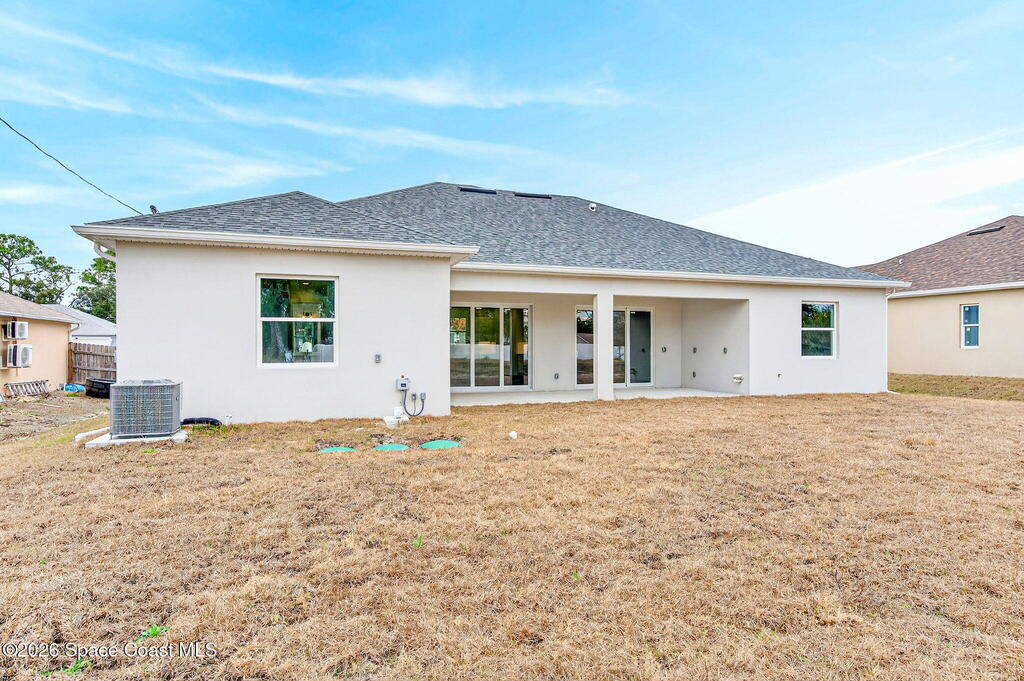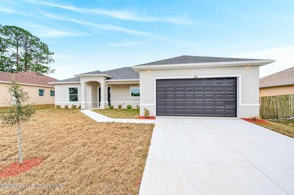 This Is The One. Located In Popular Southeast Palm Bay Is This New Construction Never Lived In 4 Bedroom 2 1/2 Bath 2 Car Garage Concrete Block City Water Canal Front Home. Owner Pride Shows Thru With Attention To Every Detail. Abundant Upgrades Include: Impact Rated Doors & Windows, Soaring Ceilings, Luxury Vinyl Plank Flooring, Ceramic Tile Showers & Floors, Custom Lighting Package Which Includes Ceiling Fans In Every Room, Double Glass Sliding Doors, Recessed Can Lights, Garage Door Opener And Rain Gutters. The Gourmet Inspired Kitchen Features Stainless Steel Appliance Package, Vented Microwave, 42'' Cabinetry With Soft Close, Crown Molding, Undercabinet Lighting, Single Tub Sink, Tile Backsplash And Oversized Quartz Island, Master Bathroom Boasts Double Sinks, Separate Soaking Tub, Walk In Glass Shower & Private Water Closet. The Large Master Suite Has His / Hers Closet With A Door Leading To The Trussed Covered 33 x 10 Lanai Overlooking The Freshley Sodded Lawn And Canal.
