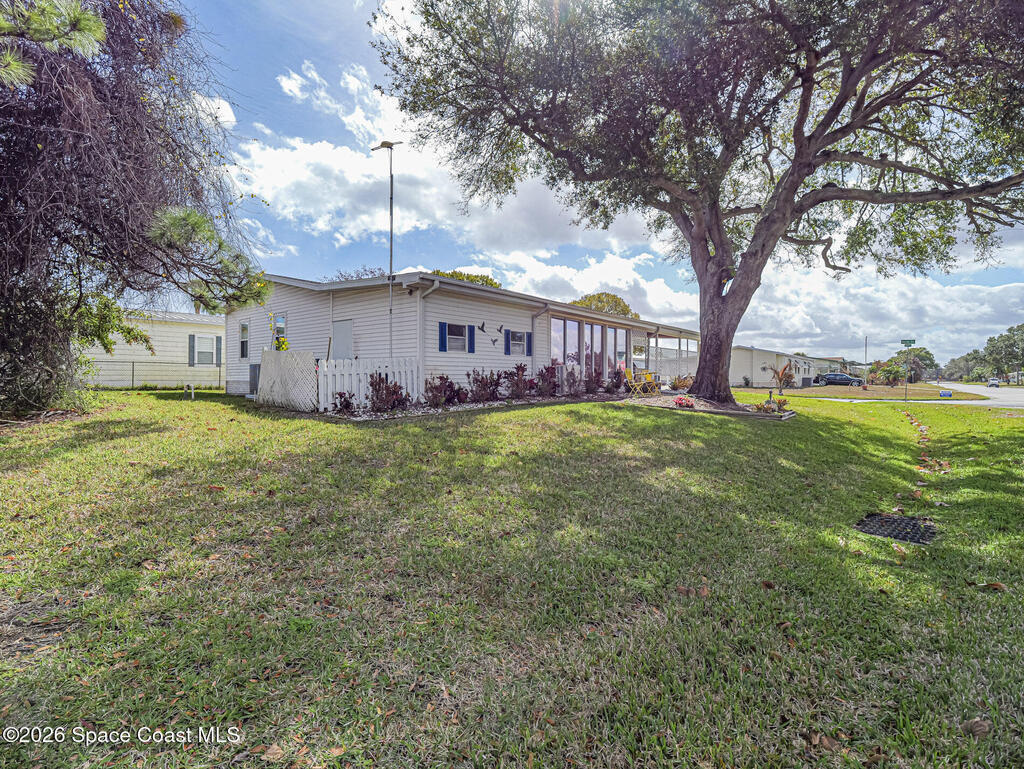 Clean! Freshly updated w/ paint, LVP floors, New Appliances, New AC, Ceiling fans. Oak floors =timeless style. Dine in kitchen, plua dining room. LR features HIGH ceilings, 2 bonus rooms. Primary w seperate vanity area, step in shower. Corner lot for added space, carport w extra parking. Roof i2016. This feels like your full time home or perfect winter get away. Dynamic community w pickleball, golf, tennis, clubhouse great live bands, clubs for every interest or enjoy the natural beauty of a fishing dock on the IR river & a private Beach Access minutes away. Not Granny's Place-Light, bright and move in ready. $972 paid annually in RE taxes. one time app fee of $1555 due at closing.