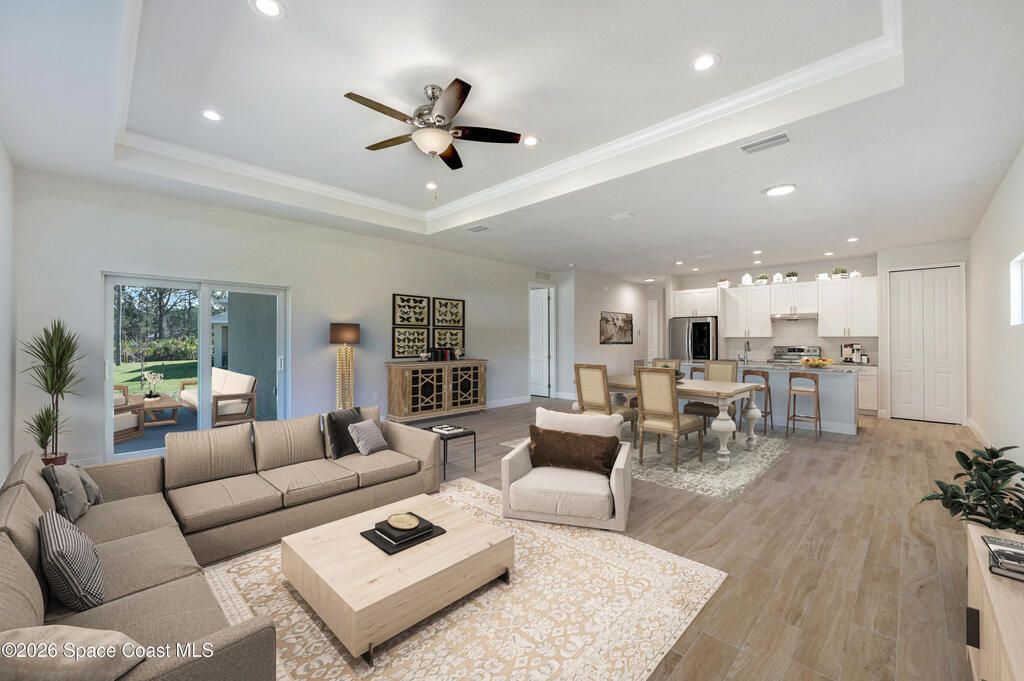 Step into quality, comfort, and style with this beautifully crafted new construction home, designed with upgrades that set it apart from the average build. Scheduled for completion by the end of May 2026, this 4-bedroom, 2-bathroom residence offers the perfect blend of modern design and thoughtful functionality. Act early and you may even have the opportunity to select some of your own colors and finishes, adding a personal touch before completion.From the moment you enter, you'll notice the spacious feel created by soaring 9'4'' ceilings, enhanced by elegant tray ceilings in both the living room and the expansive master suite. The main living areas feature stunning porcelain wood-look tile throughout, combining durability with the warmth and beauty of natural wood.The kitchen is designed to impress with crisp white cabinetry, soft-close drawers and doors, and beautiful granite countertops that continue into both bathrooms for a cohesive, upscale finish.