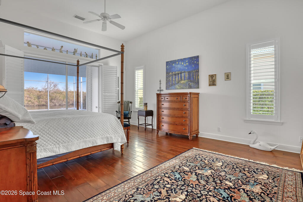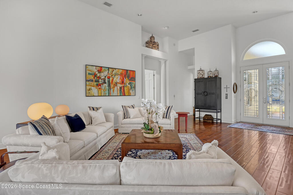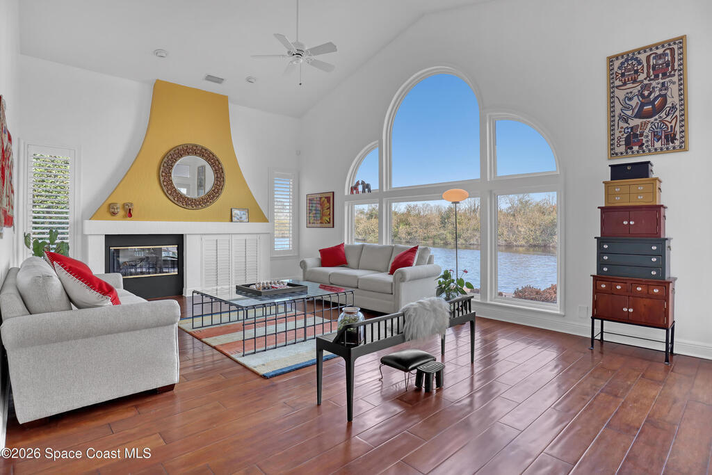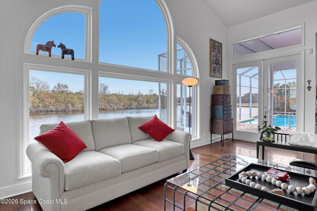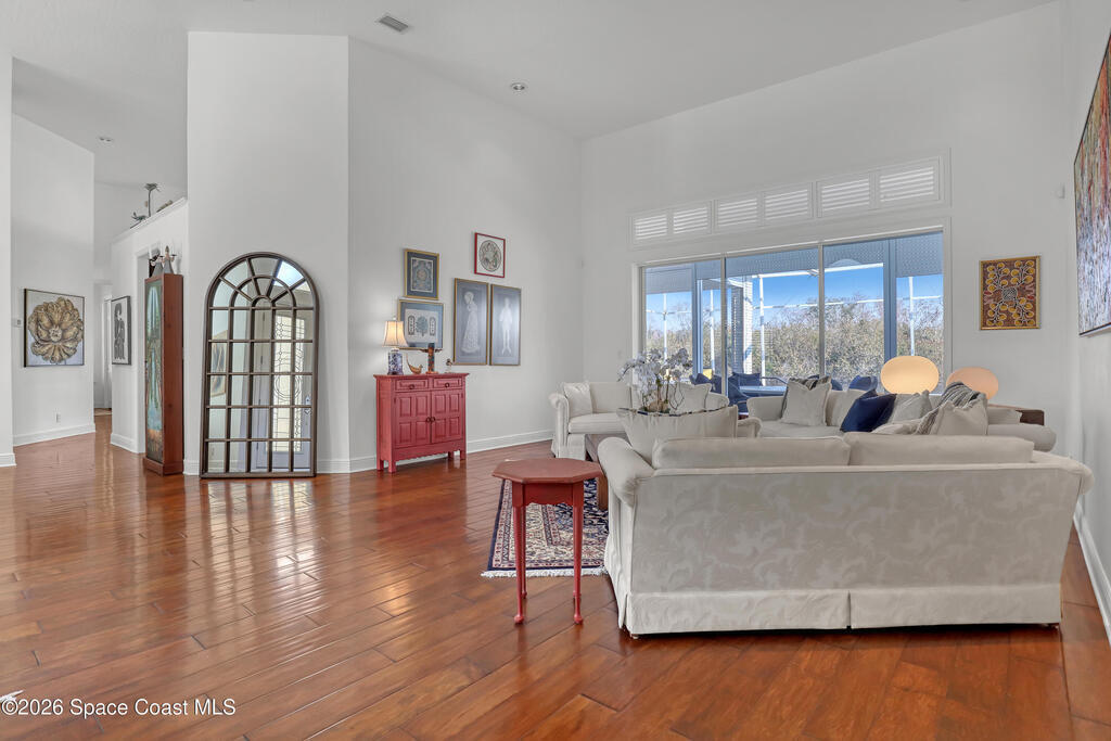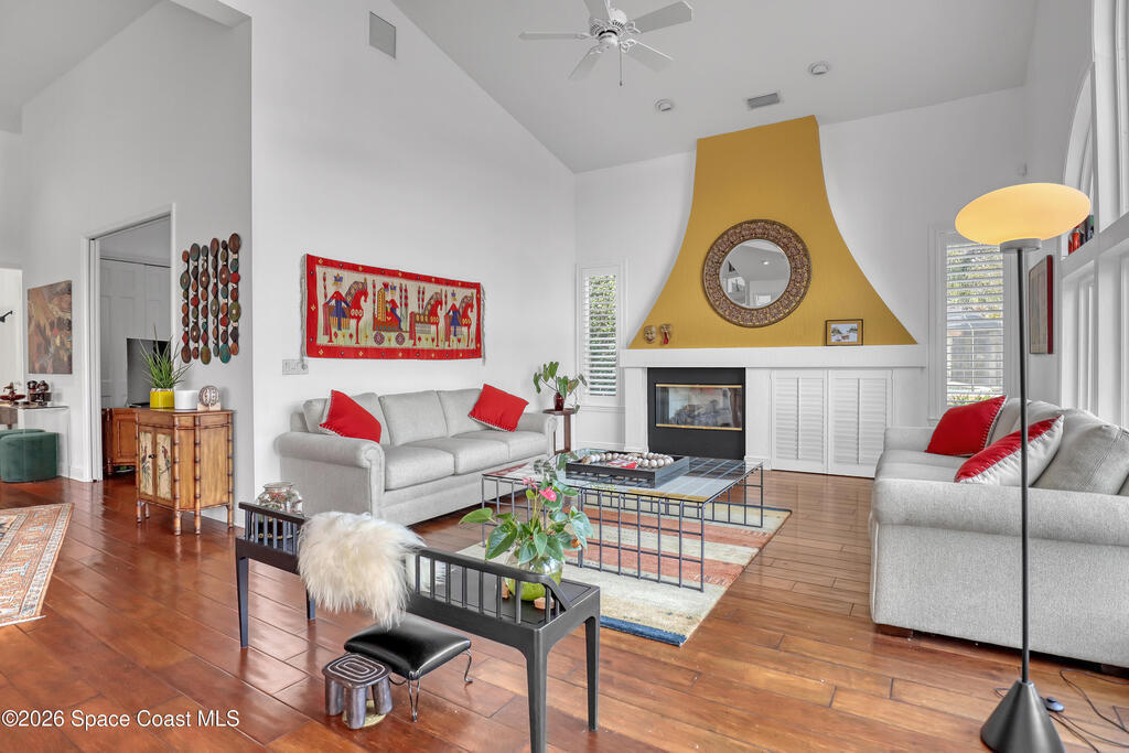 MULTIPLE OFFERS IN Enjoy stunning lake and golf fairway views from this spacious 4BR/4BA home in The Fairways of Suntree. Soaring 10'+ vaulted ceilings and beautiful wood floors create a bright, open feel with formal living and dining rooms plus a family room with gas fireplace overlooking the water. The large eat-in kitchen features an island and double ovens--perfect for entertaining. Relax on the screened porch or in the resort-style infinity pool with no rear neighbors and a private full pool bath. The owner's suite offers a luxury bath and his/her walk-in closets. Extras include built-in vacuum, gas dryer, oversized laundry, plantation shutters, impact windows, roll-down storm shutters, BRAND NEW ROOF, and 2-car garage with golf cart bay. ONE OWNER!
