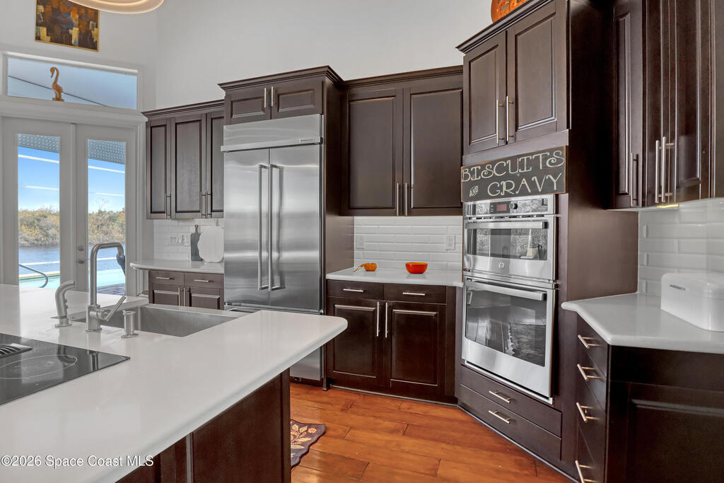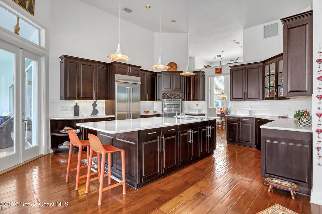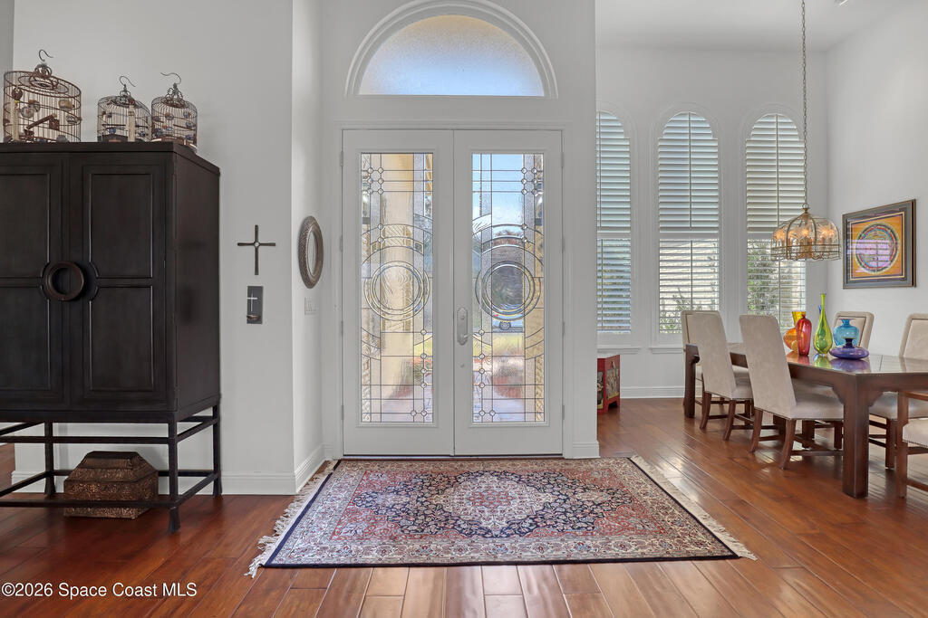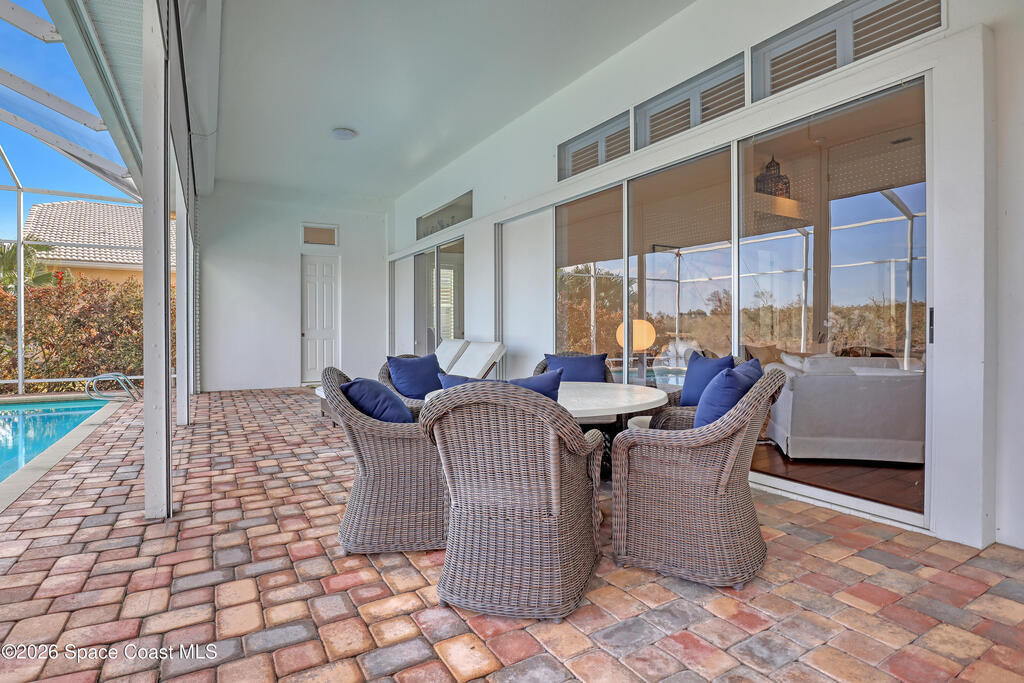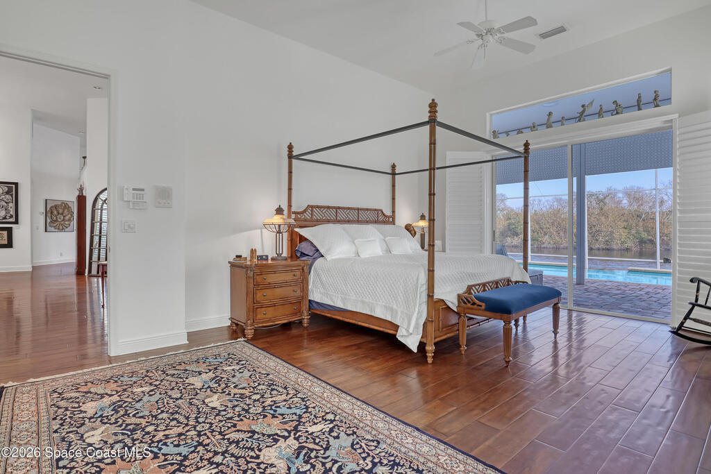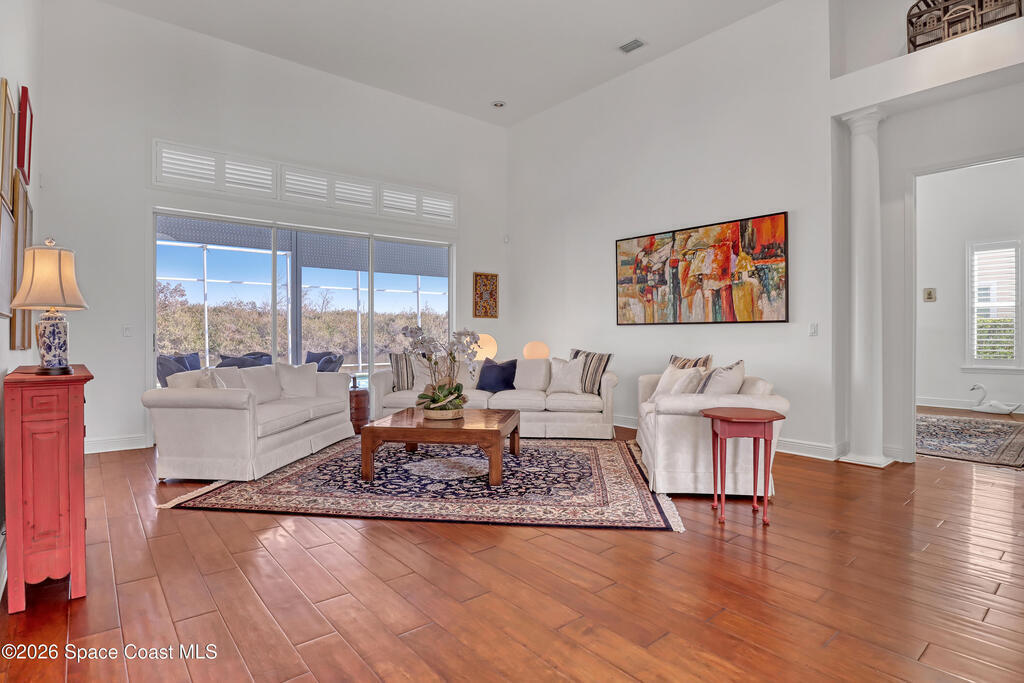 MULTIPLE OFFERS IN Enjoy stunning lake and golf fairway views from this spacious 4BR/4BA home in The Fairways of Suntree. Soaring 10'+ vaulted ceilings and beautiful wood floors create a bright, open feel with formal living and dining rooms plus a family room with gas fireplace overlooking the water. The large eat-in kitchen features an island and double ovens--perfect for entertaining. Relax on the screened porch or in the resort-style infinity pool with no rear neighbors and a private full pool bath. The owner's suite offers a luxury bath and his/her walk-in closets. Extras include built-in vacuum, gas dryer, oversized laundry, plantation shutters, impact windows, roll-down storm shutters, BRAND NEW ROOF, and 2-car garage with golf cart bay. ONE OWNER!
