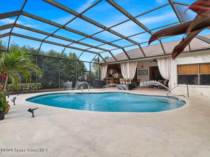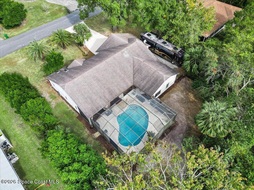 3 Bed / 2 Bath / 3 Car garage / Pool / .54 Acres with a NEW Roof, NEW HVAC, NEW Drain field & a NEW Pool pump. Discover the Potential in this split floor plan home, perfectly situated on a quiet no-through-traffic street. Built with solid concrete block construction, this property offers a fantastic opportunity for buyers ready to add their personal touch and build instant equity. A bright foyer welcomes you inside with sightlines straight through to the pool area, creating an open and inviting feel. The functional layout provides easy flow for everyday living and entertaining. Step outside to an oversized screened lanai overlooking a fully fenced, tree-lined backyard--an ideal foundation for your own private outdoor retreat. The pool and tiki bar make it easy to enjoy Florida living year-round. Need space for vehicles, toys, or tools? The three-car garage delivers ample storage, while the 45' motorhome parking with 50-amp service is a rare and valuable bonus.