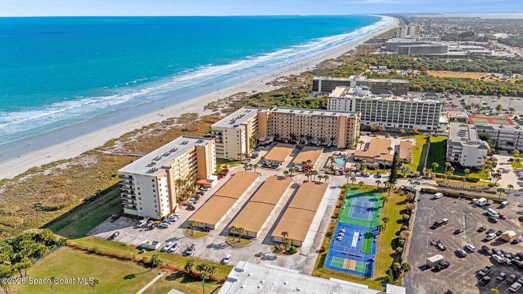 Experience true OCEANFRONT living in this meticulously maintained 2 bedroom, 2 bathroom condo in Cocoa Beach! Featuring an open-concept living area that seamlessly blends kitchen, dining, & living-making it perfect for entertaining. Enjoy ocean views from your private balcony, accessible from both the living room & the spacious primary suite, complete with a walk-in closet. In-unit washer & dryer. Private beach access with a rinse station makes every beach day effortless. Community amenities feature heated pool/hot tub, fitness center, tennis/pickleball courts, car wash station, EV charging station, elevator & stair access. A shared garage adds valuable storage and parking. Conveniently located near local shopping, dining, & entertainment.Perfect as a full-time residence, vacation home, or investment property(2 month minimum rental)! Offered fully furnished. Don't miss your chance to own a piece of paradise!