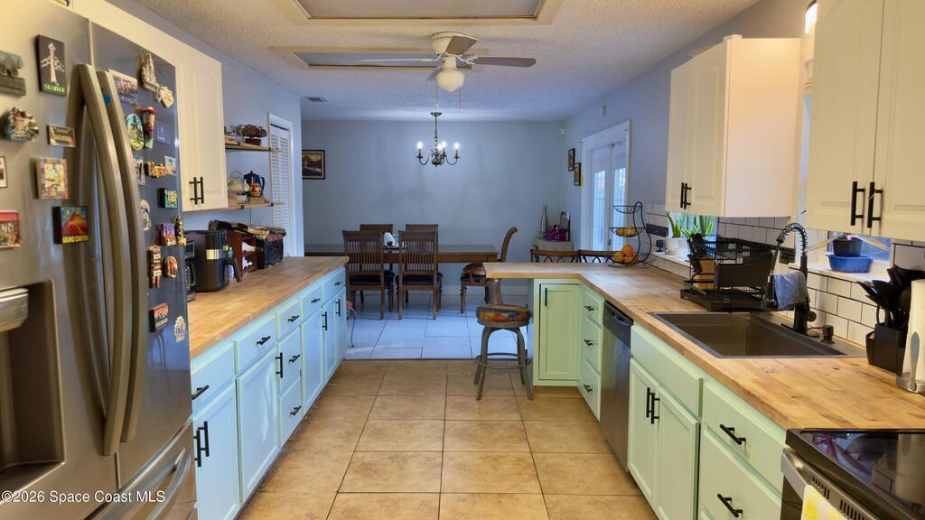At 6310 Depot Ave in Cocoa this charming home features a partially renovated kitchen with beautiful butcher block countertops, freshly updated cabinetry, and stainless steel appliances that give the space a modern yet warm feel. The layout offers generous counter space and flows seamlessly into the dining area, making it perfect for everyday living and entertaining. Step outside to a spacious, fenced backyard with plenty of room to host gatherings, garden, or create your own outdoor oasis. The large yard offers privacy and endless possibilities.The inviting curb appeal showcases updated exterior accents and a welcoming front entry. Conveniently located within walking distance to a nearby park, this home offers both comfort and lifestyle appeal. With its functional layout, stylish kitchen upgrades, and expansive outdoor space, this property is full of potential and ready for its next owner.