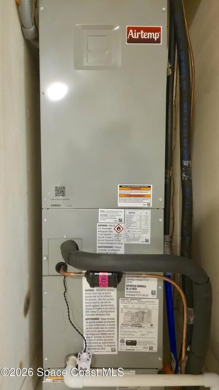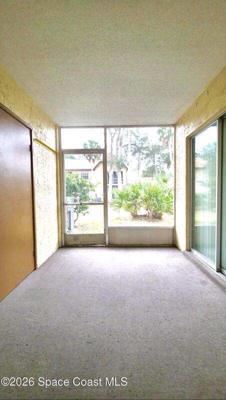 First floor, 2 bedroom, 1 bath condo offers the perfect blend of convenience and peace of mind. Featuring BRAND NEW A/C (with 10yr Warranty), New Roof (2023), New Plumbing and Water Heater (2022). This Residence was completely renovated in 2018 and showcases a stunning kitchen with all new cabinetry and appliances. There are tile floors and stylish Levolor Vertical Blinds throughout the unit. The dedicated laundry room includes a Maytag HE Washer and Dryer. The freshly screened back porch offers quiet privacy and easy access to the shuffleboard court and picnic area. The monthly maintenance fee of $295 includes Pool Access and Pool maintenance, On-Site Management, lawn maintenance, building maintenance, Ext. pest control, garbage pick up as well as Cable and Internet service. Prime Location! View rocket launches from your front porch or walk to the new Titus Landing mall. Close to the Beaches, Kennedy Space Center, Orlando, Disney, Universal plus so much more!