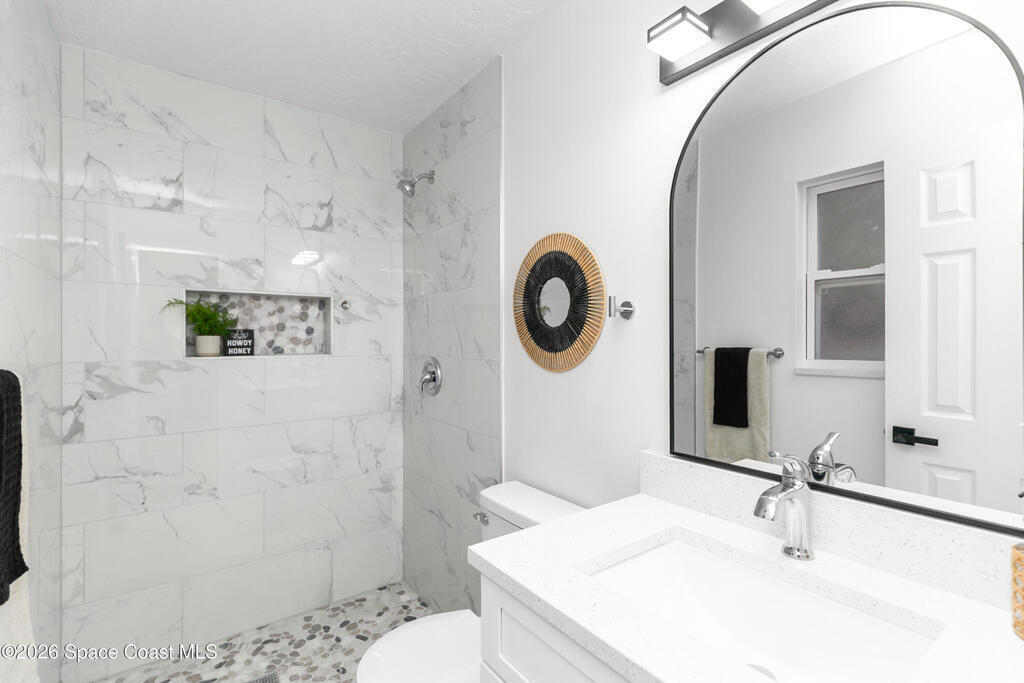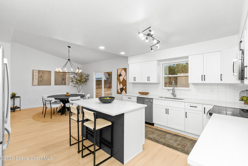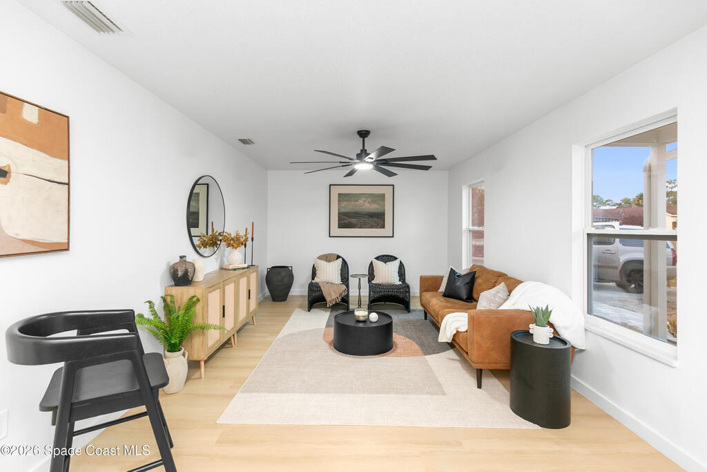 In a great Port St. John location, this beautiful home will have a brand-new septic system installed. It features a new kitchen and updated bathrooms, both with quartz countertops, and the kitchen includes brand-new stainless-steel appliances. The home also offers a new AC, new water heater, new flooring and baseboards throughout--no carpet, and all new light fixtures. Freshly painted inside and out, it has a large enclosed backyard with no rear neighbors and plenty of space for a pool. The property includes a 2-car garage. With easy access to I-95 and US-1, you are less than an hour from Orlando Airport and just minutes from the beach and the cruise lines. Everything you need is here.