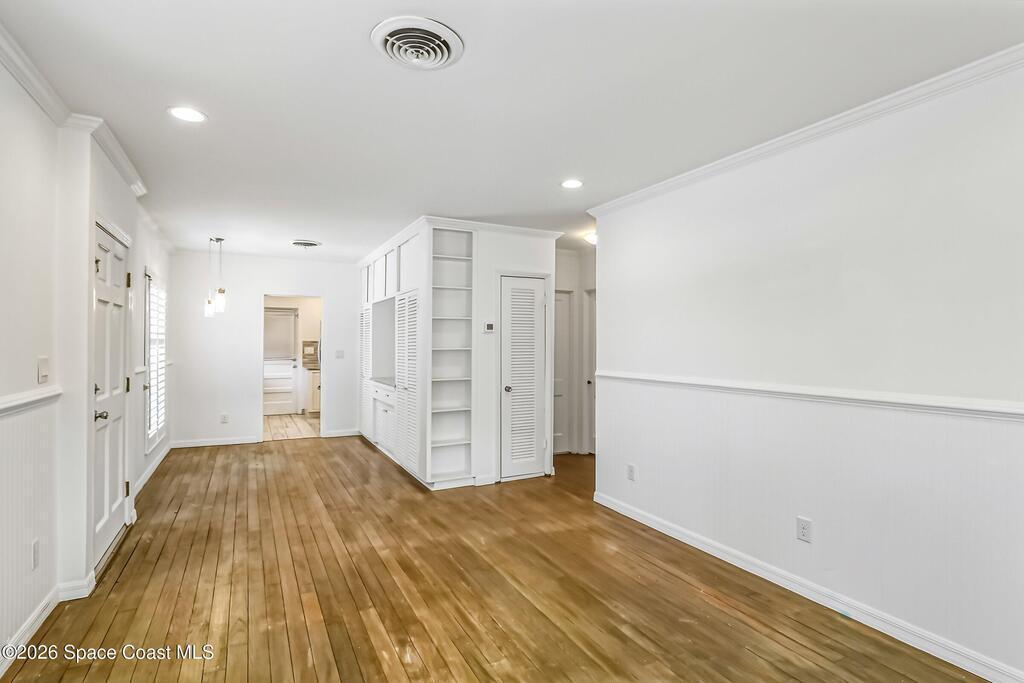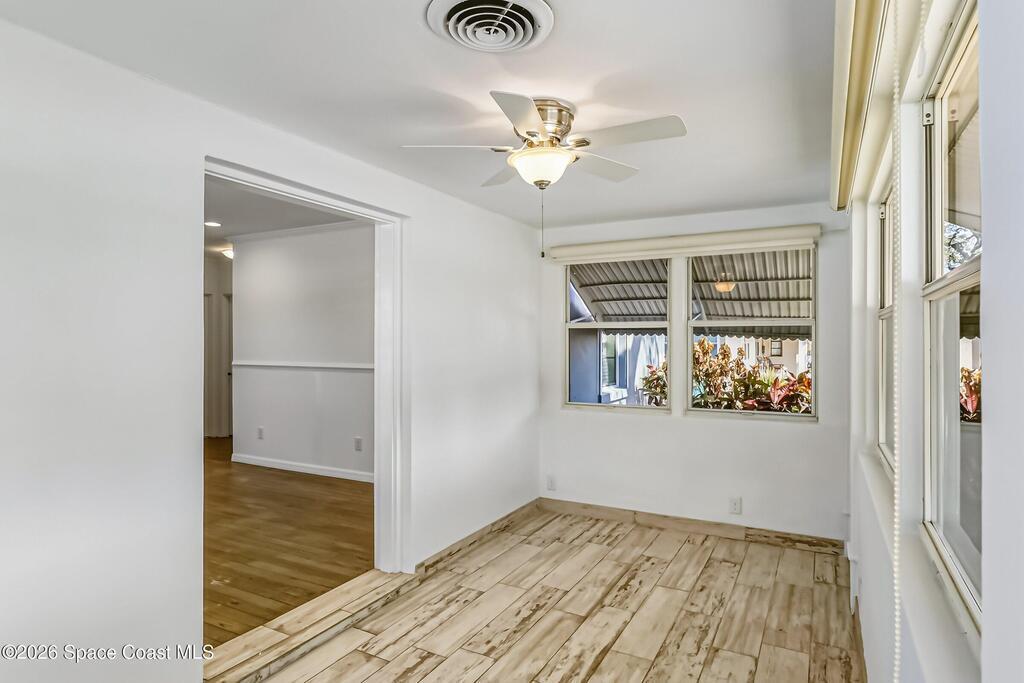 DOWNTOWN Melbourne cottage is in perfect location just steps to all the shopping, restaurants and so much more. Only an 8 minute drive to the Boardwalk Beach Indialantic. This REDONE home has so much to offer with updated: baseboards, wood floors, wood tile plank floors, recess lights, new fans, new light fixtures, all faux white 3 inch blinds textured walls/ceilings, NEWER Roof, freshly painted inside/outside, and more. The kitchen has all wood cabinets, granite countertops, tile backsplash and stainless steel appliances. Bathroom updated with all tile tub/shower, vanity with granite countertop. This Vintage home has so much character perfect for a second home or starter home!!
