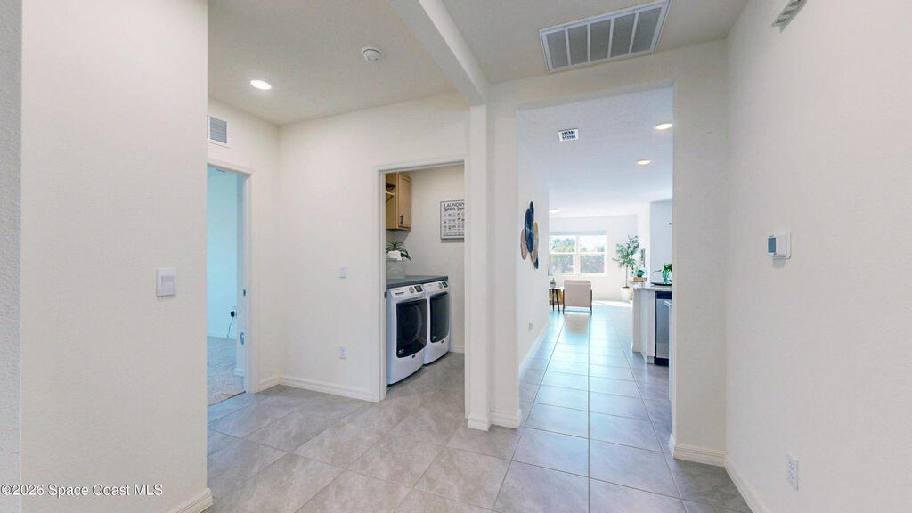 Spacious 4 bedroom, 2 bath Cali Model floor plan! This Smart Home has everything! Large kitchen island. Walk-in pantry. Stainless appliances. Shaker white cabinets (extra high). Dining area and the living room creates the space for family and entertaining with high cathedral ceilings. Neutral gray tile throughout and fresh neutral paint. Recessed lighting.Split floor plan. Meticulous garage with speckled floors. Big yard with no neighbors behind you! HVAC Nov. 2023.